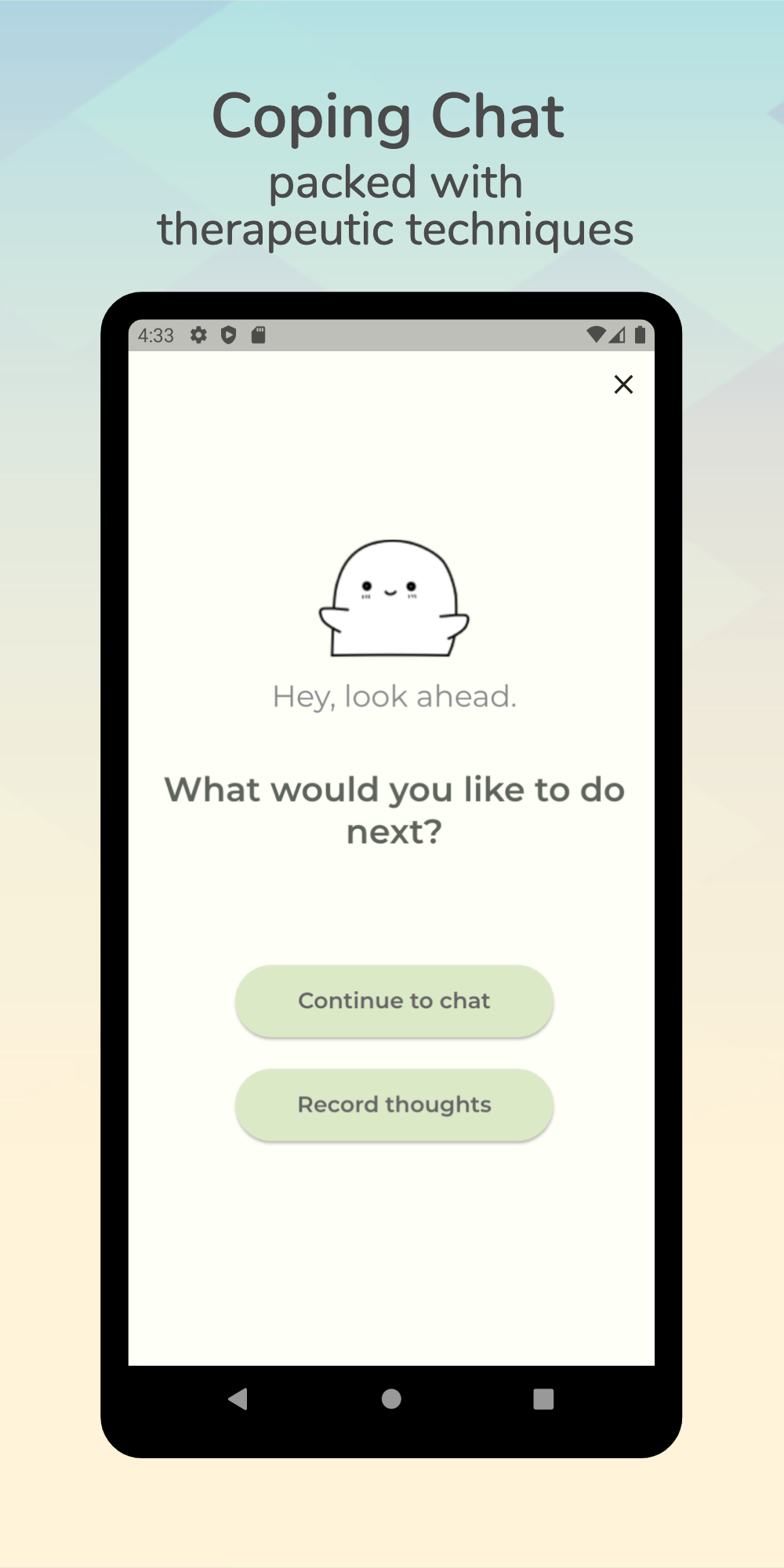 ✔ "Coping Chat" mit mehr als 20 therapeutischen Techniken, die Ihnen helfen, sich in schwierigen Zeiten zu entspannen