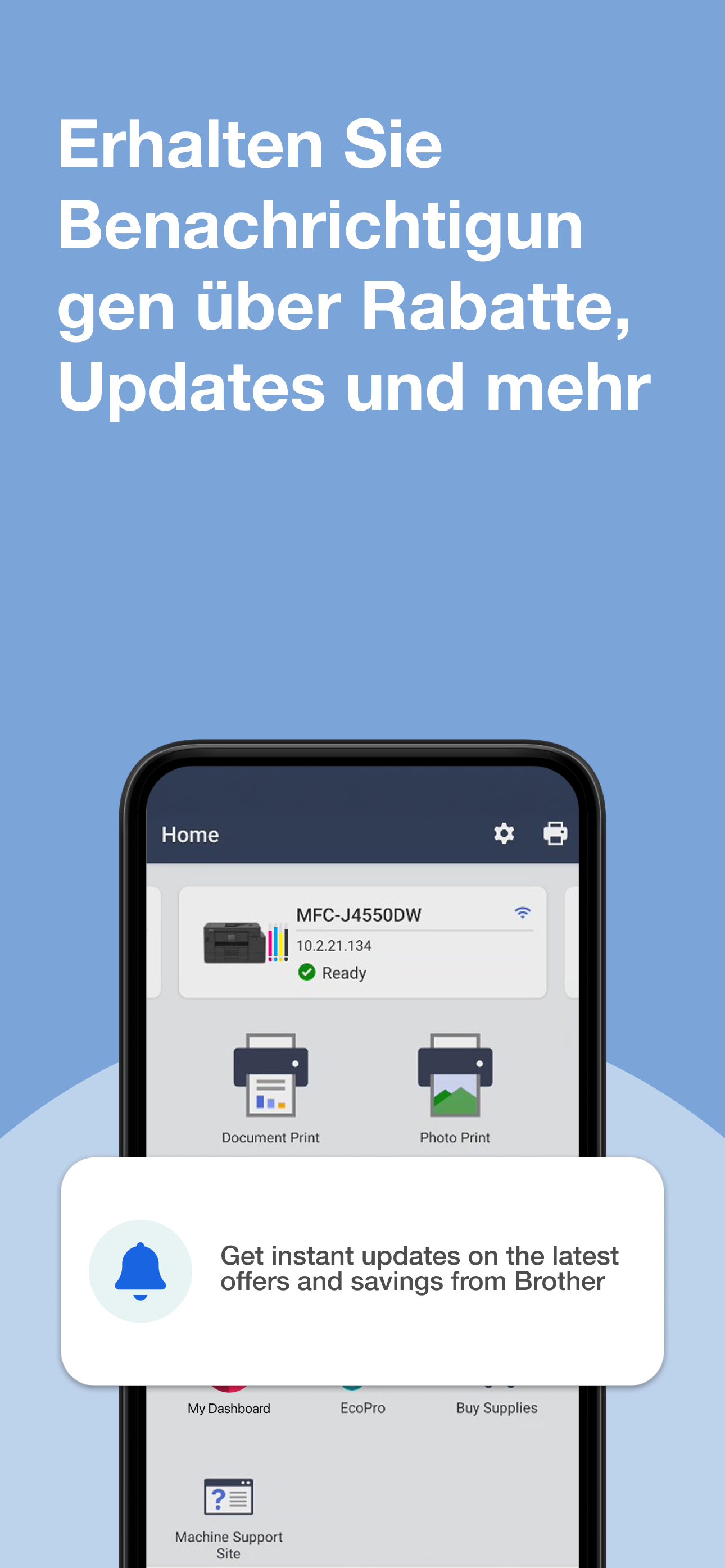 Drucken, scannen, Verbrauchsmaterialien bestellen und vieles mehr – alles mit Ihrem Smartphone. Treten Sie der weltweiten Brother-Community bei und erleben Sie, warum unsere Kunden für intelligenteres, schnelleres und einfacheres Drucken Brother Mobile Connect vertrauen.