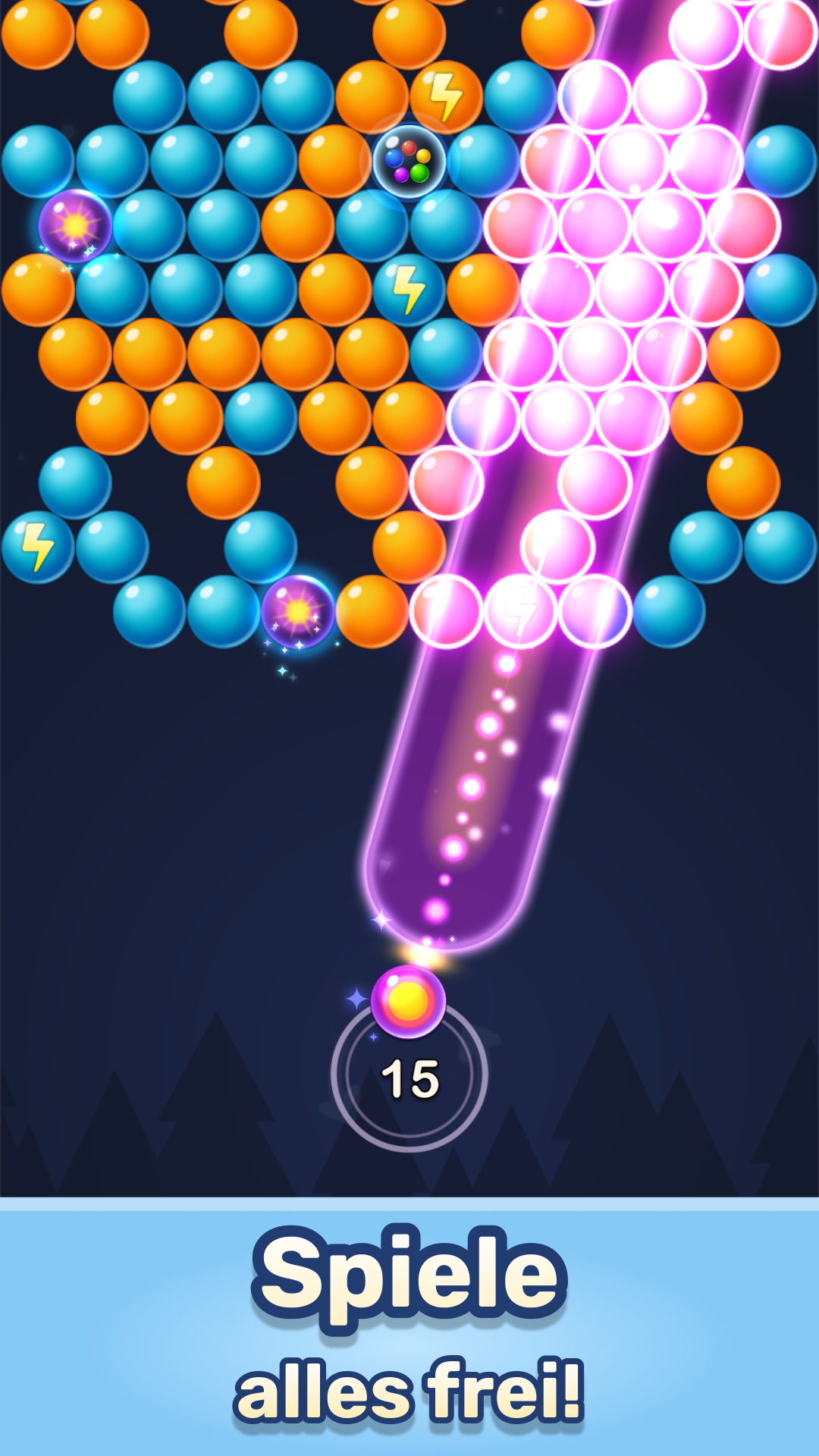 Schießen, verbinden und lassen Sie die Blasen in einer traumhaften Welt platzen. Fühlen Sie den Nervenkitzel, den perfekten Schuss zu landen, beeindruckende Kombinationen zu erstellen und das Brett zu leeren!