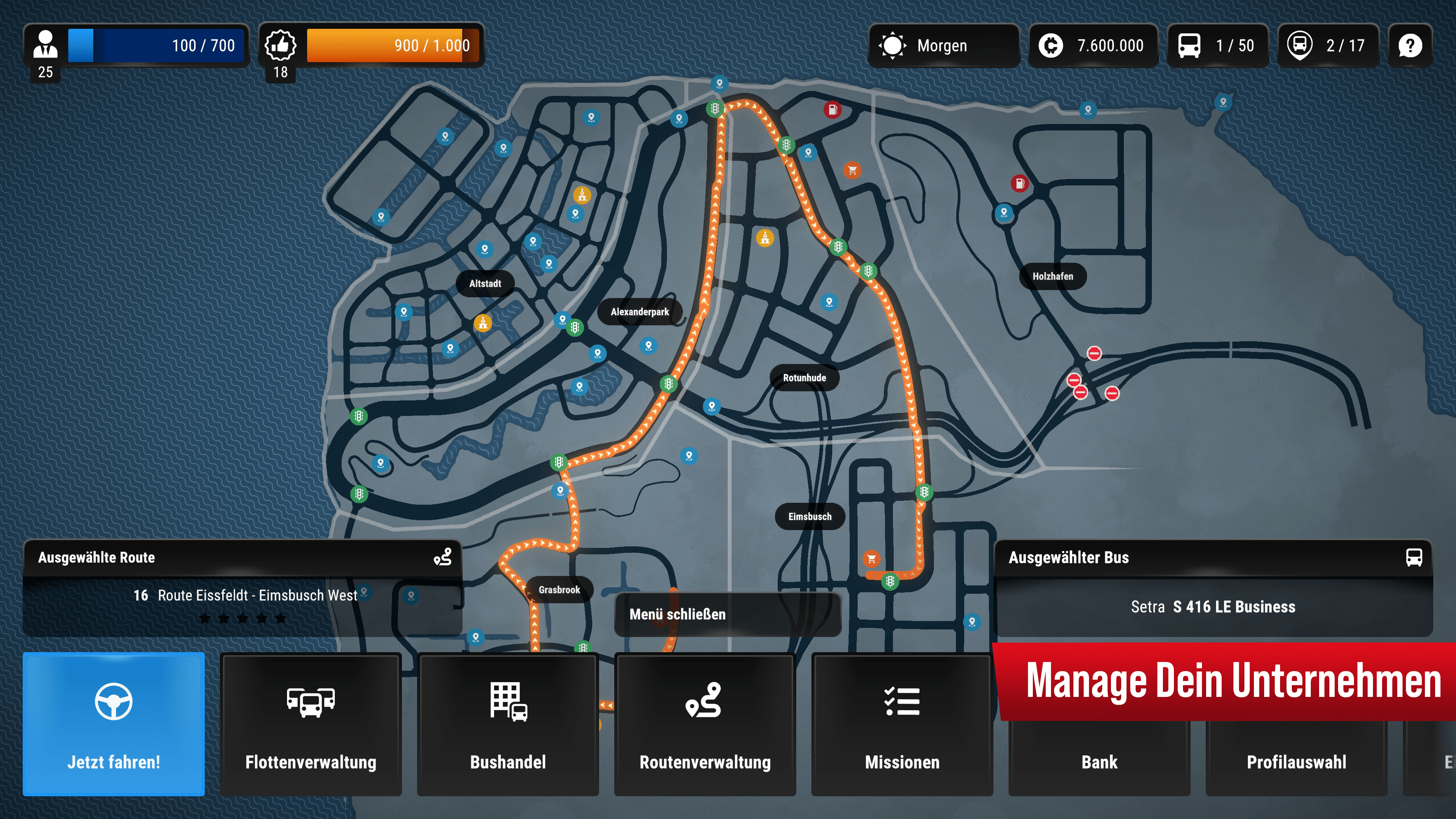 In der "City Ride Lite"-Edition von Bus Simulator erhältst Du einen Vorgeschmack auf den neuesten Teil der Bus Simulator-Reihe. Setze Dich in dieser Lite-Version ans Steuer von zwei original lizenzierten Bussen der bekannten Hersteller Setra und BYD. Tauche ein in das Spiel und erlebe vier Missionen in der wundervollen Stadt Havensburg. Dir gefällt das Spiel? Dann kannst Du die Vollversion ganz einfach per In-App-Kauf erwerben und erhältst Zugriff auf alle Busse, Missionen und Funktionen! Klemm Dich hinter das Lenkrad lizenzierter Busse bekannter Hersteller wie Alexander Dennis, Blue Bird, BYD, IVECO BUS, MAN, Mercedes-Benz, Scania, Setra, Volvo oder Vicinity Motor Corp und bringe die Menschen in einer geschäftigen Stadt an ihr Ziel. Bediene die Busrouten und schließe dabei Kampagnenmissionen ab, um mehr Busse, Stadtteile und Strecken freizuschalten. Erklimme die Karriereleiter und baue ein öffentliches Verkehrsnetz für Deine Stadt auf. DEIN BUS. DEINE STADT. IN DEINEN HÄNDEN. 10 ORIGINAL-BUSSE WELTBEKANNTER MARKEN Original lizenzierte Busse warten auf Dich! Fahre 10 Busse von 10 weltbekannten Herstellern – vom Elektrobus bis zum Gelenk- oder Doppeldeckerbus. Dank Marken wie Mercedes-Benz, Volvo, IVECO BUS oder BYD hast Du die Auswahl aus einer Vielzahl unterschiedlicher Busse. Übernimm den Fahrersitz im detailreichen Cockpit und erlebe ein authentisches Busfahrer-Gefühl, während du DEINEN BUS fährst. BEFÖRDERE DIE MENSCHEN IN EINER GESCHÄFTIGEN STADT Erkunde die äußerst detailreiche und lebendige Karte des Spiels! Die von nordeuropäischen Städten inspirierte Stadt „Havensburg“ mit ihrem maritimen Lagerhallenviertel, dem Hafen, der Altstadt und dem Umland bietet eine Vielzahl von markanten Gebäuden und eindrucksvollen Szenerien. In einer so pulsierenden Stadt sind die Menschen viel unterwegs: Sie wollen in der Altstadt einen Kaffee mit Freunden trinken oder mit der Familie den Hafen besuchen. Menschen zu befördern, wird nie langweilig – vielleicht erzählen Dir Deine Fahrgäste ja ein paar Geschichten. Jetzt ist es deine Aufgabe, die Menschen in DEINER STADT zu vernetzen. MANAGE DEIN TRANSPORTUNTERNEHMEN Zeige deine Fahrkünste: Schaffe es nach ganz oben und baue ein erfolgreiches Busunternehmen auf. Im Verlauf der Kampagne kannst Du mehr Busse, Stadtteile und Routen freischalten. Baue ein größeres Verkehrsnetz auf, fahre Routen ab, um mehr Credits zu verdienen, kaufe neue Busse und bringe sie alle auf Deinen Routen zum Einsatz. Der Erfolg des Unternehmens liegt in DEINEN HÄNDEN!