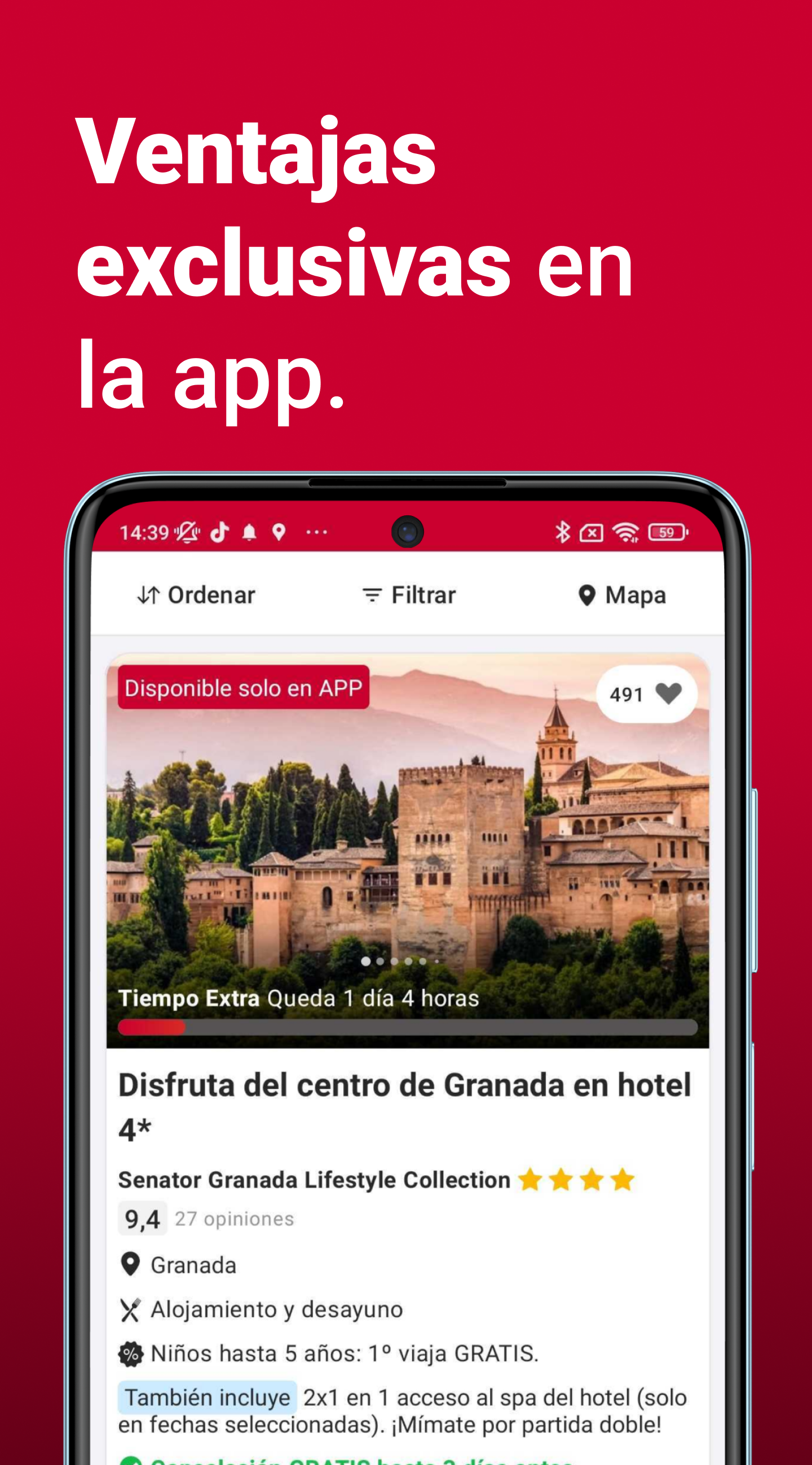 ● MERKEN! Suchen Sie einen Wochenendtrip? Einen Sommerurlaub? Oder Hotels zu Schnäppchenpreisen? Dann laden Sie JETZT die BuscoUnChollo App – Reise-, Hotel- und Urlaubsangebote herunter und sichern Sie sich die besten Reiseangebote.