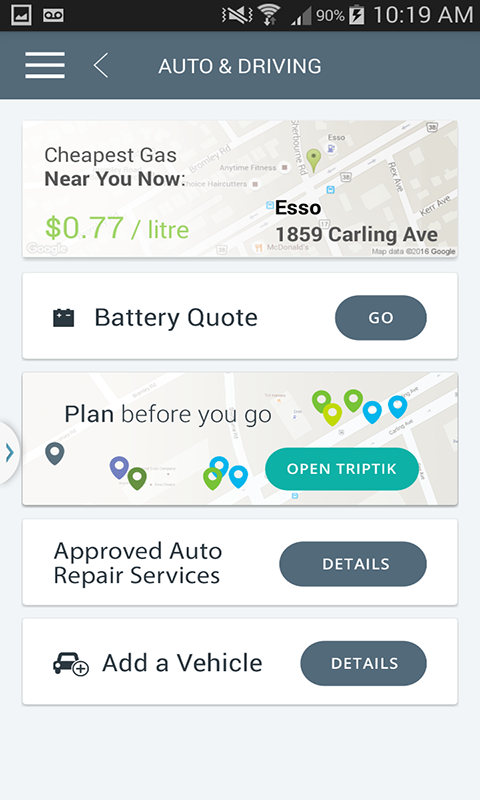 Please note: This version does not support Android tablets. Call CAA from your app whenever you need help. Whether you have a flat tire, have run out of gas, get locked out of your car or if you need a tow or a battery boost, CAA is there to help. Your membership covers you all year-round with no surge pricing. We are now only a click away. CAA Roadside Service also covers Battery Testing & Replacement, Emergency Fuel Delivery, and Lockout Help. Our 24/7/365 service is backed by 35,000 service vehicles and over 100 years’ experience. After you call for assistance, use Service Tracker to track your CAA driver’s location and estimated arrival in real time. You can even share information with family and loved ones. Trips & Travel: Use TripTik® for maps and directions to CAA/AAA approved lodging, gas prices, restaurants, and automotive repair locations. Find CAA offices, local events and entertainment, CAA Approved Auto Repair shops and more. Savings & Rewards: Access Member-exclusive Deals – get savings and rewards from 124,000 participating retail locations and services, across North America. Auto & Driving: Enjoy peace of mind. Members can easily request CAA roadside assistance directly from your phone without even placing a call. Members can also find the cheapest gas prices or the closest gas stations, Insurance: Save your agent information or speak to an agent at the touch of a button. Your CAA membership also gets you discounted rates on a variety of insurance products. The Canadian Automobile Association (CAA) is one of the largest consumer-based organizations in Canada. We help provide freedom and peace of mind to over 6 million Members through 9 automobile Clubs: AMA, BCAA, CAA Niagara, CAA Atlantic, CAA South Central Ontario, CAA North and East Ontario, CAA Saskatchewan, CAA Manitoba and CAA Quebec