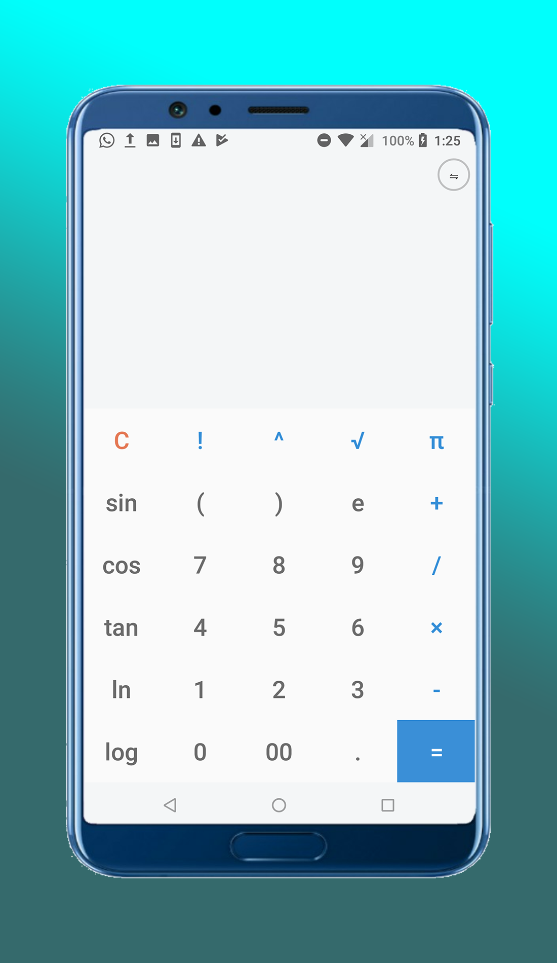 Rechner: Ein leistungsfähiger Rechner mit einer einfachen Oberfläche Rechner bietet einfache und erweiterte mathematische Funktionen in einer schön gestalteten App. Führen Sie vier grundlegende Operationen und technische Berechnungen durch. Calculator ist ein einfacher Taschenrechner mit 4 Funktionen und einem Bedienfeld mit erweiterten Funktionen, wenn Sie diese benötigen. Das Ziel ist ein einfacher und übersichtlicher Taschenrechner. Wussten Sie nicht, dass die meisten Ihrer mathematischen Probleme mit einer der kostenlosen Android-Apps gelöst werden können? Diese äußerst nützliche und effiziente Taschenrechner-App wird zu Ihrem besten Freund bei der Arbeit, im Alltag, in der Schule, am College oder überall dort, wo Sie studieren. Features Rechner ★ einfaches und intuitives Design ★ haptisches Feedback (ein / aus) ★ Arbeit mit verschiedenen Zahlensystemen ★ einfache Arithmetik (Addition, Subtraktion, Multiplikation, Division, Prozent) ★ elementare Algebra (Potenzierung, Wurzelextraktion, dezimale und natürliche Logarithmen, Sin, Cos, Tan usw.) ★ Derivate - Rechner Taschenrechner ★ Integralrechnung - Rechner Taschenrechner ★ Grundlegende Berechnungen wie Addition, Subtraktion, Multiplikation und Division durchführen - Rechner Taschenrechner ★ Probieren Sie unser neues Material-Thema aus! - Taschenrechner ★ Schöne und intuitive Benutzeroberfläche mit gestenbasierter Steuerung und Navigationsrechner ★ Sofortige Ergebnisse Ihrer Berechnungen bei der Eingabe anzeigen ★ Prozentsatzberechnung verfügbar - Rechner Taschenrechner ★ Alle Rücktasten mit C - Rechner löschen Taschenrechner ★ Unterstützt Hochformat - Taschenrechner ★ Wissenschaftliche Tastatur anzeigen - Taschenrechner ★ Wissenschaftliche Tastatur, um es anzupassen ★ Wählen Sie zwischen einfacher und vollständiger Tastaturbelegung ★ Schönes, einfaches und stilvolles Design ★ Einfache Bedienung mit großen Tasten, um Fehler zu minimieren ★ Zeigt die Berechnung - Rechner Taschenrechner Verfügbare Funktionen: Taschenrechner - zusätzlich - Subtraktion - Multiplikation - Einteilung - Prozentsatz - Quadratwurzel - Sünde - cos - log - Bräune - Im ... Taschenrechner Da der Taschenrechner einen vollständigen Ersatz für Ihren Aktienrechner darstellt, empfehlen wir Ihnen, den mit Ihrem Telefon gelieferten zu deaktivieren. Wenn Sie lange auf Ihren ursprünglichen Taschenrechner drücken und ihn in die App-Info ziehen, können Sie ihn dort deaktivieren, wo Sie normalerweise Deinstallieren finden würden. Taschenrechner Lieben Sie Taschenrechner, mit denen Sie wirklich komplexe Probleme lösen können? Möchten Sie schnell Ergebnisse erzielen? Wenn Sie Math Calculator kostenlos installieren, erhalten Sie einen echten mathematischen Problemlöser, eine Option für Konvertierungsrechner sowie viele andere Boni. Taschenrechner Was möchten Sie für den Fall haben, dass Sie überhaupt keine mathematischen Fähigkeiten haben, aber sofort ein wirklich schweres Problem lösen müssen? Natürlich möchten Sie einen Mathematikrechner haben, der Arbeit zeigt und es perfekt macht! Taschenrechner