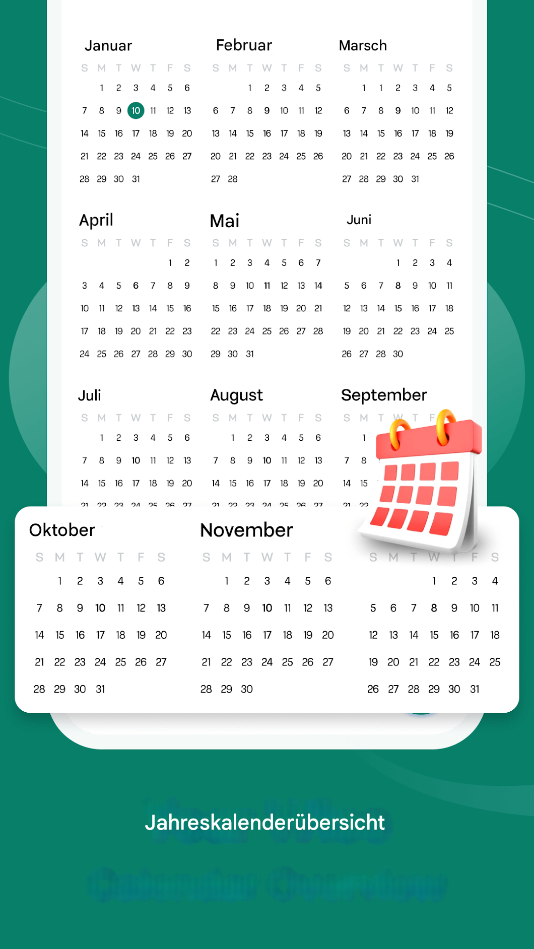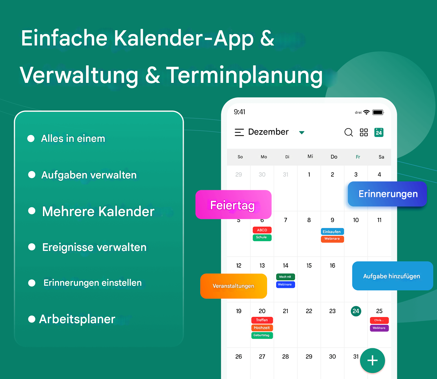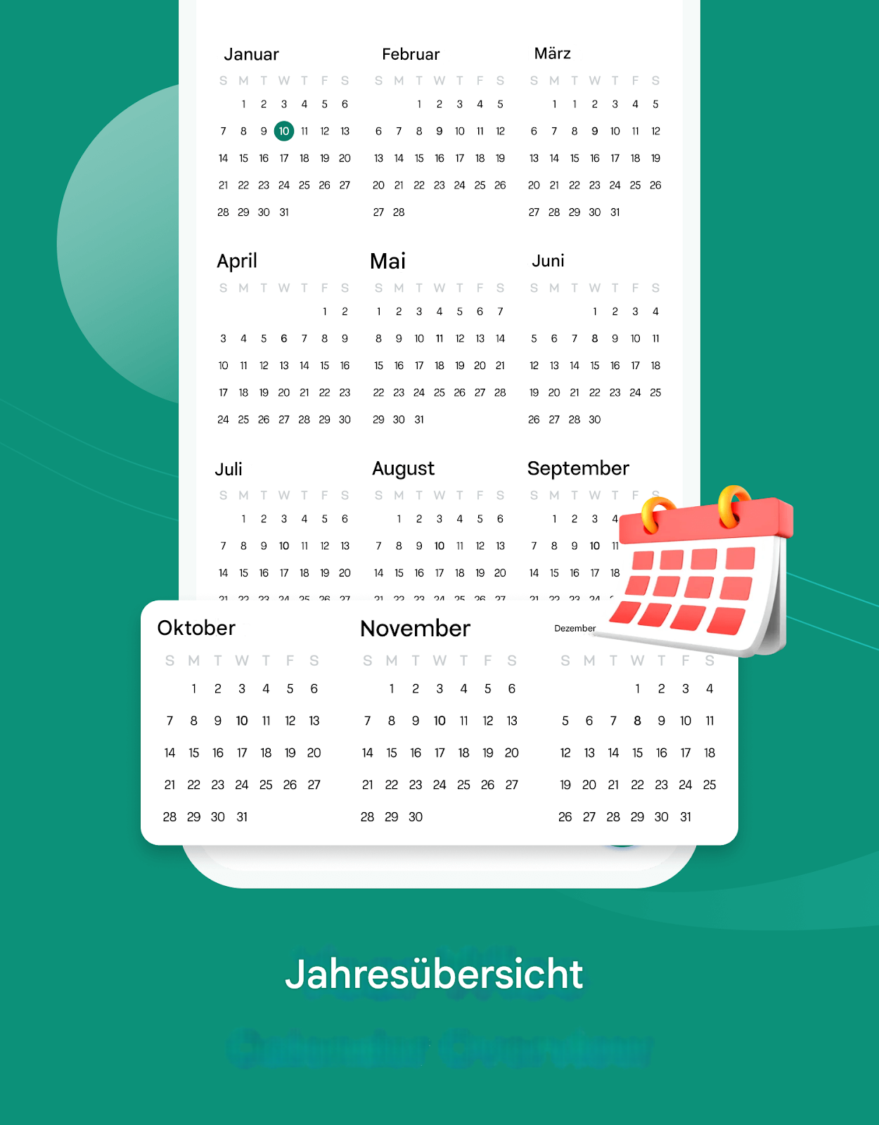 Wir präsentieren die ultimative Kalender-App! 📅 Bleiben Sie organisiert, produktiv und verpassen Sie keinen besonderen Moment mehr mit unserer All-in-One-Kalender-App. Ob Sie Ihre Arbeit verwalten, private Termine planen oder nationale Feiertage im Blick behalten – unsere App ist Ihr perfekter Begleiter! Mit leistungsstarken Funktionen wie Erinnerungen, Aufgabenverwaltung und anpassbaren Ansichten (Jahr, Monat, Tag, Woche) haben Sie die volle Kontrolle über Ihre Agenda. Passen Sie Ihre Terminplanung ganz einfach an und behalten Sie mit Benachrichtigungen und Feiertagsverwaltung den Überblick. Der Kalender zeigt eine Nachbesprechung an, sodass Sie eingehende Anrufe sofort erkennen, Ihre Aufgaben verwalten und Erinnerungen direkt nach dem Anruf einrichten können. So behalten Nutzer direkt nach einem Anruf den Überblick über Termine und Daten. Unsere App nutzt die Berechtigung FOREGROUND_SERVICE_PHONE_CALL, um nach Beendigung eines Telefonats sofort eine Vordergrundaufgabe zu starten. Mit dieser Funktion können Nutzer Erinnerungen erstellen, Kalenderereignisse hinzufügen und Aufgaben basierend auf dem Anrufkontext verwalten. Diese Funktion ist für die Steigerung der Benutzerproduktivität unerlässlich und muss sofort nach Anrufende gestartet werden, um den Kontext beizubehalten. Diese Funktion kann nicht pausiert oder verzögert werden. 📅 Kalender: Ihr Schlüssel zur Produktivität => Der Kalender ist ein praktisches Tool zur Terminverwaltung. Er hält Sie über Meetings, Termine und Verabredungen auf dem Laufenden. Kalender bieten eine visuelle Darstellung Ihrer täglichen Agenda und sorgen dafür, dass Sie wichtige Ereignisse wie Feiertage, Urlaube und Ihre Agenda für 2025 nie vergessen. Hauptfunktionen:Einfacher Kalender 🌍 Sprachauswahl Wählen Sie aus mehreren Sprachen und personalisieren Sie Ihren Kalender nach Ihren Wünschen. 🎉 Nationale Feiertage Wählen Sie Ihr Land aus und sehen Sie sich wichtige nationale Feiertage sofort an! Bleiben Sie auf dem Laufenden und vergessen Sie nie wieder wichtige Termine. ⏰ Erinnerungen für alles einrichten! Verpassen Sie nie wieder Aufgaben, Ereignisse oder wichtige Termine mit unserem anpassbaren Erinnerungssystem. Richten Sie jederzeit Benachrichtigungen für Erinnerungen, Aufgaben und Ereignisse ein: pünktlich, 5 Minuten vorher, 10 Minuten vorher und mehr! 📝 Aufgaben und Ereignisse hinzufügen Fügen Sie ganz einfach Aufgaben, Ereignisse und sogar besondere Daten wie Geburtstage und Jahrestage hinzu! Behalten Sie alles an einem Ort und richten Sie Erinnerungen ein, um immer vorbereitet zu sein. 🔍 Ereignisse suchen Finden und suchen Sie Ihre Ereignisse, Aufgaben oder Erinnerungen schnell mit unserer leistungsstarken Suchfunktion. Nie wieder scrollen! 📅 Ansicht anpassen Wählen Sie aus mehreren Ansichten die passende für Ihren Planungsstil: Jahresansicht, Monatsansicht, 3-Tages-Ansicht, Wochenansicht oder Tagesansicht. Finden Sie die perfekte Möglichkeit, Ihre Pläne zu visualisieren! 🎉 Feiertage hinzufügen Markieren Sie Ihre persönlichen Feiertage, besondere Ereignisse oder Urlaubstage und behalten Sie den Überblick! 🌈 Designs ändern Gestalten Sie Ihre Kalender-App ganz individuell, indem Sie das Design anpassen! Wechseln Sie je nach Stimmung zwischen hellen und dunklen Designs. 🎂 Geburtstage und Jahrestage verfolgen Vergessen Sie nie wieder wichtige Geburtstage oder Jahrestage! Tragen Sie diese besonderen Daten ein und erhalten Sie rechtzeitige Erinnerungen, um Ihre Liebe und Wertschätzung zu zeigen. 🕒 Zeitformat auswählen Wählen Sie zwischen einem 12-Stunden- und einem 24-Stunden-Zeitformat, ganz nach Ihren Wünschen und für eine einfache Anzeige! 📋 Agenda filtern Verwenden Sie den Filter, um nur bestimmte Ereignisse, Aufgaben oder Erinnerungen anzuzeigen und Ihren Kalender so übersichtlich und organisiert zu halten, wie Sie es wünschen.