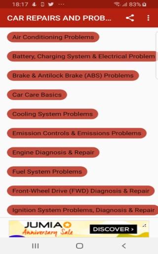 This app tells you about all the possible problems that could ever occur in a car providing you with correct and adequate information to handle the problem. With this app you are able to eliminate guess work and reduce cost incurred by incorrect diagnosis and focus on the exact problem at the time. Whether you are handling the the problem yourself or getting help you have the right information at your disposal. This app contains information for all vehicle types. With the various categories and sub categories you are to find the preferred solution. This is a must have app for all experts and professional automobile mechanics there giving you an edge in the area of expertise.For all car owners and users you are no longer in the dark concerning the maintenance of whatever vehicle you make use with this app
