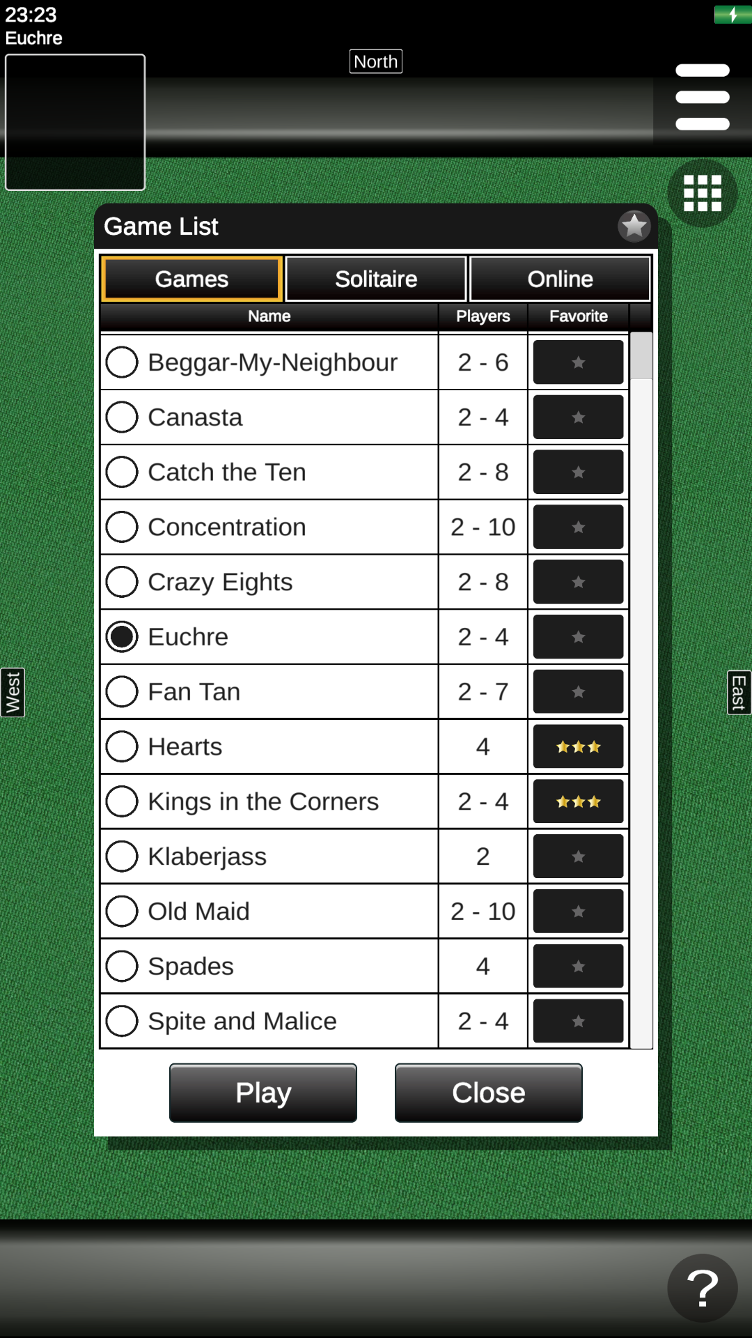 version 1.0.69 Beleaguered Castle and Crescent are added. version 1.0.68 Fixed behavior on device rotation version 1.0.67 Golf and FreeCell have been added. A Slam Bonus option has been added to Klaberjass.
