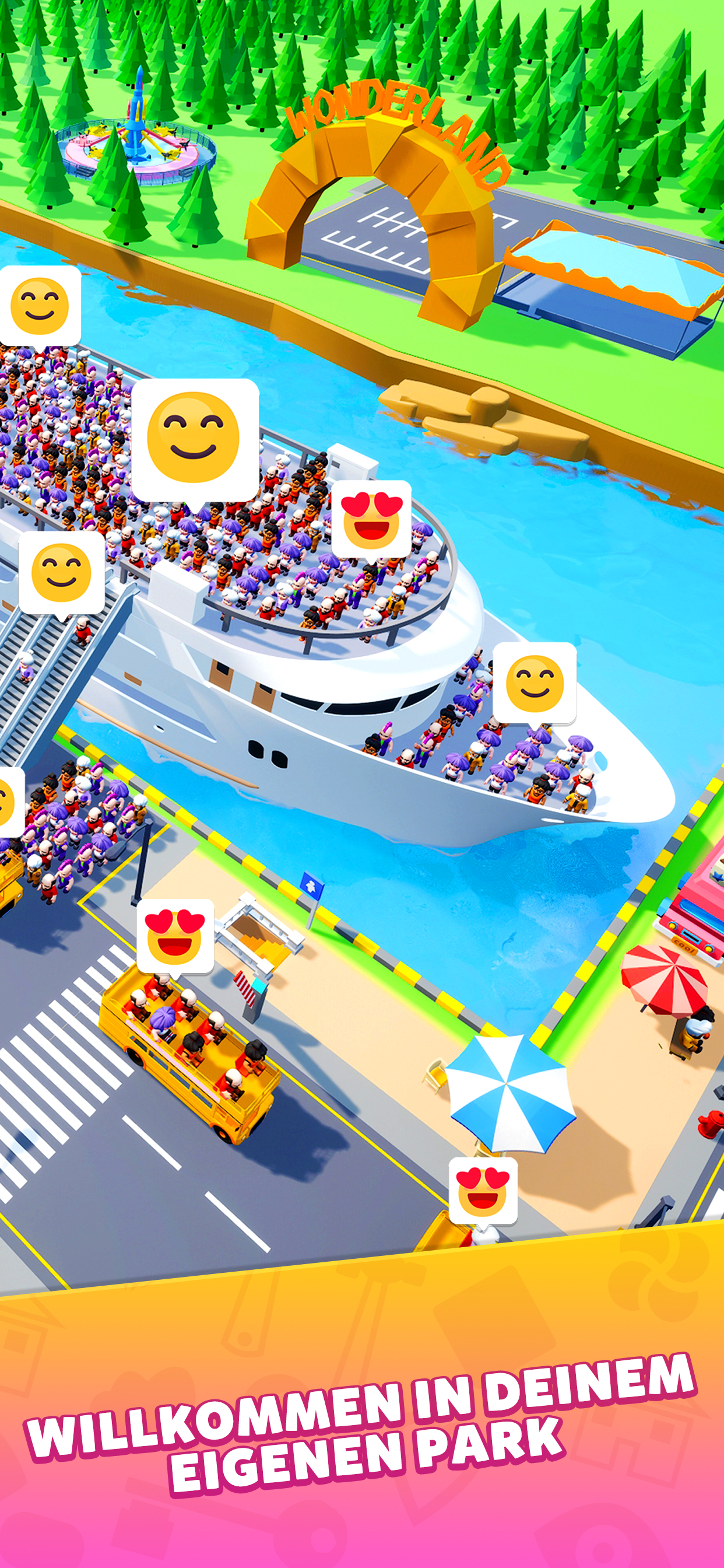 Bist du bereit, Carnival Tycoon beizutreten? Carnival Tycoon – ein Idle-Simulationsspiel, das du zusammen mit Freunden spielen kannst. In diesem Idle-Spiel beginnst du mit einem kleinen Freizeitpark, in dem Besucher Achterbahnen und Riesenräder fahren können. Um den interessantesten Freizeitpark der Welt zu bauen, schaltest du weitere Fahrgeschäfte frei und verbesserst sie, während du danach strebst, den Park zu verwalten und zu erweitern. Mit harter Arbeit und Hingabe schaffst du es und wirst ein echter Tycoon! Features: Verwalte einen Freizeitpark: Baue kreative Fahrgeschäfte, um Besucher in deinen Park zu locken. Um ihnen ein angenehmeres und unterhaltsameres Erlebnis zu bieten, solltest du die Fahrgeschäfte kontinuierlich verbessern und erneuern, mehr Sitzplätze hinzufügen und die Effizienz der Fahrgeschäfte steigern. Einfach und unkompliziert: Die Verbesserung eines großen Fahrgeschäfts kann mit nur ein paarmal Antippen erledigt werden. Das ist der Reiz von Idle-Simulationsspielen. Es ist gar nicht so schwer, ein Tycoon zu werden! Münzen verdienen: Du kannst auch dann Geld und Münzen verdienen, wenn du nicht da bist. Außerdem kannst du Geheimagenten-Hunde anheuern, die Münzen von deinen Konkurrenten stehlen. Wenn du mehr Münzen verdienst, kannst du dein Geschäft erweitern. Es gibt mehr als einen Weg, um reich zu werden. Freundesclub: Du kämpfst nicht allein. Finde gleichgesinnte Freunde und lade sie ein, zusammen mit dir als Team bei Carnival Tycoon mitzumachen und gemeinsam den interessantesten und spektakulärsten Freizeitpark der Welt zu bauen. Inselabenteuer: In Carnival Tycoon gibt es nicht nur verschiedene Fahrgeschäfte, sondern auch verschiedene Themeninseln. Während der Park verbessert und erweitert wird, werden Themeninseln kontinuierlich freigeschaltet und du kannst auch mehr Einnahmen generieren. Trommle ein paar gute Freunde zusammen, genieße das Erfolgserlebnis beim Bauen, erlebe die Freude am Geldverdienen, mach mit bei Carnival Tycoon und erlebe das süchtig machende Idle-Simulationsspiel!