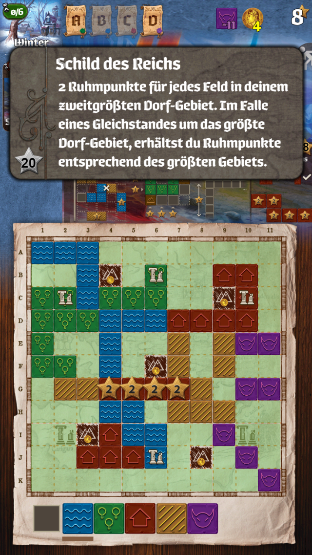 Du schlüpfst in die Rolle eines königlichen Kartographen und Landvermessers, der einen Teil der nördlichen Lande für die Königin Ginmax abstecken und kartographieren soll. Zu diesem Zweck erlässt die Königin vier Dekrete, die den Kartographen zeigen sollen, welches Terrain ihr besonders am Herzen liegt. Im Laufe eines Jahres musst du dich nun auf die Reise begeben und das Gebiet erforschen, abstecken und kartographieren. Doch auch die Dragul erheben Anspruch darauf. Du musst kluge Grenzen ziehen, um dich zu behaupten und dabei die begehrtesten Ländereien zu entdecken. Erlebe die Faszination dieses taktischen Flip & Write-Spiels nun als App. - Nominiert zum Kenner Spiel des Jahres 2020 - Taktisches Legespiel - Flip & Write-Spiel aus dem Roll Player-Universum - 3 verschiedene Modi mit unterschiedlichem Grad an Zufall - Miß dich mit Spielern aus der ganzen Welt in wöchentlichen HighScorelisten - Sammel Achievements und werde der legendärste Kartograph aller Zeiten. Auszeichnungen: 2020 - Kennerspiel des Jahres Nominierung 2019 Golden Geek Best Solo Board Game Nominee 2019 Golden Geek Best Family Board Game Nominee 2019 Cardboard Republic Socializer Laurel Nominee