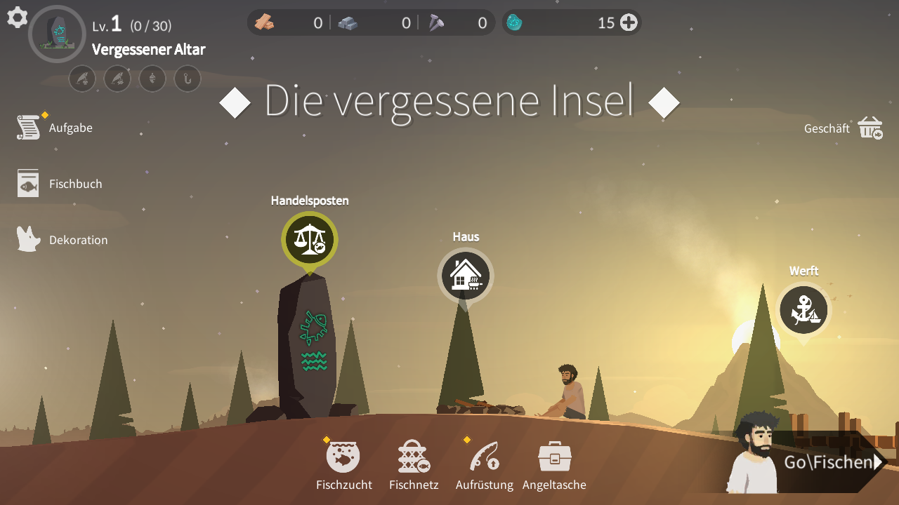 Fange an zu fischen, um auf einer einsamen, trostlosen Insel zu überleben.