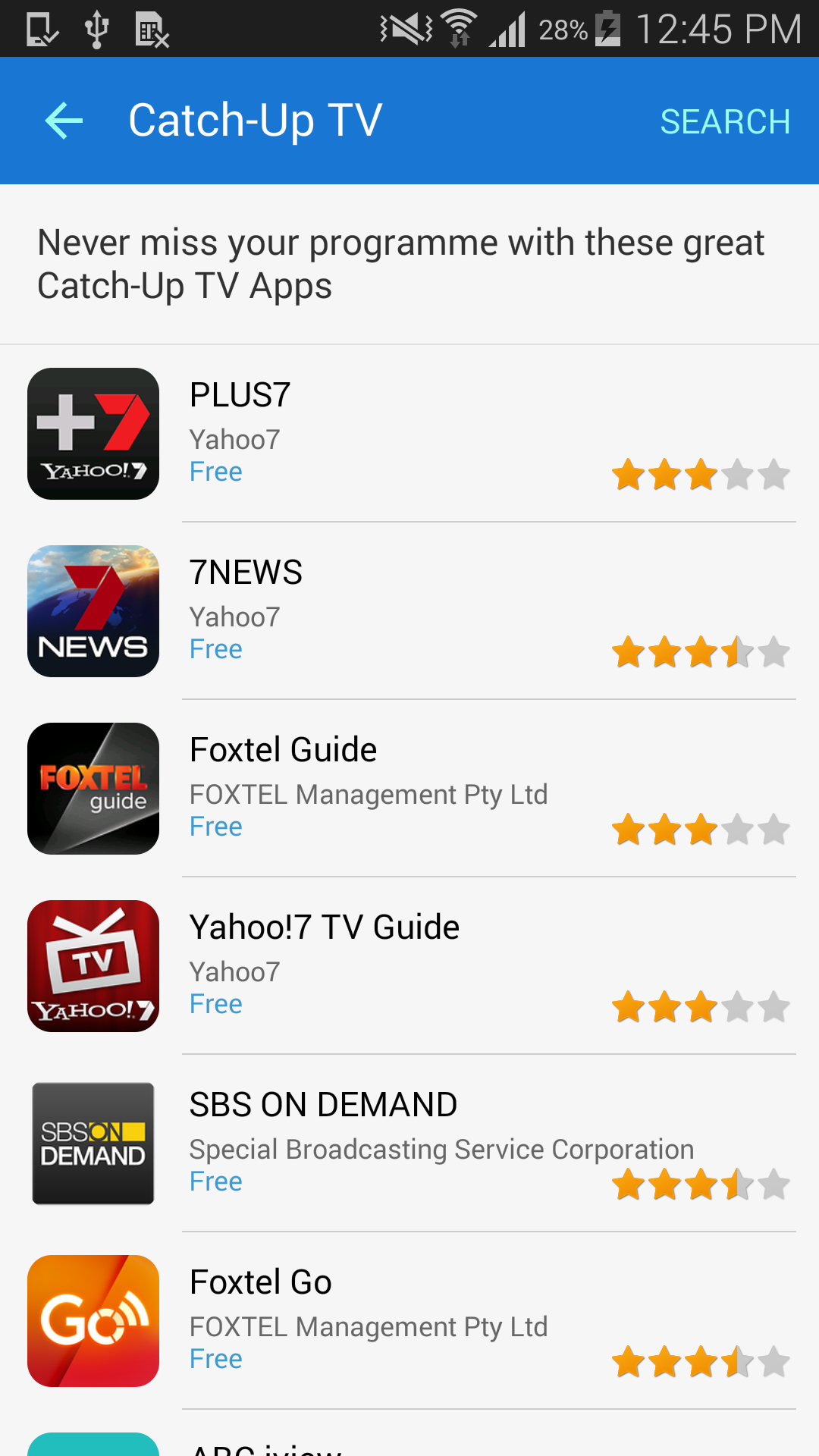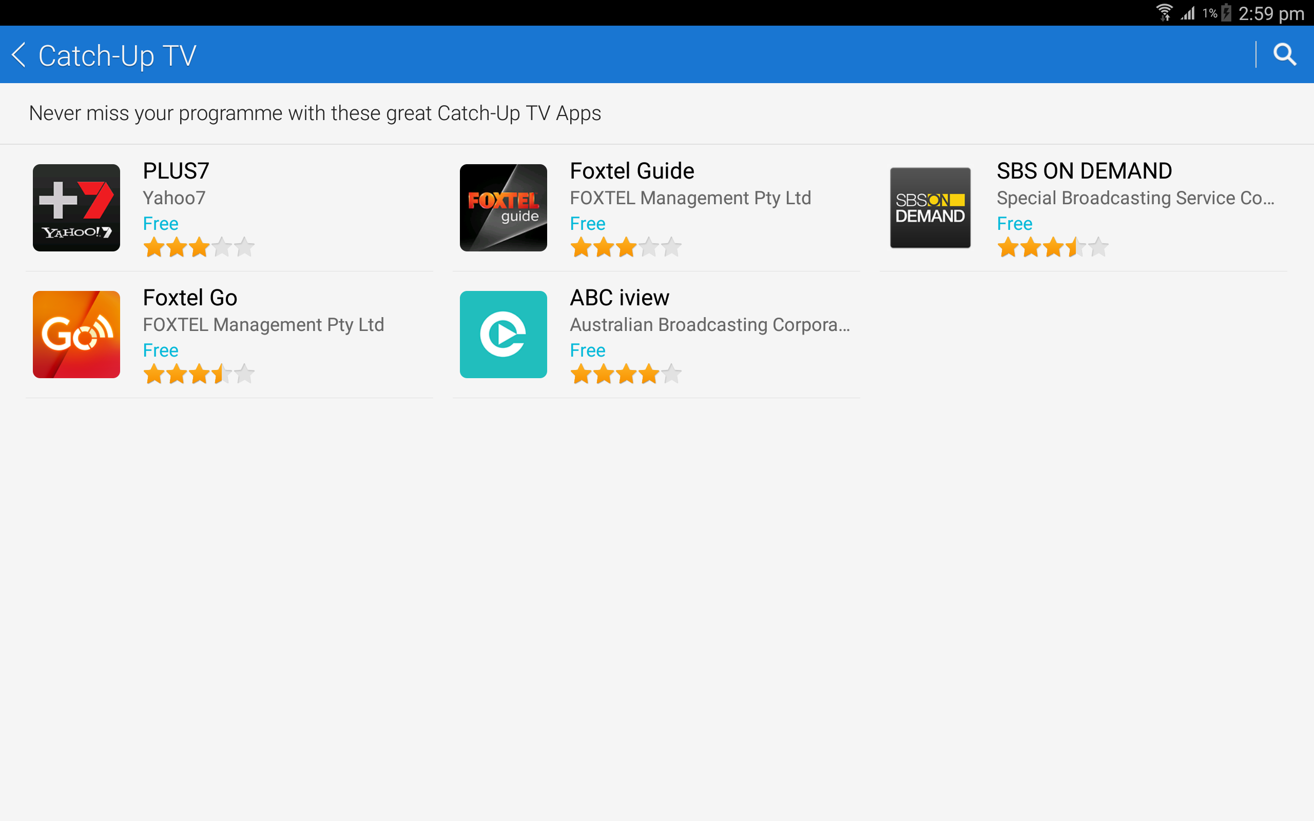 Samsung Catch Up TV app gathers various TV network applications, such as SBS On Demand, Foxtel Go, PLUS7 and more in one place so you can download them on your device with one click.