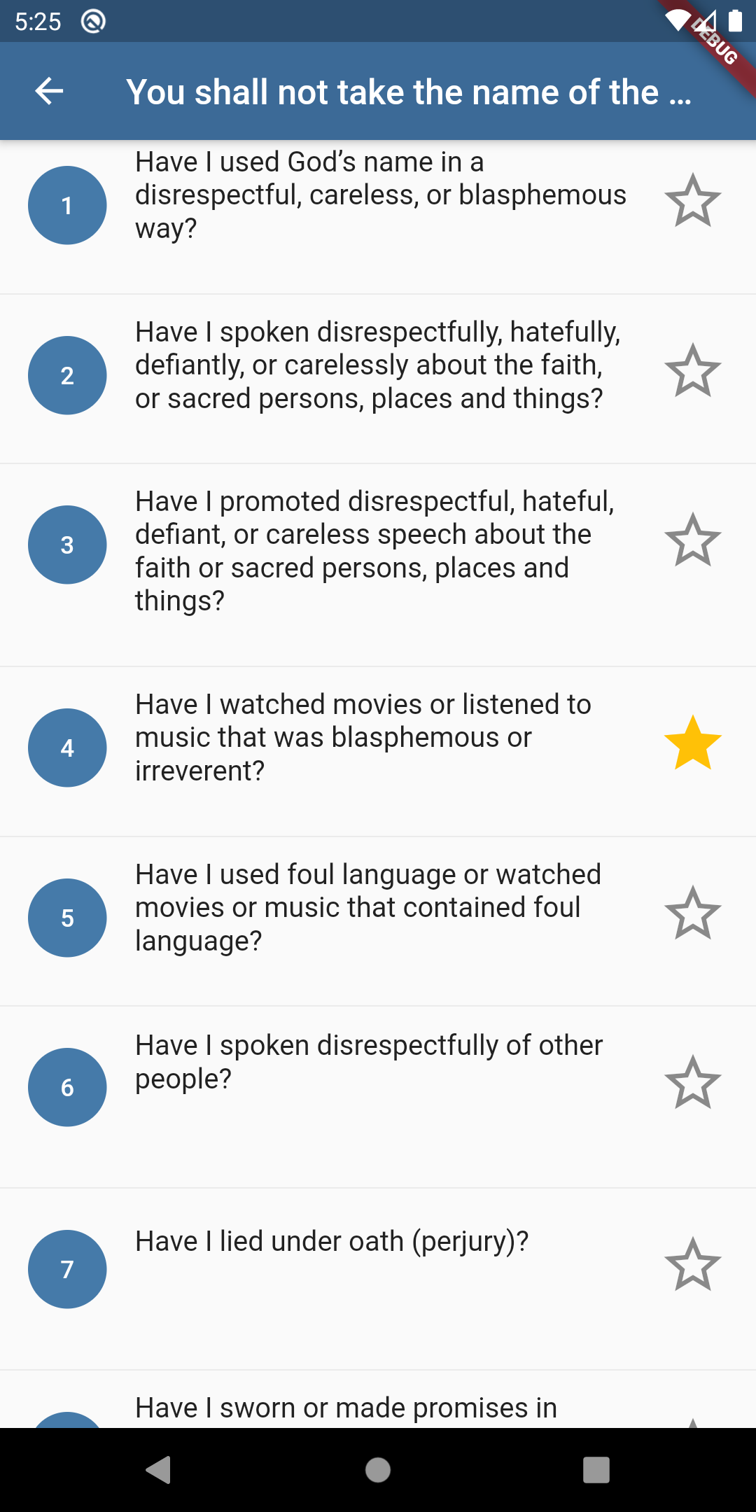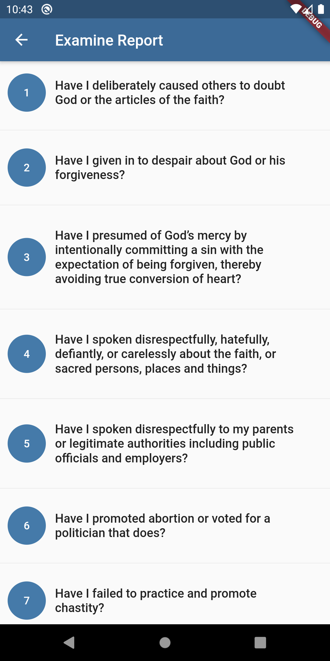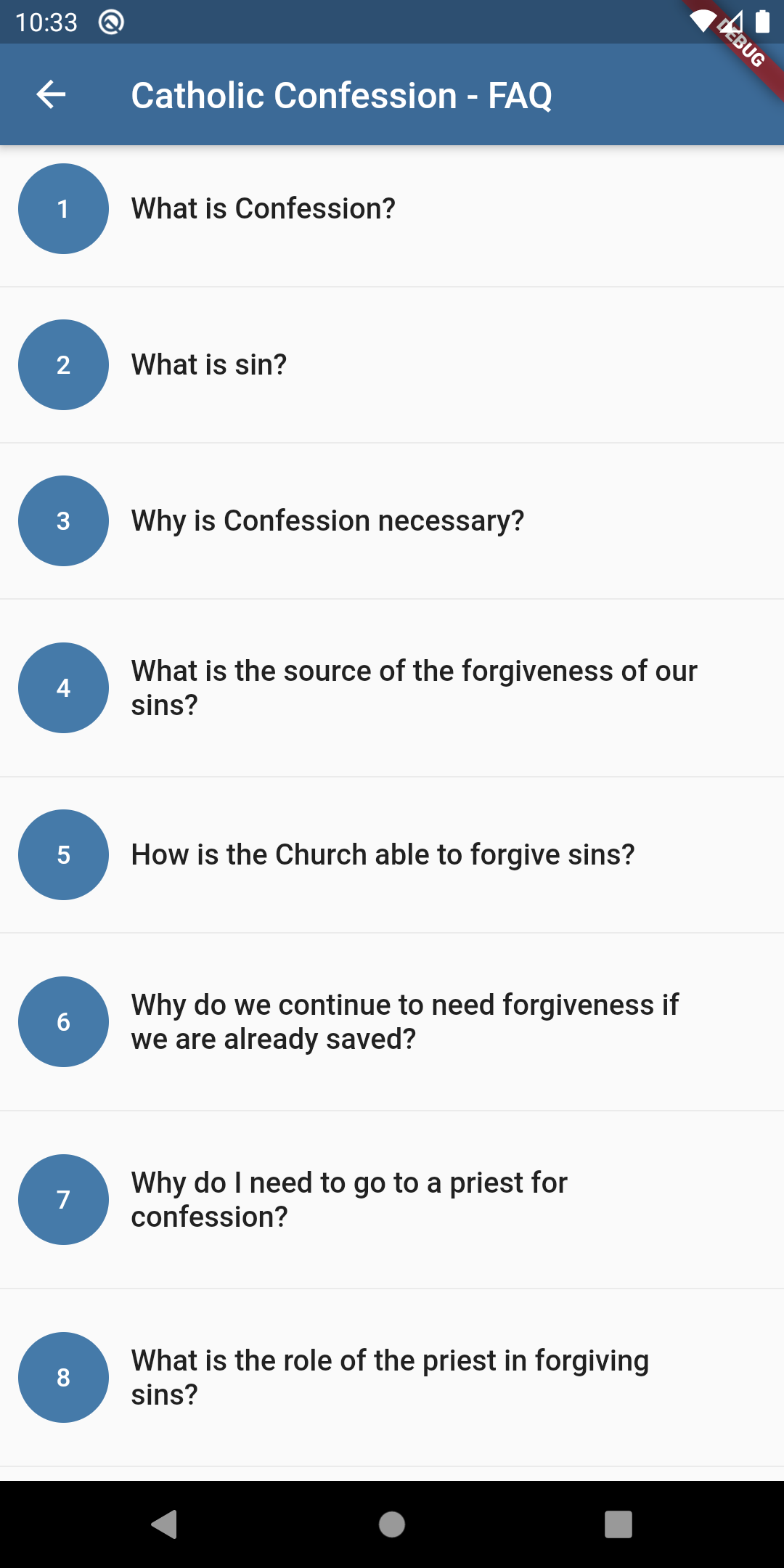 Catholic Confession Guide ist eine katholische Gewissensprüfung-App für Ihr Android-Gerät. Die Prüfung des Gewissens basiert auf zehn Geboten und Wahrnehmungen der katholischen Kirche. Dies ist ein gemeinnütziges Projekt. Eigenschaften: • Anleitung zur Vorbereitung auf das Geständnis • Hilft Ihnen bei einer gewissenhaften Prüfung. • Bildschirm für Gewissensuntersuchungen mit benutzerdefinierter Auswahl • Lehre der katholischen Kirche über das Bekenntnis. • Passwort schützen Sie Ihre Geständnisgeschichte. • Die App folgt den neuesten Materialdesign-Richtlinien von Google.