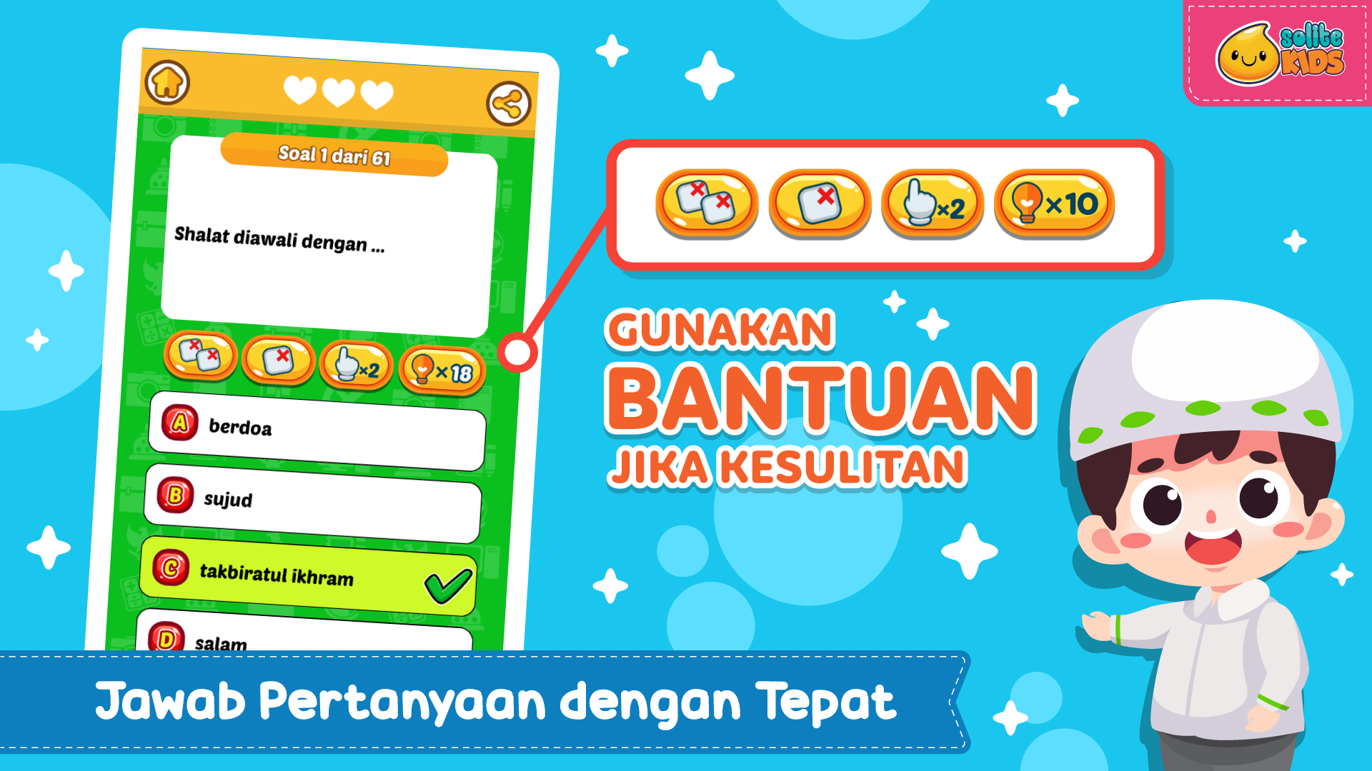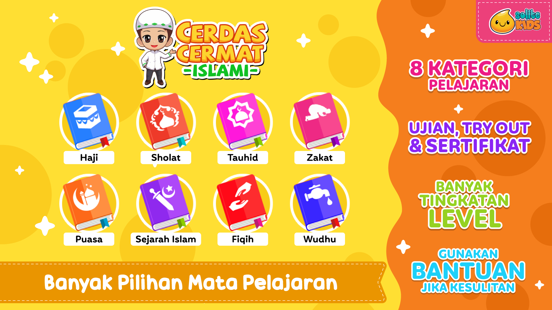 Die islamische Quiz-Quizserie ist eine Bildungsanwendung, die eine Sammlung islamischer religiöser Fragen für Schul- und Medressenkinder enthält. Mit dieser Anwendung können Schüler die Bearbeitung religiöser Fragen sowohl zur Vorbereitung auf Schulprüfungen, Madrasa-Prüfungen als auch auf die Staatsprüfung für Islamische Bildung oder UNAS üben. Diese Anwendung ist mit interessanten interaktiven Spielen ausgestattet, damit Kinder auf unterhaltsame Weise lernen können. Funktionen von Prüfungsfragen: - Quizfragen zur Gebetsprüfung - Quizfragen zur Tawhid-Prüfung - Quizfragen zur Wudhu-Prüfung - Quizfragen zur Fastenprüfung - Quizfragen zur Zakat-Prüfung - Quizfragen zur Fiqh-Prüfung - Quizfragen zur Prüfung zur islamischen Geschichte - Quizfragen zur Hajj-Prüfung Unterbrechungsfunktionen - Basketball-Wurfspiel - Eichhörnchen-Sprungspiel (Eichhörnchen-Sprungspiel) Merkmale der Madrasa-Prüfung - Test- und Prüfungsfunktionen - Madrasa-Unterrichtsprüfung - Diskussion von Prüfungsfragen - Drucken Sie Madrasah-Prüfungszertifikate und -berichte aus Prüfungsfragen sind für Madrasah- oder Islamische Schüler der Klassen 1, 2, 3, 4, 5 bis 6 verfügbar. Sehr gut geeignet für Kinder zur Vorbereitung - Nationale Prüfung in Medresse (UNAS) - Schul- oder Madrasa-Abschlussprüfung (UAS) - Abschlussprüfungen - Halbjahresprüfung (UTS) - Tägliche Prüfungen - Tägliches Quiz - Islamische Religionsprüfung - PAI-Frageprüfung - Sowie für tägliche Übungsfragen. Diese Anwendung für Prüfungsfragen ist für muslimische Kinder geeignet, die lernen möchten, vollständige und interaktive islamische Fragen zu beantworten. Prüfungsquizfragen werden interaktiv und attraktiv präsentiert, komplett mit Menütönen und attraktiven Bildern, damit sich Kinder nicht langweilen, wenn sie islamische Prüfungsquizfragen stellen. Diese Quizfrage zur islamischen Religionsprüfung wird dringend empfohlen, um Kinder zu üben. Komm schon, Mutter, worauf wartest du, lass uns Kindern helfen, mit dem islamischen Quiz Quiz zu lernen. Genießt die Schulferien, Brüder und Schwestern. Om Telolet Om Telolet om ist der Klang einer Touristenbushupe, die normalerweise von einem Busfahrer mit einem Telolet-Ton ertönen gelassen wird. ================ Über CERMAT ================ Cermat ist eine Quiz-Reihe, die Prüfungsfragen ansprechend verpackt präsentiert, damit die Nutzer spielerisch lernen können, Fragen zu bearbeiten. Es gibt bereits mehrere Serien der Cermat Serial (Serial Quiz), darunter: Smart Smart for Elementary School, Smart Quiz for Middle School und Islamic Quiz.