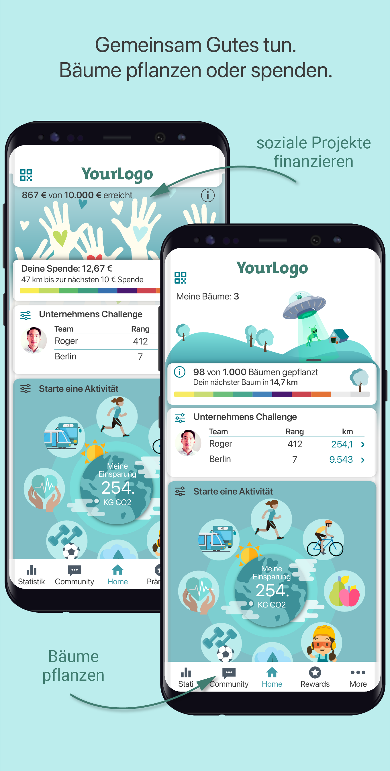 Mit Spiel und Spaß für gesündere und zufriedenere Mitarbeiter Changers ist Deine Gesundheitsplattform, um gesünder, glücklicher und grüner zu werden. Wir bieten Changers CO2 fit App in einer kostenfreien Version für alle und einer White Label Version für Unternehmen an, die Ihren Mitarbeitern eine vollumfängliche BGM Gesundheitsplattform für App und Web anbieten möchten. Die Einrichtung und Anpassung an die eigenen Vorstellungen erfolgt mit geringstem zeitlichen Aufwand und ohne eigene Software-Entwicklungs-Kapazitäten über unsere SaaS Administrationsplattform. Out of the Box oder individuell Den Unternehmen stehen in vier Kategorien gesunde Aktivitäten wie Workout-Videos, geführte Meditationen, Rezepte oder Vorsorgeuntersuchungen fertig aufbereitet zur Auswahl. Darüber hinaus können jederzeit eigene Gesundheitsmaßnahmen hinzugefügt werden. So kann die unternehmenseigene Grippeschutzimpfung mitsamt allen notwendigen Infos wie Ort, Zeit und Ansprechpartner hinterlegt und die Teilnahme mit Bonuspunkten belohnt werden. Aber auch das Video des letzten Sicherheitsseminars oder die Informationen zur bewegten Pause finden mit wenigen Klicks Eingang in die App und auf das Smartphone der Mitarbeiter. Gesunde Bewegung motivieren Spielerische Teamwettbewerbe rund ums Laufen und Radfahren können mit wenigen Klicks von den Unternehmen individuell eingerichtet und gestartet werden. Teams können Niederlassungen, Abteilungen, Werke, Filialen oder aber auch frei gewählte Gruppen sein. Aktuelle Ranglisten motivieren die Teilnehmer dran zu bleiben. Wertvolle Bonuspunkte verdienen In der Changers Gesundheitsplattform ist ein eigenes Prämien- und Bonussystem bereits enthalten. Automatisch generieren die Apps für jeden zu Fuß und mit dem Fahrrad zurückgelegten Kilometer 1 Bonuspunkt, den wir in der App ReCoin nennen. Unternehmen können zudem die Teilnahme an gesundheitsfördernden Maßnahmen mit ReCoins individuell incentivieren. ReCoins können von den Teilnehmern in der App beispielsweise gegen Gutscheine wie einen Fitness Teller in der Kantine, eine Rückenschulung oder einen Fahrradzubehör eingetauscht werden. Auch besteht die Möglichkeit, individuelle Verlosungen im Unternehmen zu starten. Gut für die Mitarbeiter, gut fürs Unternehmen und gut für die Umwelt Zusätzlich können für Leistungspunkte auch Bäume gepflanzt oder Spenden für selbst gewählte Projekte gesammelt werden. Beispielsweise wird für 100 mit dem Rad zurückgelegte Kilometer eine Baumpflanzung in einem ökologischen Wiederaufforstungsprojekt in Deutschland freigeschaltet. Der eigene „Unternehmenswald“ motiviert, verbessert die CO2-Bilanz und sensibilisiert für den Umweltschutz. Auch soziale Spendenprojekte sind eine große Motivation und stärken die Unternehmenswerte, ob Kinderhilfswerk, Ärzte ohne Grenzen oder die Kita-Renovierung im Ort. Partnereinbindung Changers versteht sich als Plattform. Wir setzen in allen Bereich auf Partnerschaften mit Spezialisten wie Fitness-Geräte Herstellern, Betreibern von Fitness-Centern, Sport und Outdoor App Anbietern und natürlich Anbietern von Programmen zur Stressbewältigung, Ernährungsverbesserung, Meditationen und und und. Unternehmen können mit unsere Software diese Leistungen von den Partnern zusätzlich beziehen oder ihre eigenen lokalen Anbieter in die Plattform mit einbinden. Akku-Leistungen Die Changers App arbeitet besonders akkuschonend. Dennoch liegt der Verbrauch bei eingeschalteter GPS-Funktion höher als im normalen Betrieb des Smartphones. Datenschutz Die Software ist selbstverständlich DSGVO konform. Die Daten werden in Deutschland gehostet. Die dazu notwendige Energie kommt zu 100% aus erneuerbaren Quellen. Zudem hat Changers aus den Vertragsabschlüssen mit deutschen Konzernen die Anforderungen der Betriebs- und Personalräte in die Softwareentwicklung einfließen lassen. Dazu gehören anonyme Teilnahme ohne Klarnamen und Unternehmens-Email genauso wie persönlich durchführbare Kontolöschungen in der App.