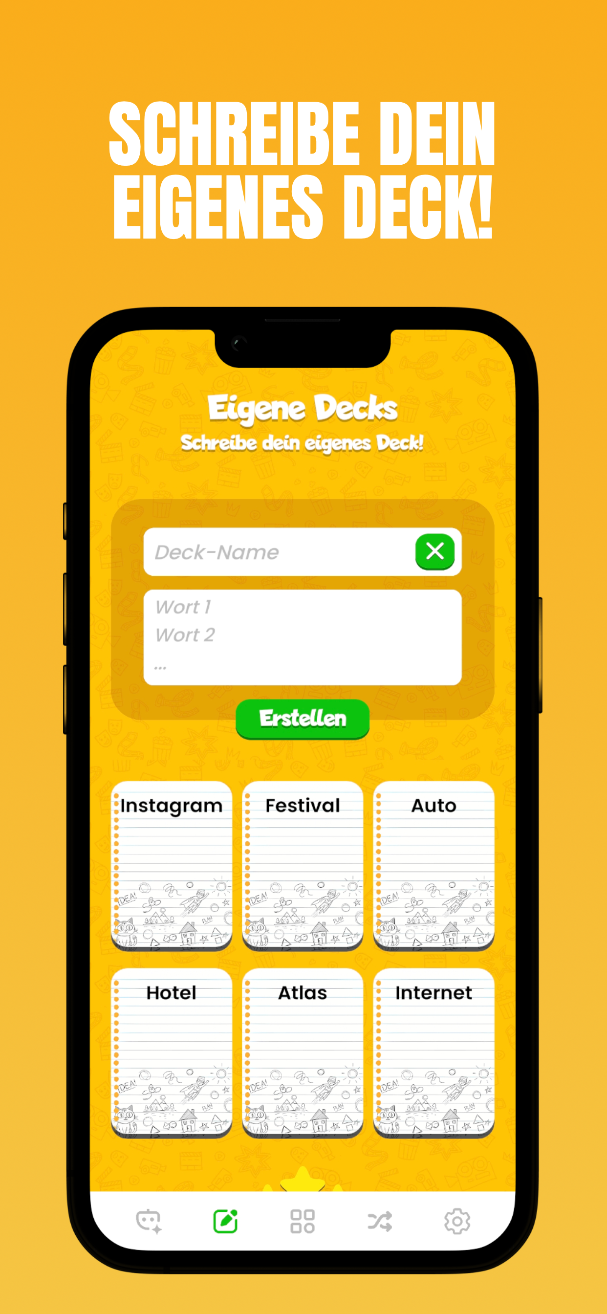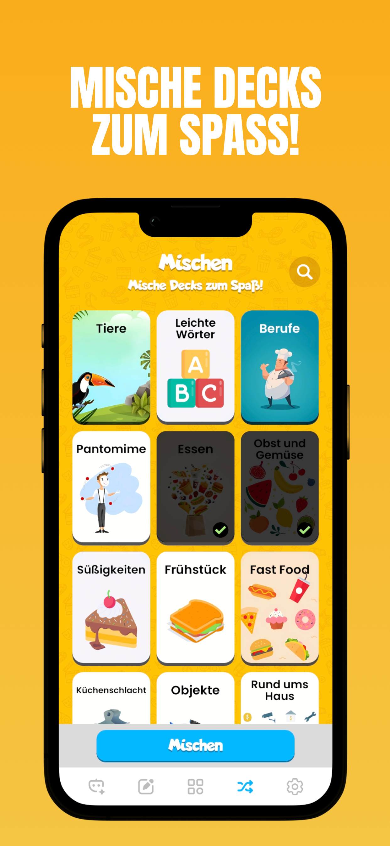 Mach dich bereit für den ultimativen Spieleabend! 🎉 Ob auf einer Party, beim Familientreffen oder unterwegs auf Reisen – diese App bringt garantiert alle zum Lachen. Verwandle langweilige Momente in echtes Entertainment! So funktioniert’s: Das Prinzip ist simpel, aber genial: Halte das Smartphone an deine Stirn. Deine Freunde müssen dir den gezeigten Begriff erklären – durch Singen, Tanzen, Pantomime oder clevere Hinweise. ✅ Erraten? Kippe das Handy nach vorne, um zu punkten. ❌ Keine Ahnung? Kippe das Handy nach hinten, um den Begriff zu überspringen. Versuche, so viele Begriffe wie möglich zu erraten, bevor die Zeit abläuft! Warum du diese App lieben wirst: Diese App bietet dir sofortigen Zugriff auf eine riesige Bibliothek an Begriffen. Egal ob für eine schnelle Runde zwischendurch oder einen langen Spieleabend – hier wird es nie langweilig! Features auf einen Blick: ⭐ Über 100 Kategorien: Von Allgemeinwissen bis Popkultur. ⭐ Flexibel: Spiele mit einem Freund oder einer ganzen Gruppe. ⭐ Anpassbar: Entscheide selbst, ob mit oder ohne Ton. ⭐ Lerneffekt: Perfekt, um spielerisch neue Vokabeln und Begriffe zu lernen. ⭐ Modernes Design: Bunt, übersichtlich und einfach zu bedienen. Entdecke deine Lieblingskategorien: Wir haben Pakete für jeden Geschmack und jedes Alter zusammengestellt. Hier ein kleiner Vorgeschmack: 🎬 Filme & Serien: Harry Potter, Star Wars, Disney, Marvel, The Simpsons, Herr der Ringe, Friends, Netflix-Hits... 🌍 Wissen & Welt: Geografie, Geschichte, Hauptstädte, Flaggen, Marken, Religion... 🎮 Videospiele: Fortnite, Pokémon, League of Legends, Minecraft... ⚽ Sport: Fußballstars, Bundesliga, Olympia, Sportarten... 🎶 Musik: Hip Hop, 90er, Instrumente, berühmte Sänger... 🧸 Für Kinder: Tiere, Märchen, Gegenstände, Schule... ...und viele weitere Themen wie YouTuber, Essen, Mode oder Anatomie! Lade dir jetzt Scharade & Stirnraten herunter und zeig deinen Freunden, wer der wahre Champion im Erklären und Raten ist!