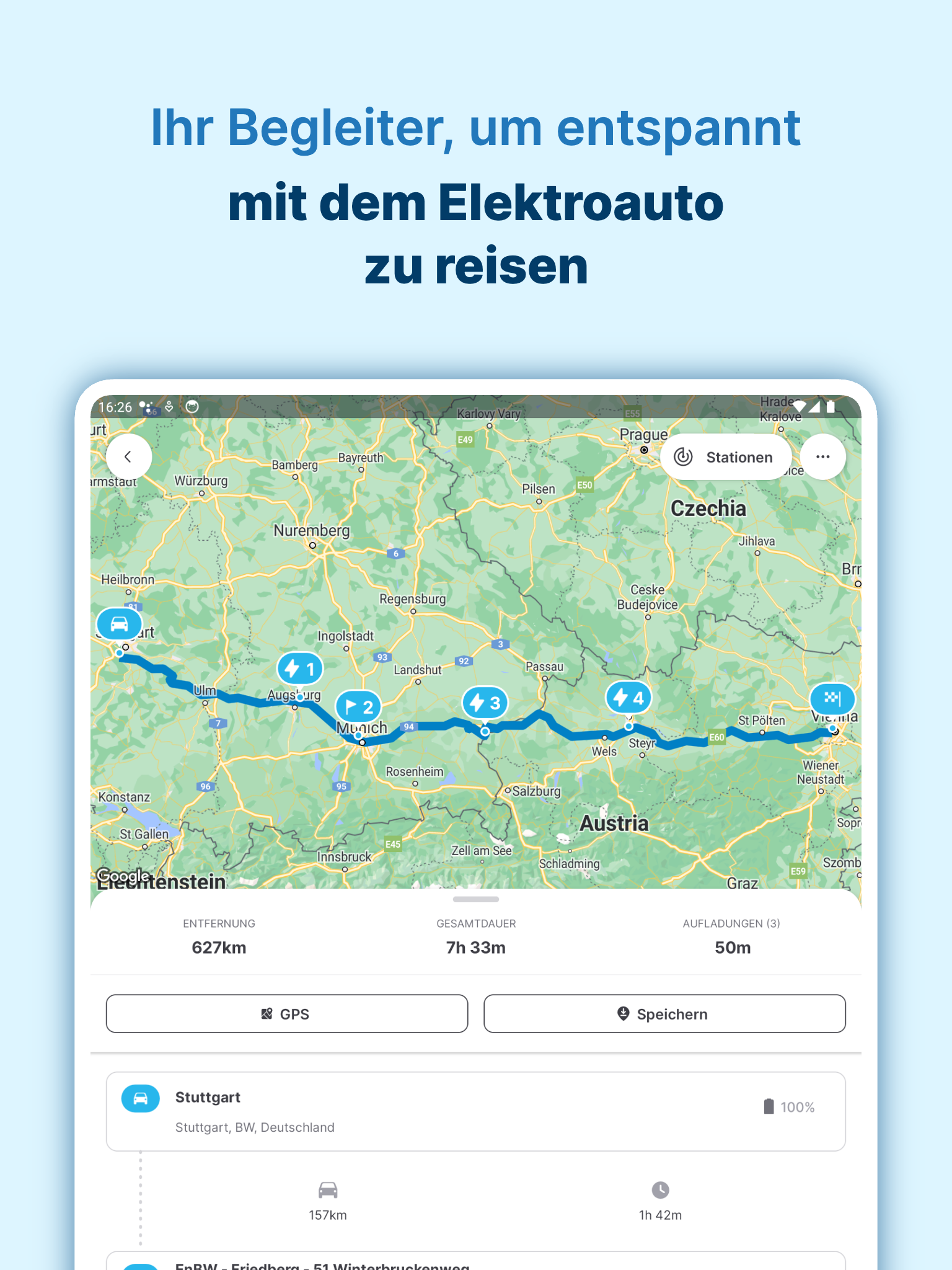 • Möchten Sie die besten Schnellladestationen entlang Ihrer Route ausfindig machen?