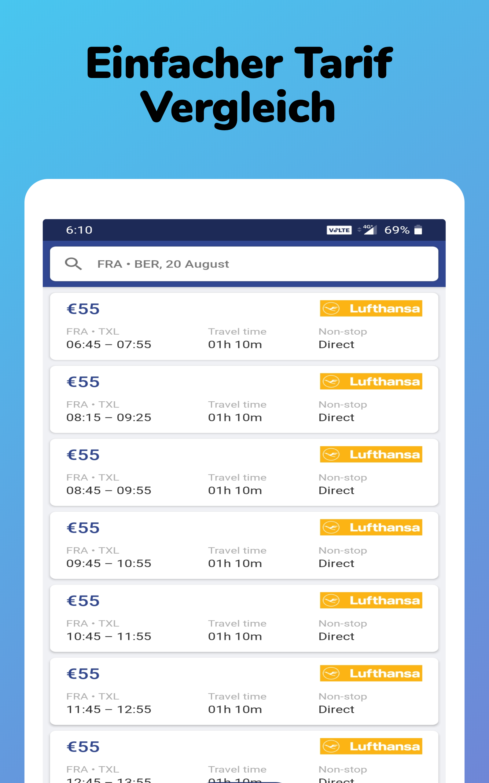 Günstige Flug-Apps helfen Ihnen, billige Flüge zu suchen und zu vergleichen, Low-Cost-Airlines, Angebote Flüge und Last-Minute-Flüge mit einem einzigen Klick. Passen Sie Ihre Reisepakete an und genießen Sie einen kostenlosen Urlaub mit einer günstigen Flugbuchungs-App. Unsere App bietet ein einfaches und problemloses Buchungsverfahren mit der neuesten UI/UX. Die Last-Minute-Flugbuchungsoption hilft Ihnen bei Ihrer Last-Minute-Flugreservierung. Schnelle Reisepläne nach Ihrem Budget zu machen und hilft Ihnen auch, sie sofort zu organisieren, sobald Sie buchen. Sie finden auch eine breite Palette von Paketen, Plänen, Angeboten und Rabatten. Diese günstige Flugbuchungs-App hilft Ihnen, geld- und zeitsparend auch in letzter Minute zu sparen. Sie erhalten exklusive Angebote und Rabatte und günstige Flüge an einem Ort. Wir sind mit großen Fluggesellschaften wie Air Canada, West Jet, Wizz Air, Easy Jet, Indigo, Spice Jet, Go Air, Air India, Emirates, Delta Airline, Amerikanische Fluggesellschaft, Qatar Airways, Malaysia Fluggesellschaft, Thai Airways, Air Arabia, British Airways etc. vertraut. Vorteile und Funktionen • Sie können jederzeit Ihren Flugstatus überprüfen und Ihre Buchung jederzeit und überall verwalten, auch wenn Sie offline sind. • Ändern Sie Ihre Buchung oder stornieren Sie sie mit Leichtigkeit und kostenlos!. • Speziell in einem einfachen Buchungsfluss entworfen, buchen Sie es direkt über offizielle Websites von Fluggesellschaften. • Vergleichen Sie Preise und Sie können die günstigsten von unserer App buchen. Es wird keine zusätzliche Gebühr zu den Ticketpreisen hinzugefügt • Sie finden viele Sortier- und Filteroptionen mit einem Klick • Sie können den Flug in letzter Minute mit nur einem Klick buchen und auch wir werden Angebote und Rabatte in jeder Sekunde aktualisieren. • Wir unterstützen Sie rund um die Uhr mit allwissenden Reiseführern, die täglich Tausende von Flügen analysieren. • Sie können sogar Ihren Lieblingsplatz unterwegs auswählen und können auch jederzeit ändern Tausende von Menschen reisen jeden Monat mit uns um die Welt. Alle Dienstleistungen, die wir anbieten, sind kostenlos und einfach. Nach der Buchung gibt es keine versteckten Gebühren oder Steuern – die Preise sind transparent, nur um einen Flug zu beobachten, werden Sie benachrichtigt, wenn es einen Preisverfall gibt und Sie werden den genauen Zeitpunkt kennen, um Ihr Ticket zu buchen. Sie sparen bis zu 70% während unserer großen Menge Zeit und dies alles braucht eine Frage von Sekunden, um Ihren Flug zu buchen. Laden Sie unsere App herunter und profitieren Sie von großen Einsparungen in Ihrem Budget, indem Sie Ihre Flugangebote vergleichen.