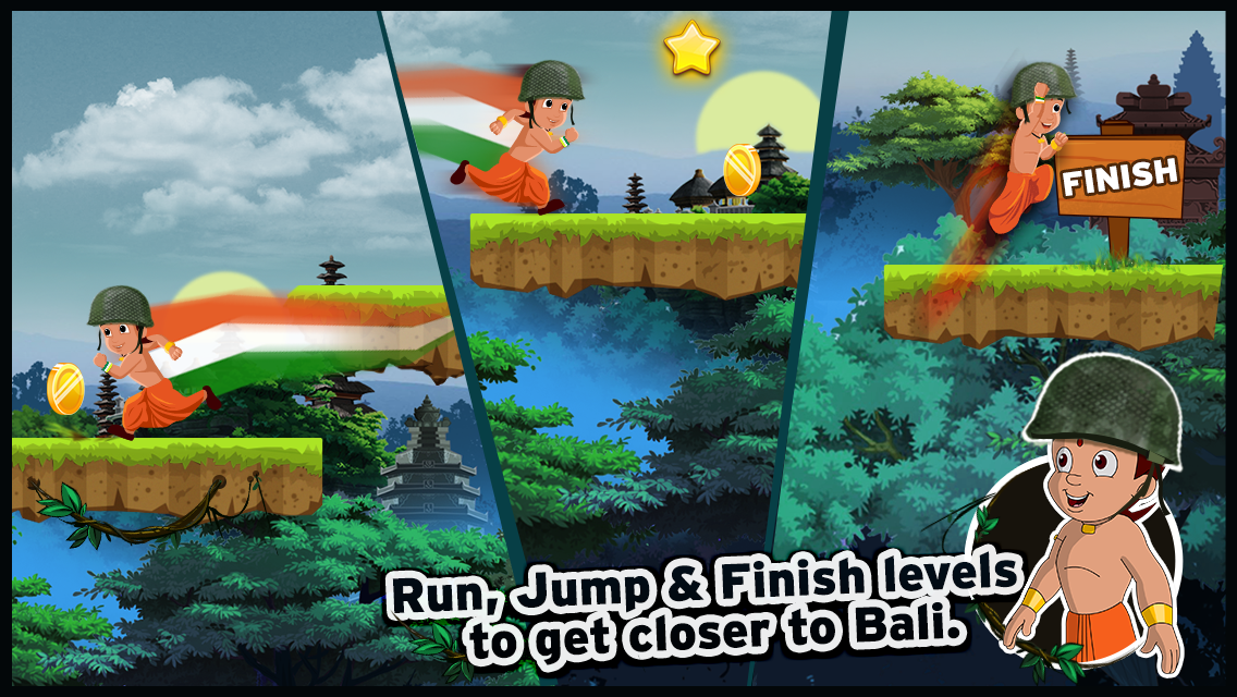 Run through the exotic lands of Bali and avoid the evil monsters Layaks of the spirit Rangda to save the captured King and Queen of Bali. Don't miss the coins, Bheem needs them to restore his life. Avoid the creatures and evil monsters by jumping over them. Bheem is known for his timing and reflexes and now its your chance to become famous on the leaderboard. Go and show the world that you are number 1 fan of Chhota Bheem