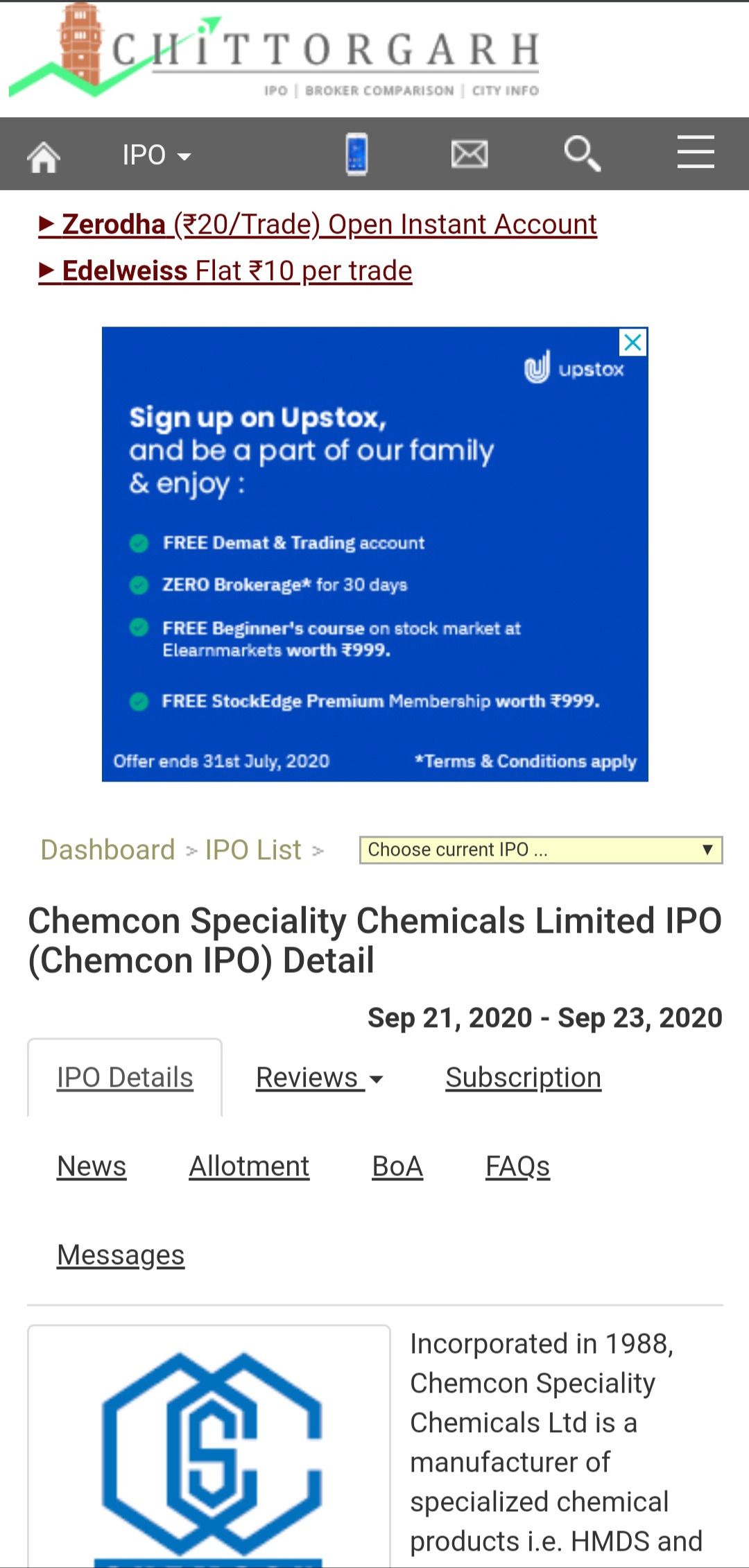 Chittorgarh.com gehört zu den beliebtesten Finanzportalen. Es bietet Informationen zu Börsengängen (Initial Public Offers, IPOs), FPOs, NCD-Anleihen, Börsenmaklern und der Geschichte von Chittorgarh City. Diese App ist die offizielle Android App von Chittorgarh.com, einem IPO Investment Portal.