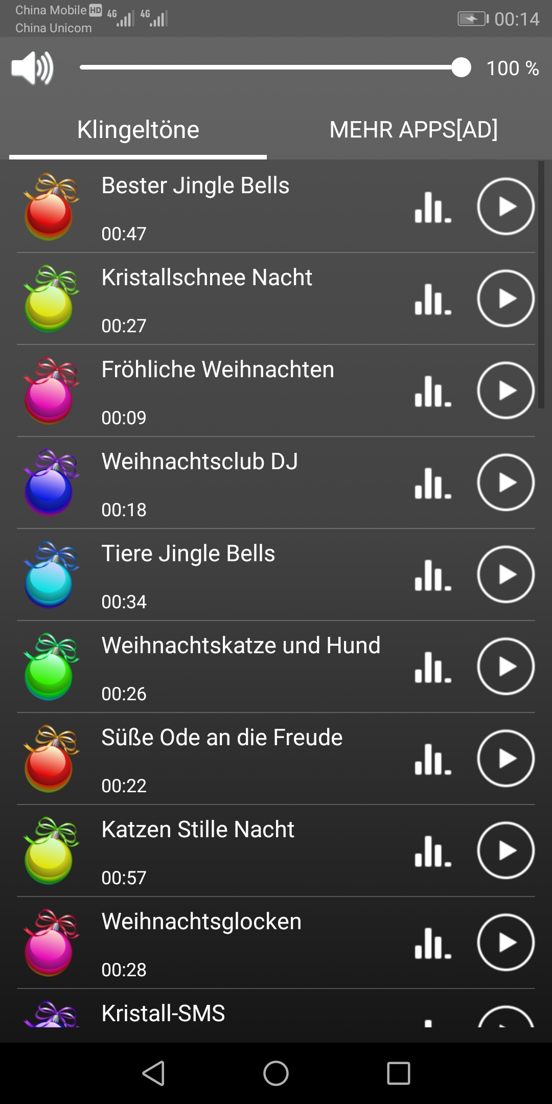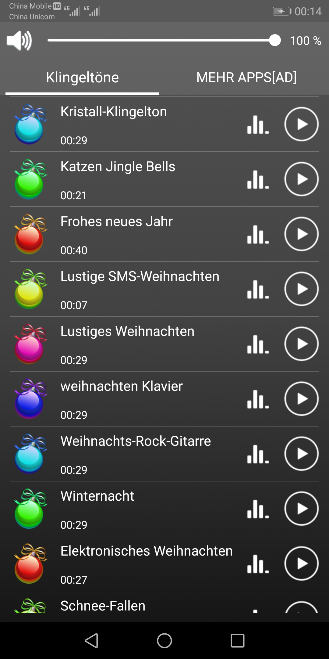 Öffnen Sie diese Anwendung für Weihnachtsklingeltöne und Hintergrundbilder, und drücken Sie die Wiedergabetaste, um die MP3-Musik anzuhören.