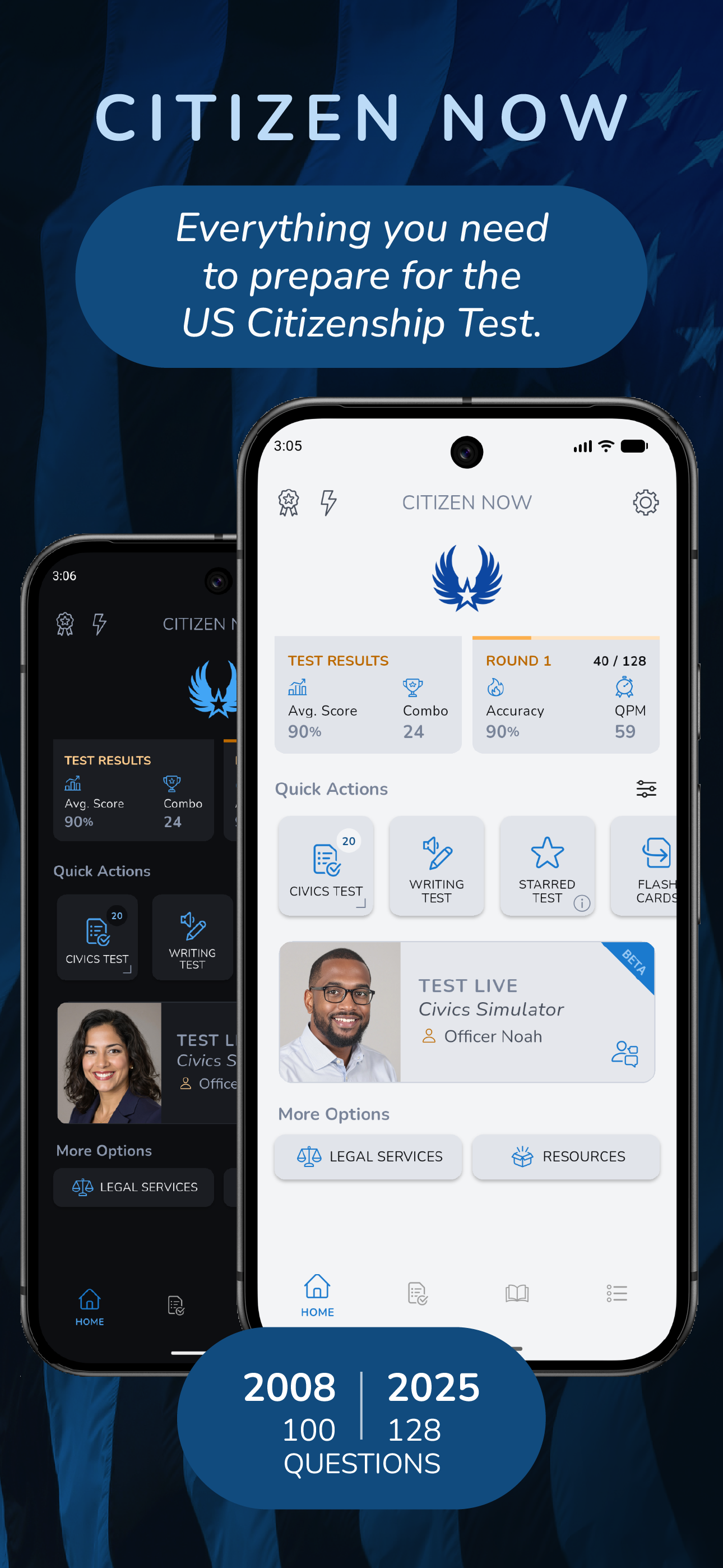 Bewältigen Sie den US-Einbürgerungstest mit Citizen Now, dem umfassendsten Lernwerkzeug für das Einbürgerungsinterview 2026. Unsere App orientiert sich am offiziellen USCIS-Lernleitfaden und deckt alle Teile des Einbürgerungstests ab: die Versionen von 2008 (100 Fragen) und 2025 (128 Fragen), das Formular N-400 sowie die Abschnitte Lesen und Schreiben. Lernen Sie überall, sogar unterwegs mit Android Auto.