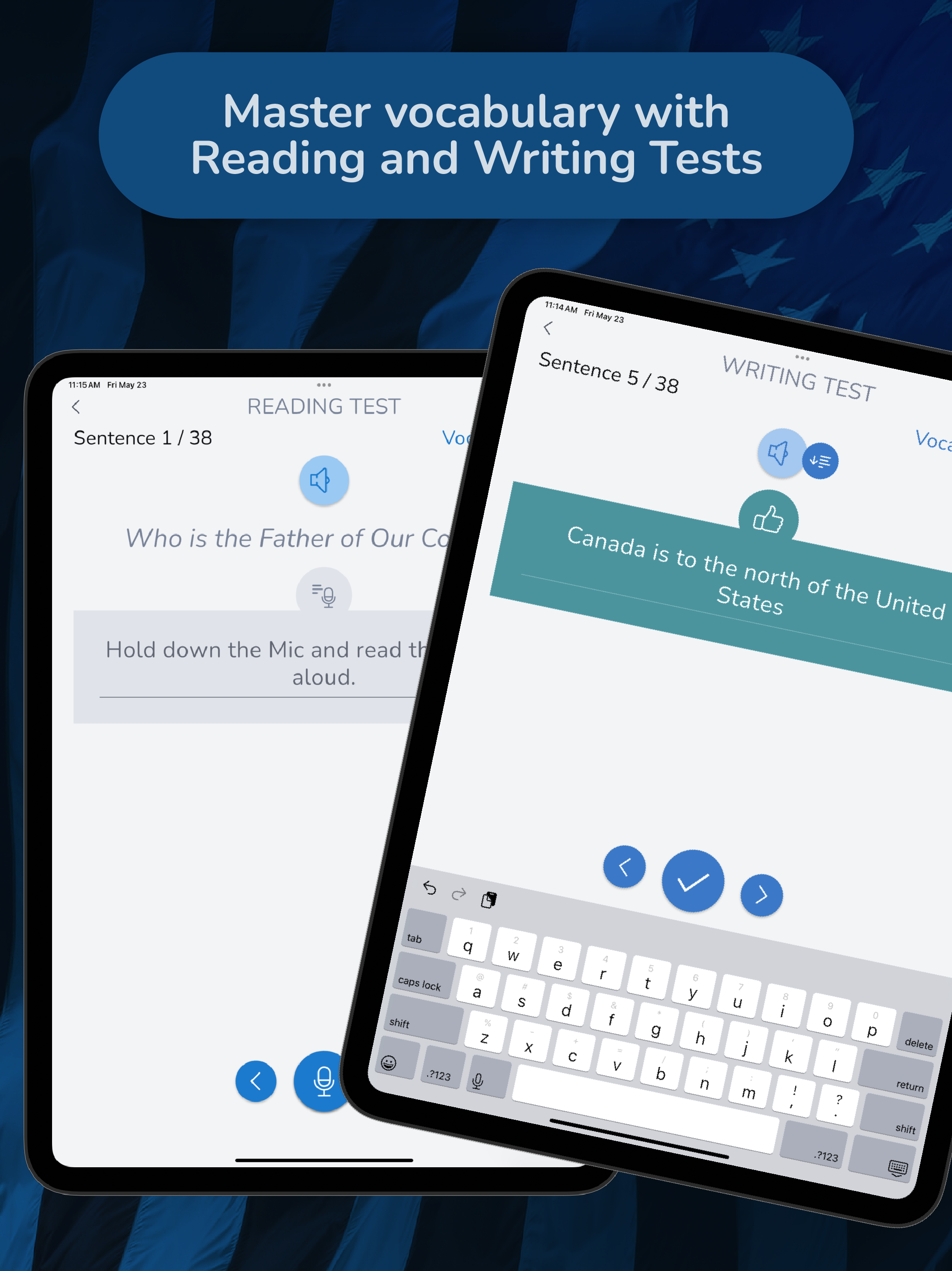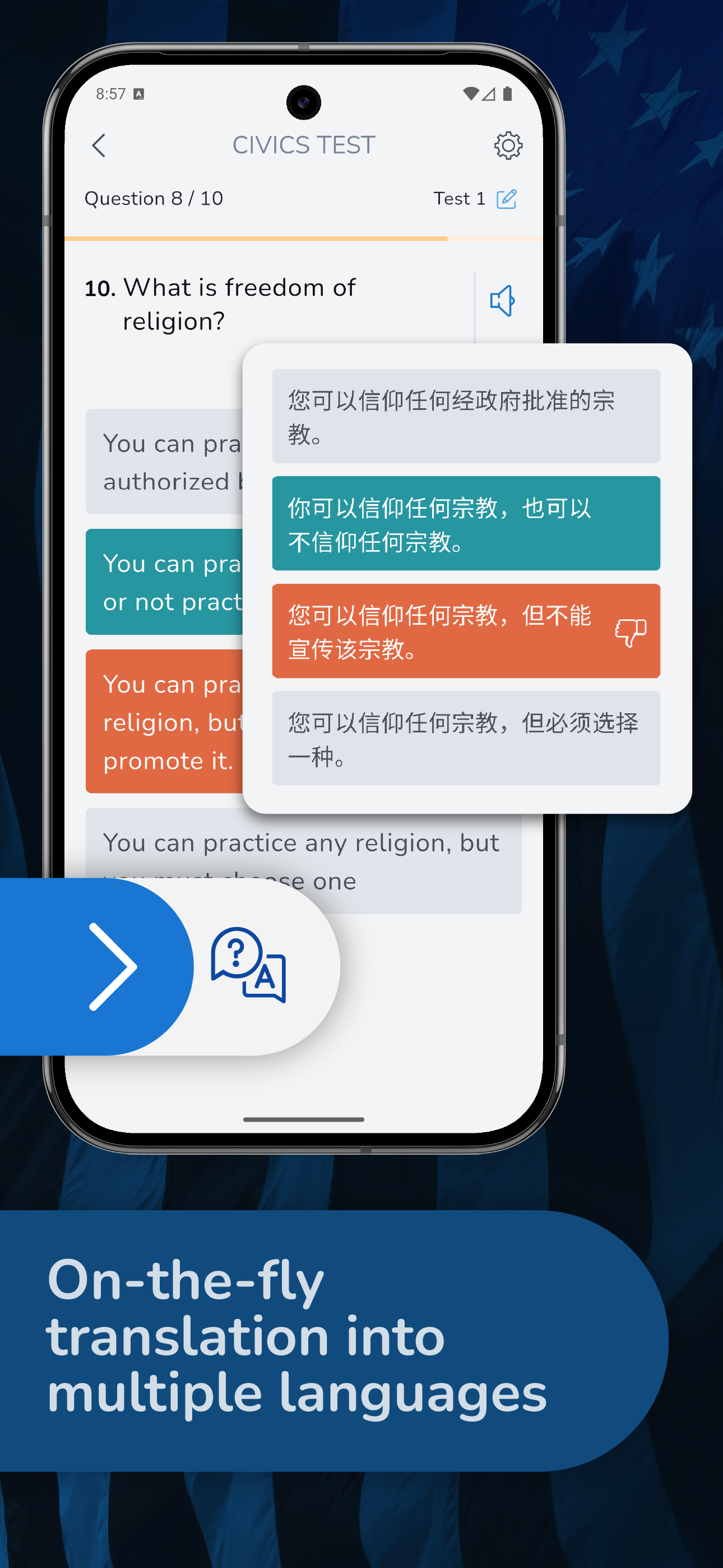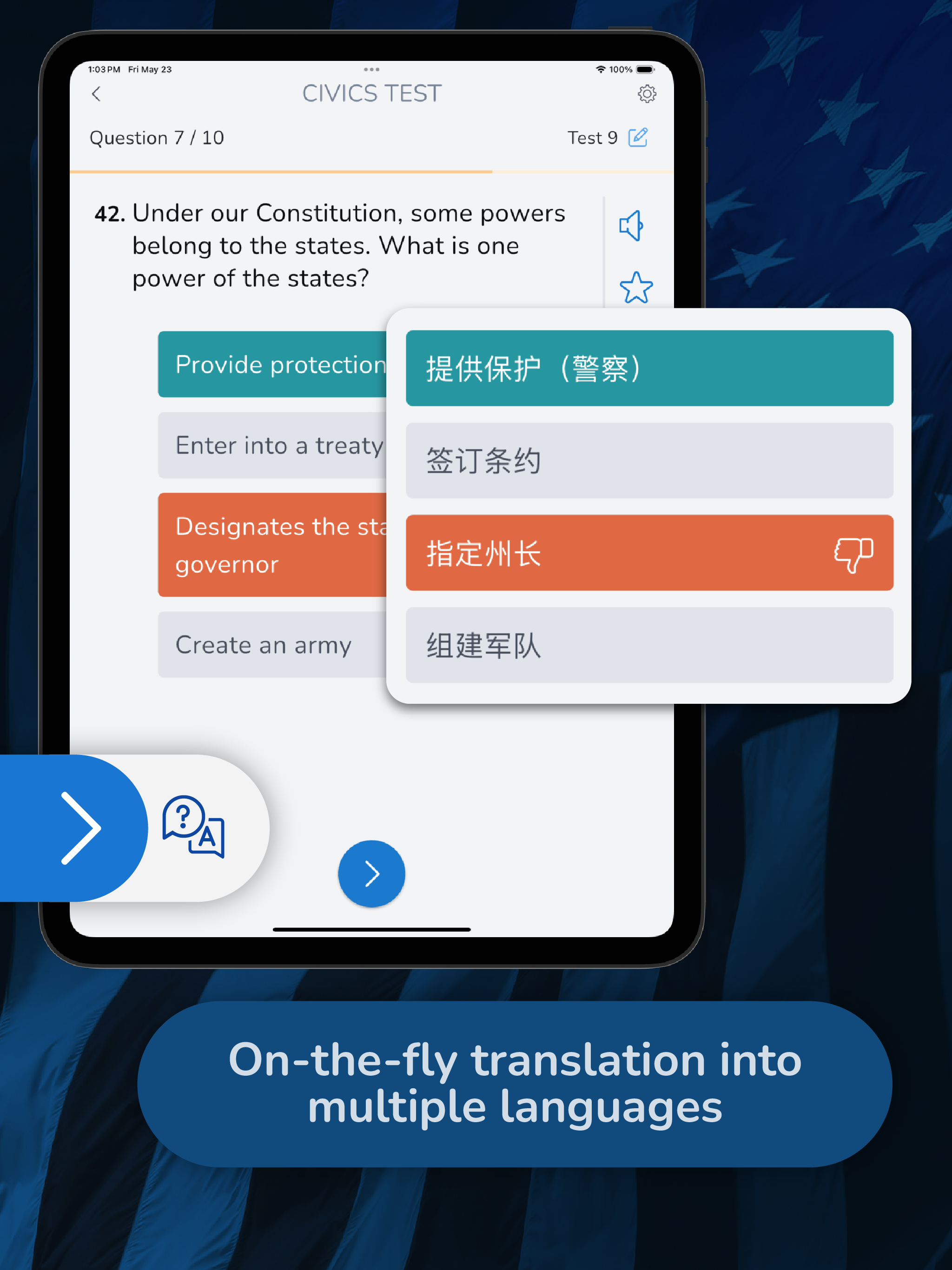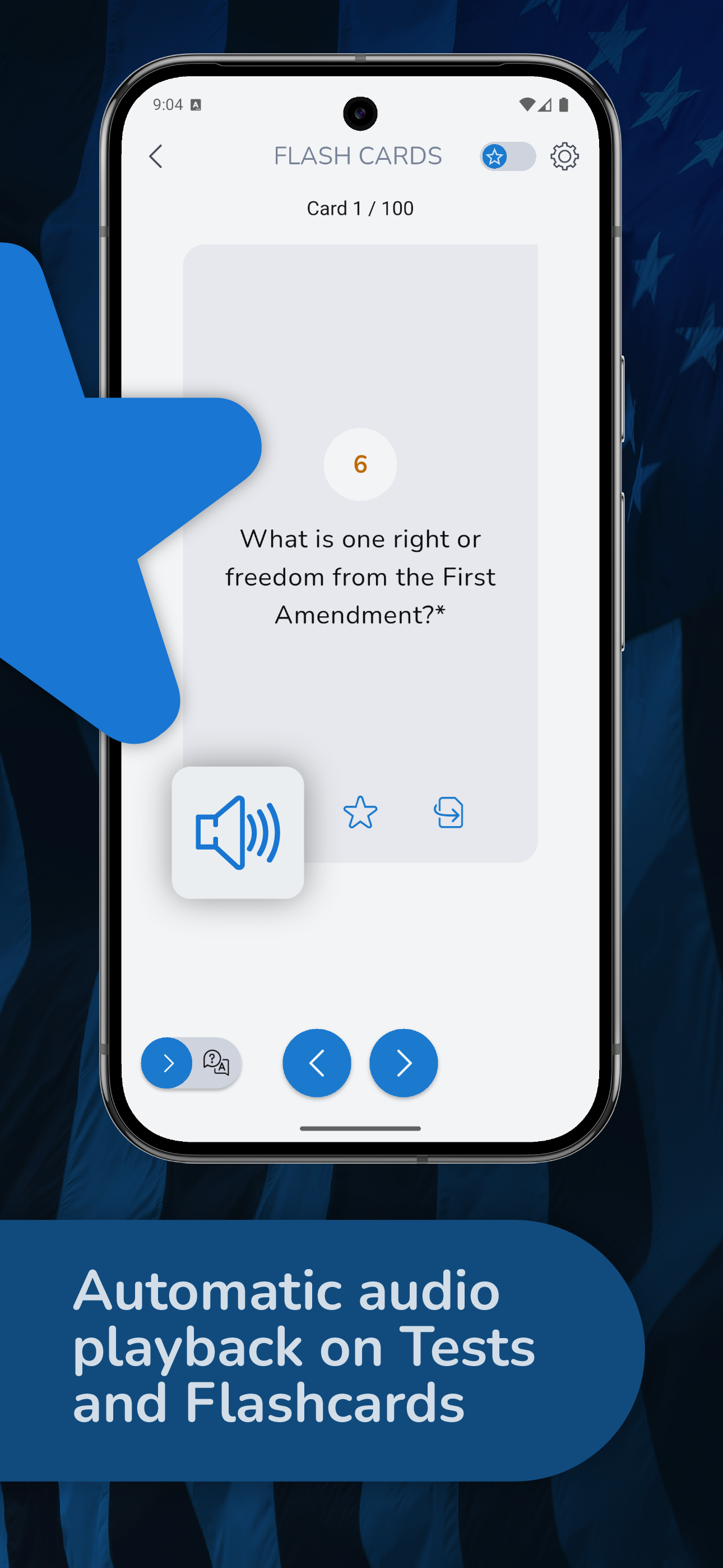 Üben Sie mit offiziellen US-Staatsbürgerschaftsfragen, die vorgelesen werden. Ideal zum freihändigen Lernen während der Autofahrt und zur Verbesserung Ihres Hörverständnisses im Englischen.