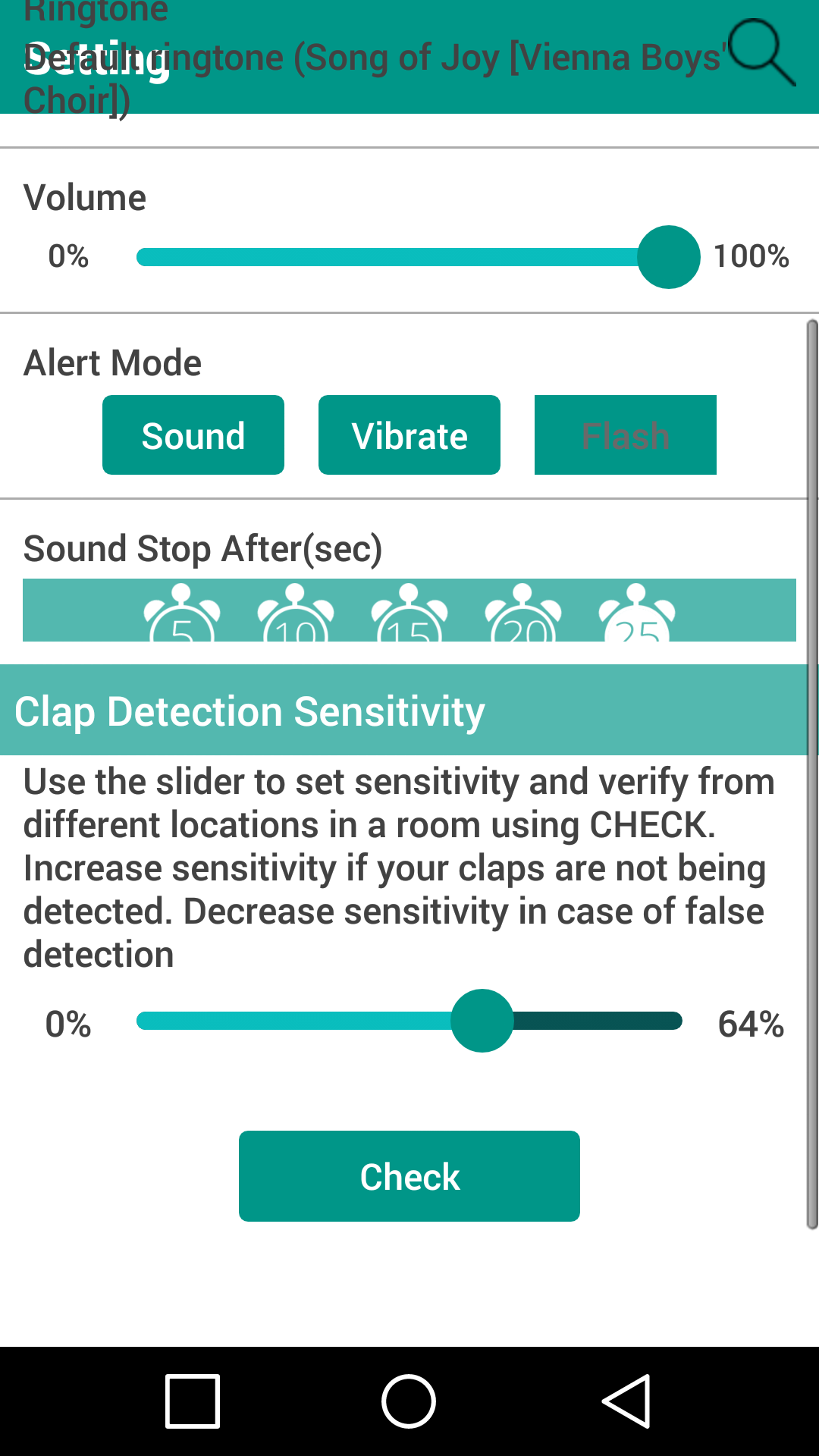 Also you set your mobile ringing volume and set your clap sensitivity. Also set alert setting you set different volume, vibration, flash sound stop time like 5sec, 10 sec or more second are available.
