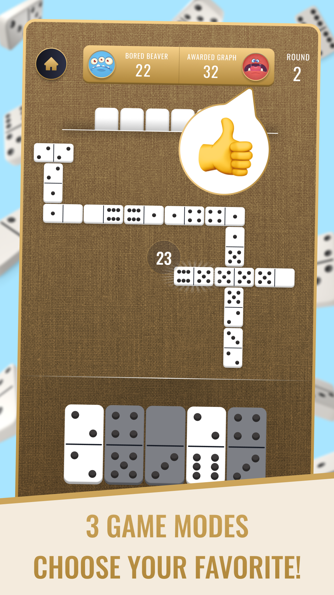 Domino: Classic Dominoes Game (Paketname: com.chorse.domino) wird von C-Horse Games entwickelt und die neueste Version von Classic Dominoes: Board Game 2.11.2 wurde am 18. Dezember 2025 aktualisiert. Classic Dominoes: Board Game liegt in der Kategorie von Brettspiele. Sie können alle Apps von dem Entwickler der Classic Dominoes: Board Game durchsuchen. Derzeit ist diese APP kostenlos. Diese App kann auf Android 6.0+ auf APKFab oder Google Play heruntergeladen werden. Alle APK/XAPK Dateien auf APKFab.com sind original und 100% sicher, schnell herunterzuladen.