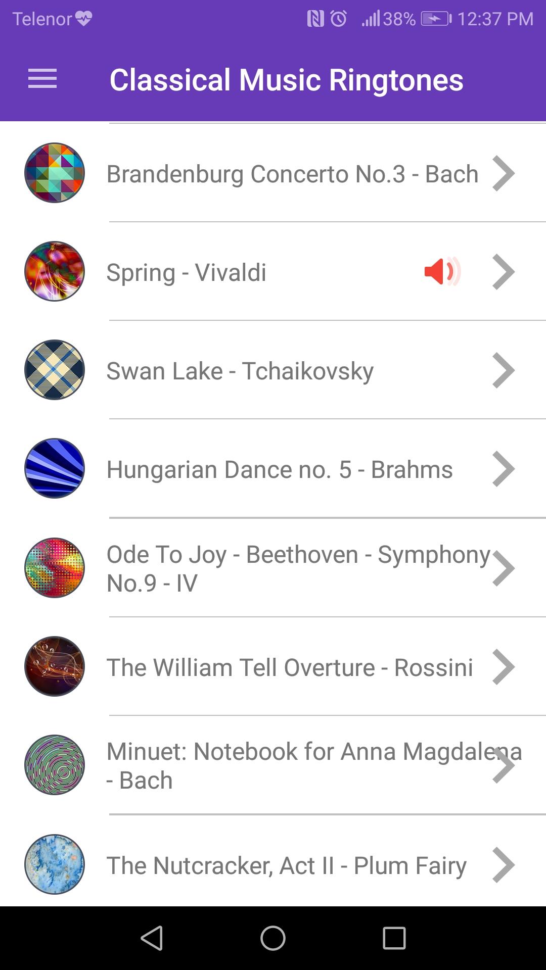Klassische Music Klingeltöne kann Ihr täglicher geistiger Assistent sein . Schließen Sie die Augen, stellen Sie sich vor, dass Sie an einem schönen Ort sind, und genießen Sie kostenlose Klingeltöne jedes Mal, wenn Sie angerufen werden. Wählen Sie aus der Vielfalt der Kompositionen - weltweit bekannt sind Fur Elise, Ode an die Freude, die vier Jahreszeiten, Mondscheinsonate und Eine kleine Nachtmusik. Wenn Sie Symphonien, Opern und Sonaten mögen, Klassische Music Klingeltöne ist die perfekte Anwendung für Sie! Diese App hat auch beste klassische Musik und coole Klingeltöne. Fühlen Sie sich jedes Mal berührt, wenn Sie diese Klassische Klingeltöne zu hören bekommen. Sie fühlen sich bereits besser, nicht wahr? Nun öffnen Sie die Augen und spüren Sie die Magie der klassische Musik.