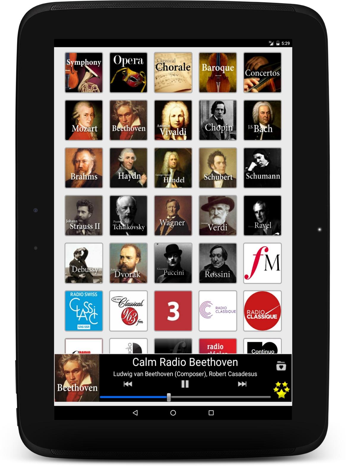 Hören Sie live Ihre klassischen Lieblingsradiosender und Ihren bevorzugten Komponisten mit Classical Radio. Überall in Ihrem Land oder im Ausland, zu Hause oder in der Mobilität können Sie mit unserer Anwendung einfach auf die besten und beliebtesten klassischen Radiosender der Welt zugreifen. Sinfonie, Konzert, Sonate, Oper, Requiem, Chor ... dort finden Sie alles!
