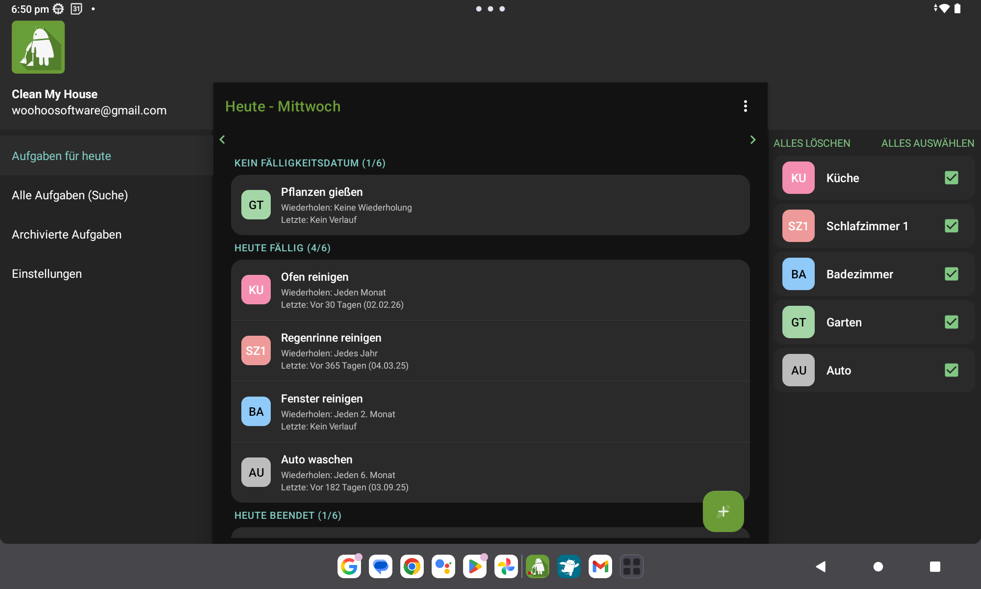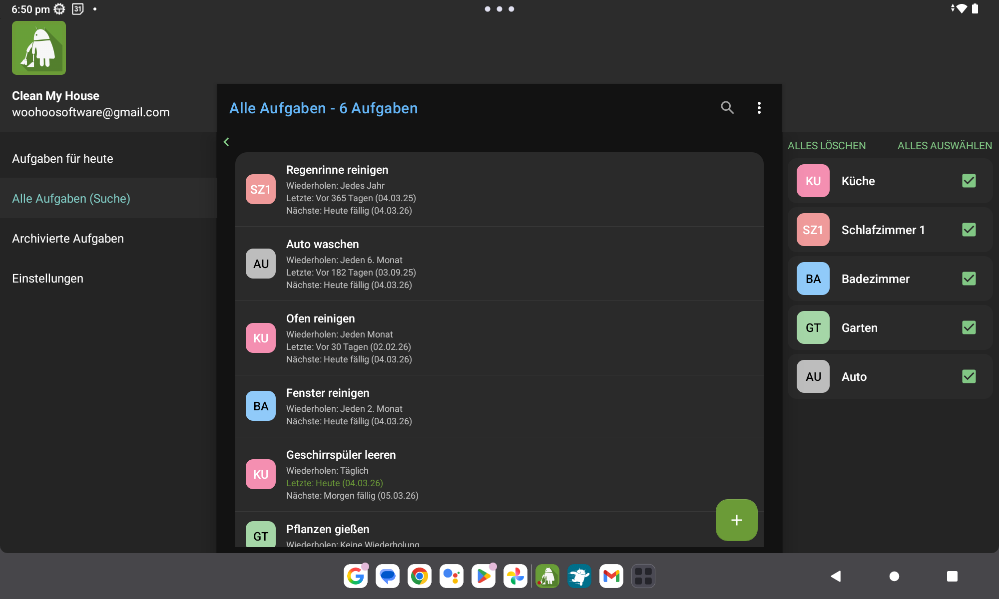 • Sicherung & Wiederherstellung — speichern Sie Ihren Putzplan und stellen Sie ihn jederzeit wieder her