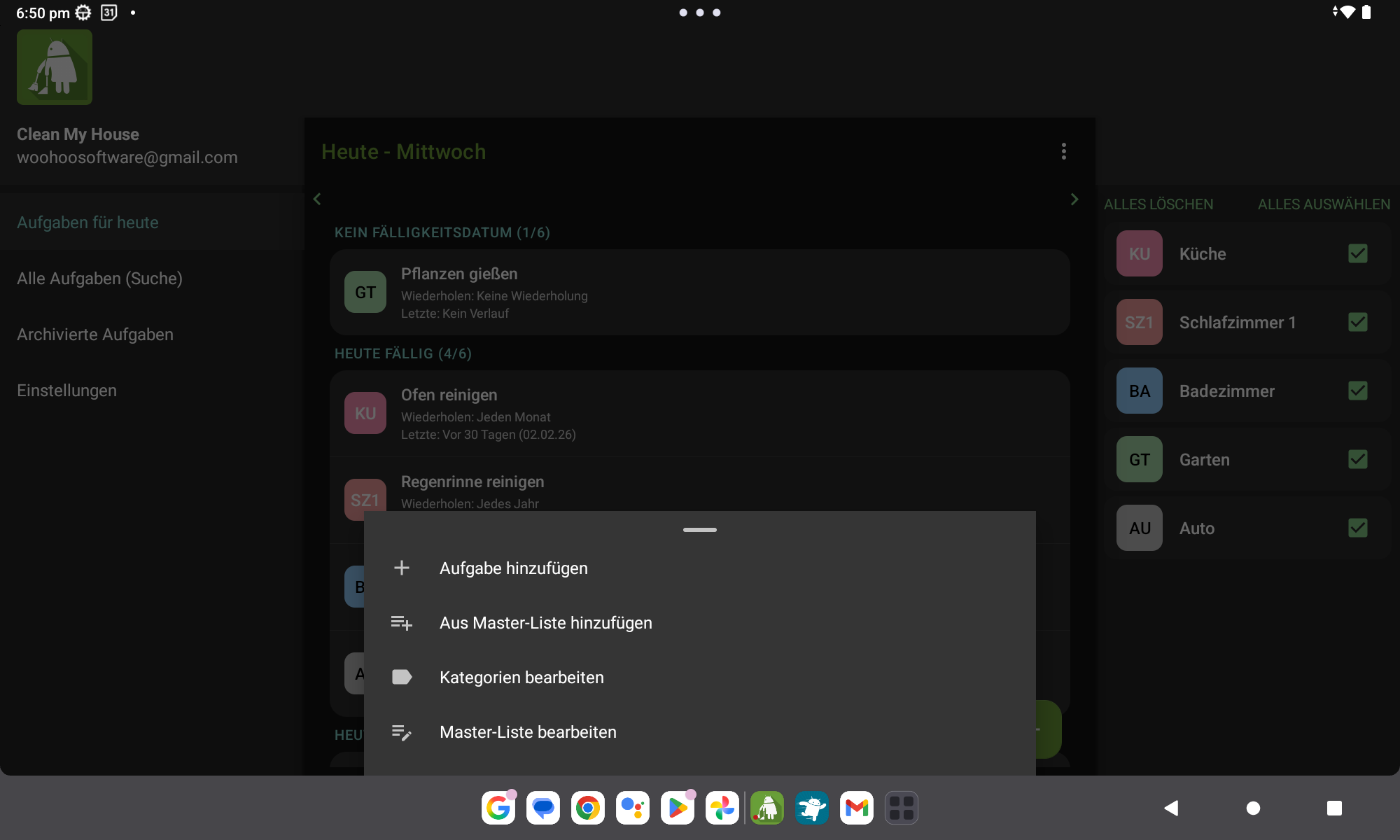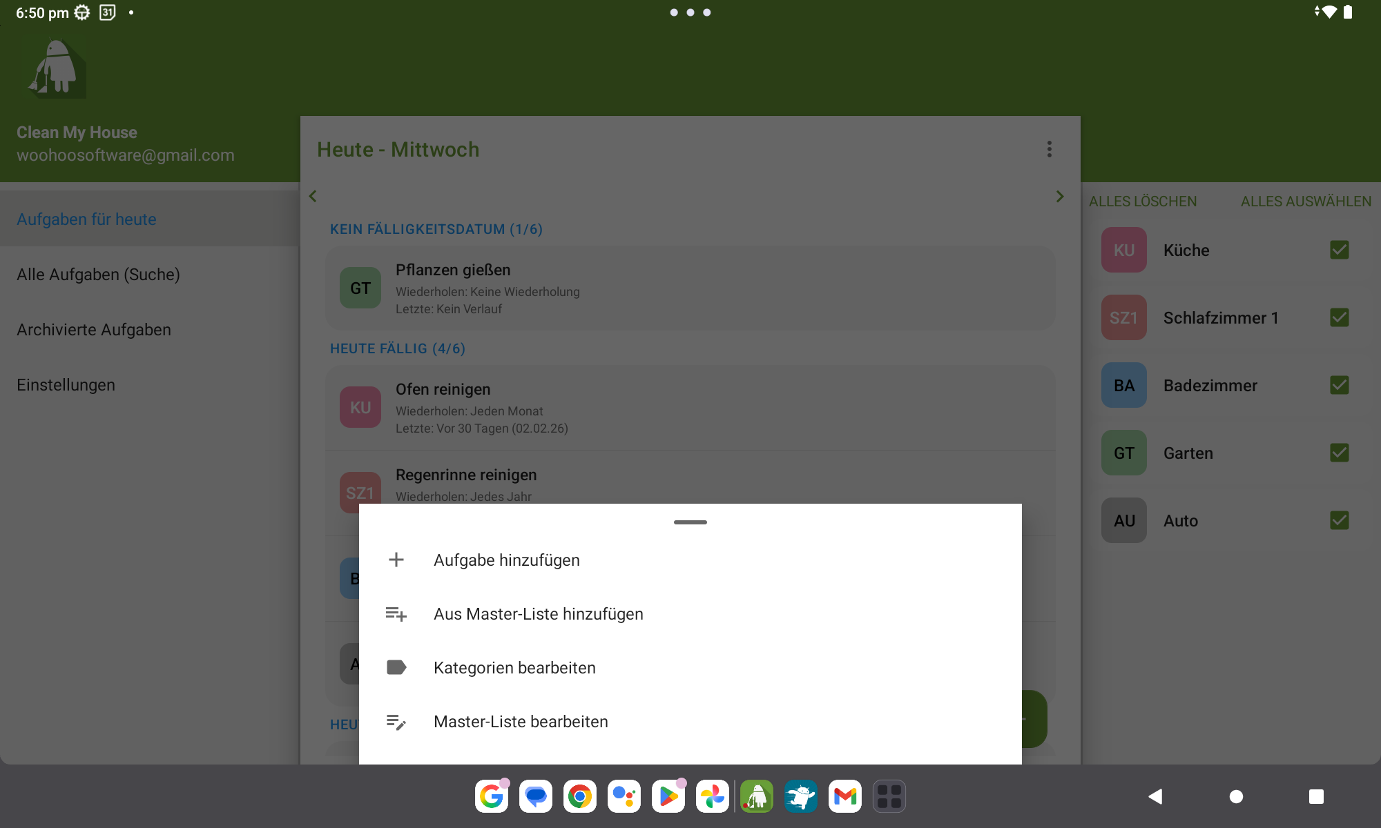 • Aufgabenkategorien — ordnen Sie Aufgaben nach Raum (Küche, Bad, Schlafzimmer und mehr)