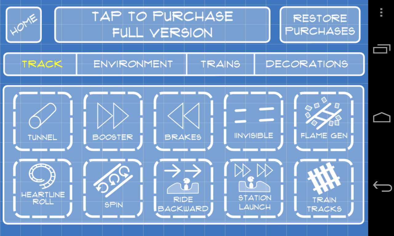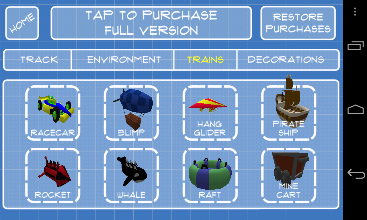 Kaufen Sie alle neuen Karren, Schienenteile, Umgebungen und mehr für Ihre Achterbahnkreationen mit einem günstigen, einzigen In-App-Kauf, um alles auf einmal freizuschalten!