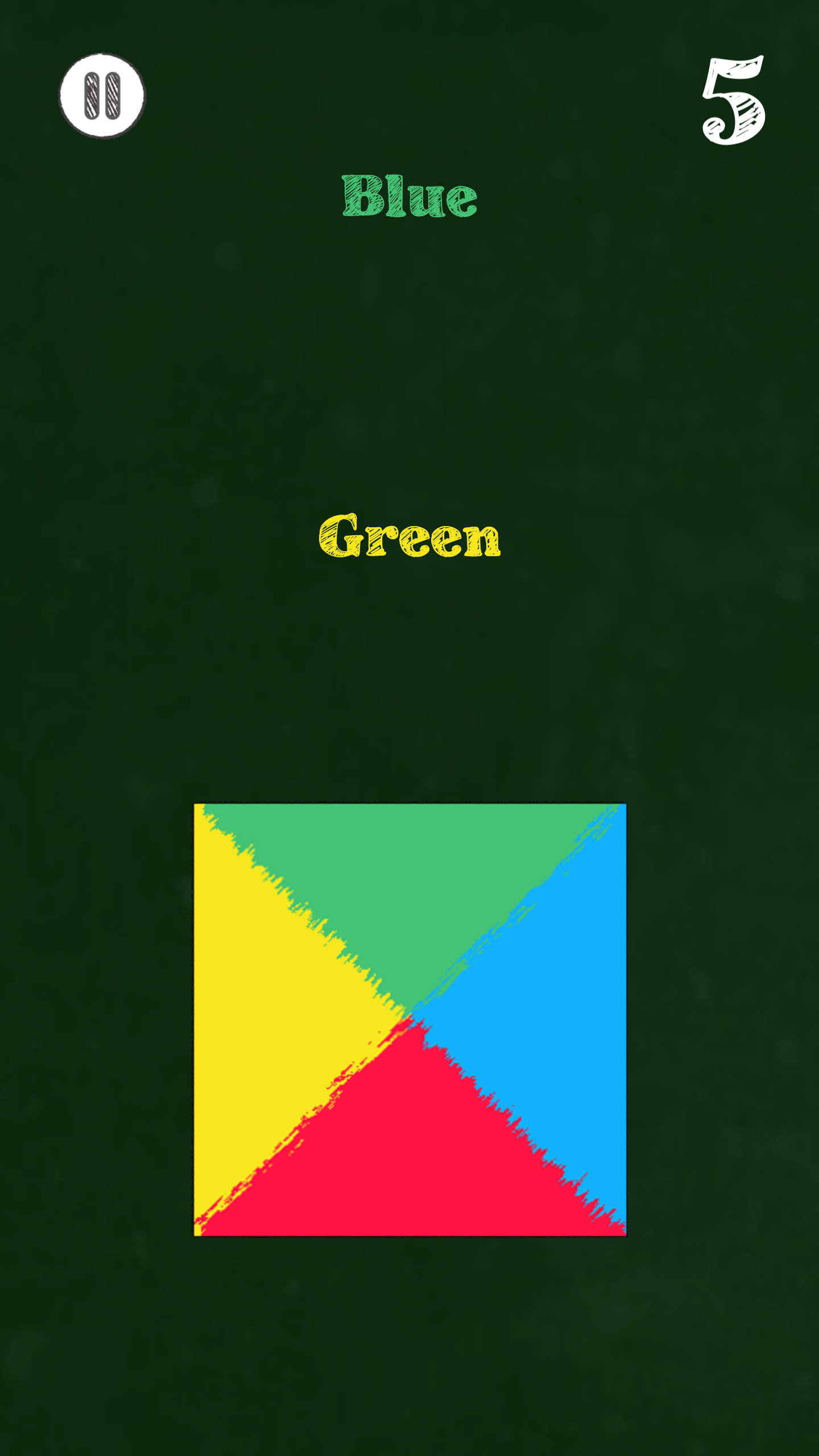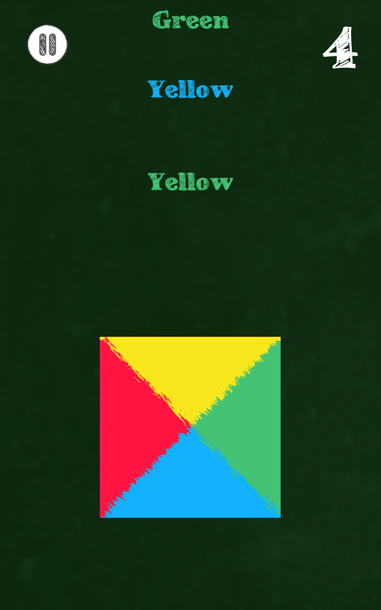 In dem Spiel Farben im Gehirn haben wir zwei verschiedene Stroop-Puzzles geschaffen, um Spieler herauszufordern. In der Herausforderung, die wir "Rechtes Gehirn" genannt haben, ist es das Ziel, fallende farbige Wörter in die entsprechende Farbe auf einem Formobjekt unten hinzubringen. Der Spieler muss die richtige Farbe auf dem Formobjekt antippen, um es korrekt auf die Farbe des von oben fallenden Wortes auszurichten. Allerdings gibt es ein paar Wendungen! Für den Anfang gibt es eine begrenzte Zeit, um die Form richtig auszurichten, und diese verringert sich nach jedem erfolgreichen „Fangen“ eines Wortes. Zweitens sind die Worte von oben nicht nur verschiedene Farben, sondern auch die Namen der verschiedenen Farben, die mit der tatsächlichen Farbe des Wortes übereinstimmen oder nicht.