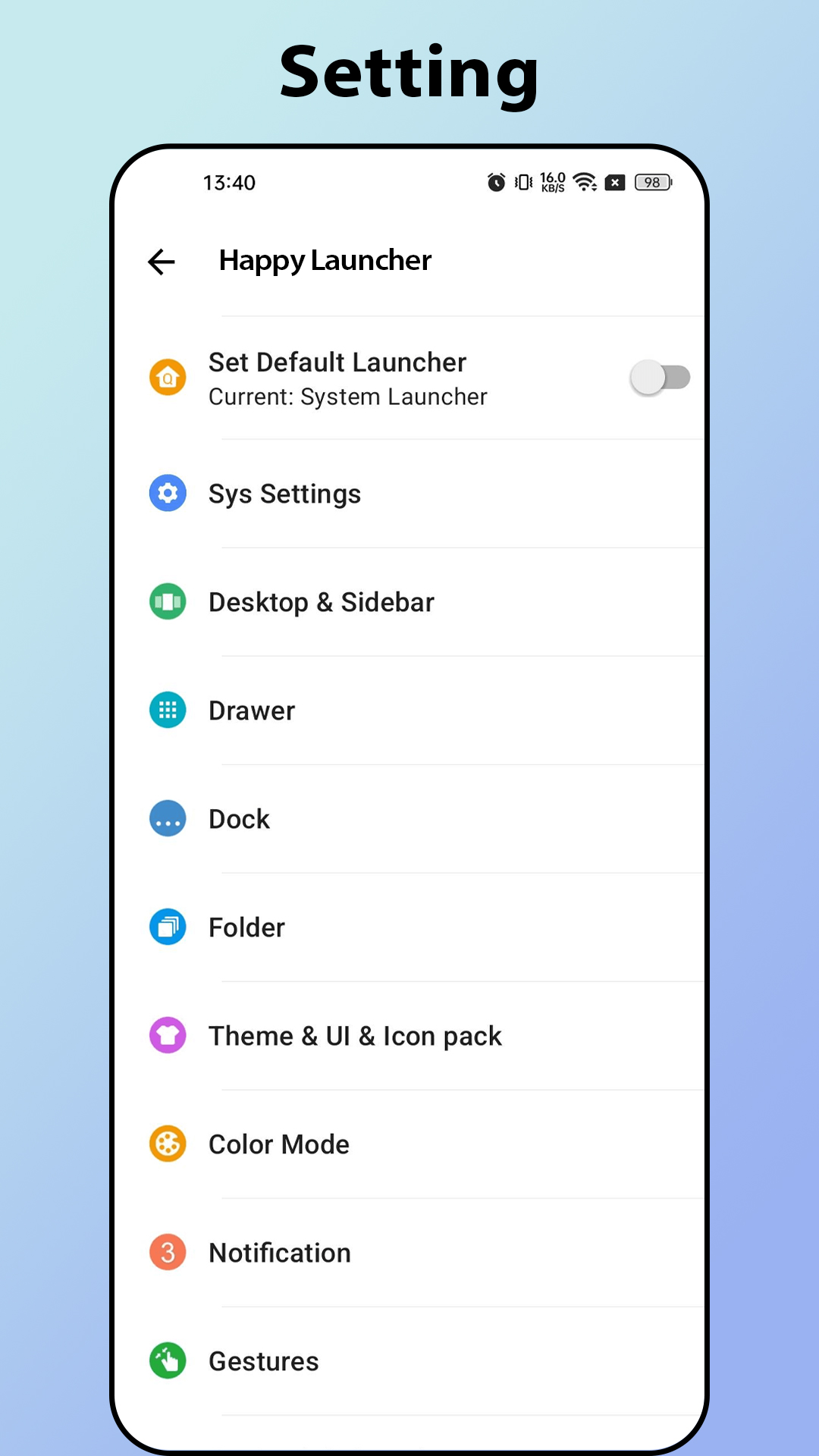 v10.4 1. Optimized the default search bar 2. Fixed the issue in changing the icon shape 3. Added multiple finger effects 4. Optimized the sidebar design 5. Optimized the home screen widget