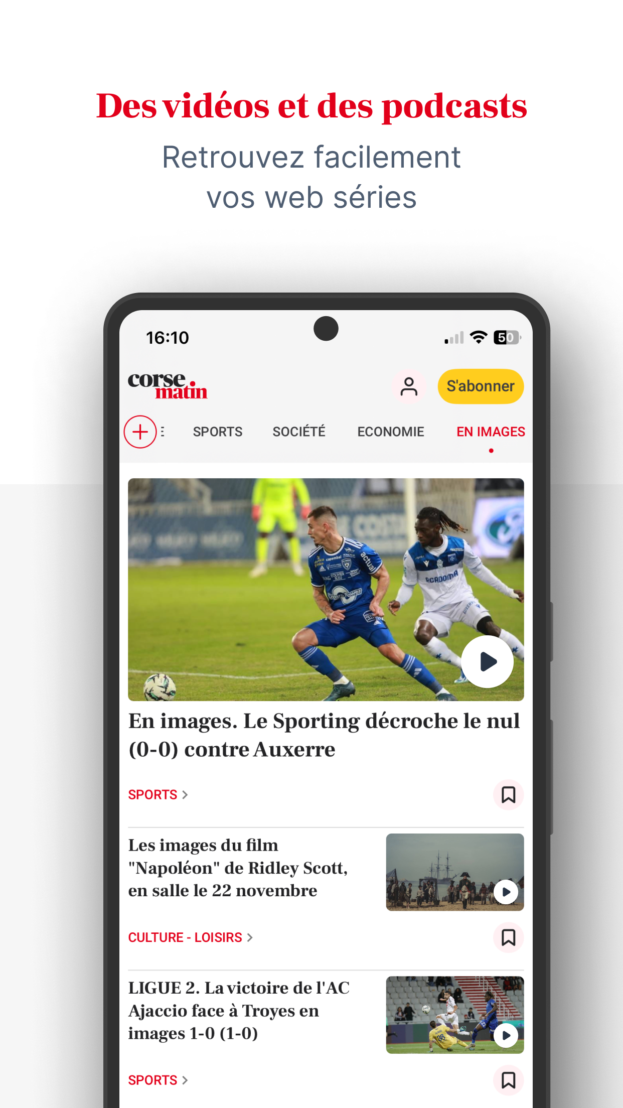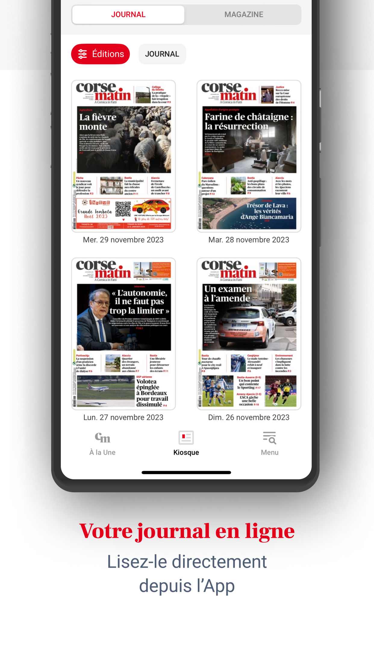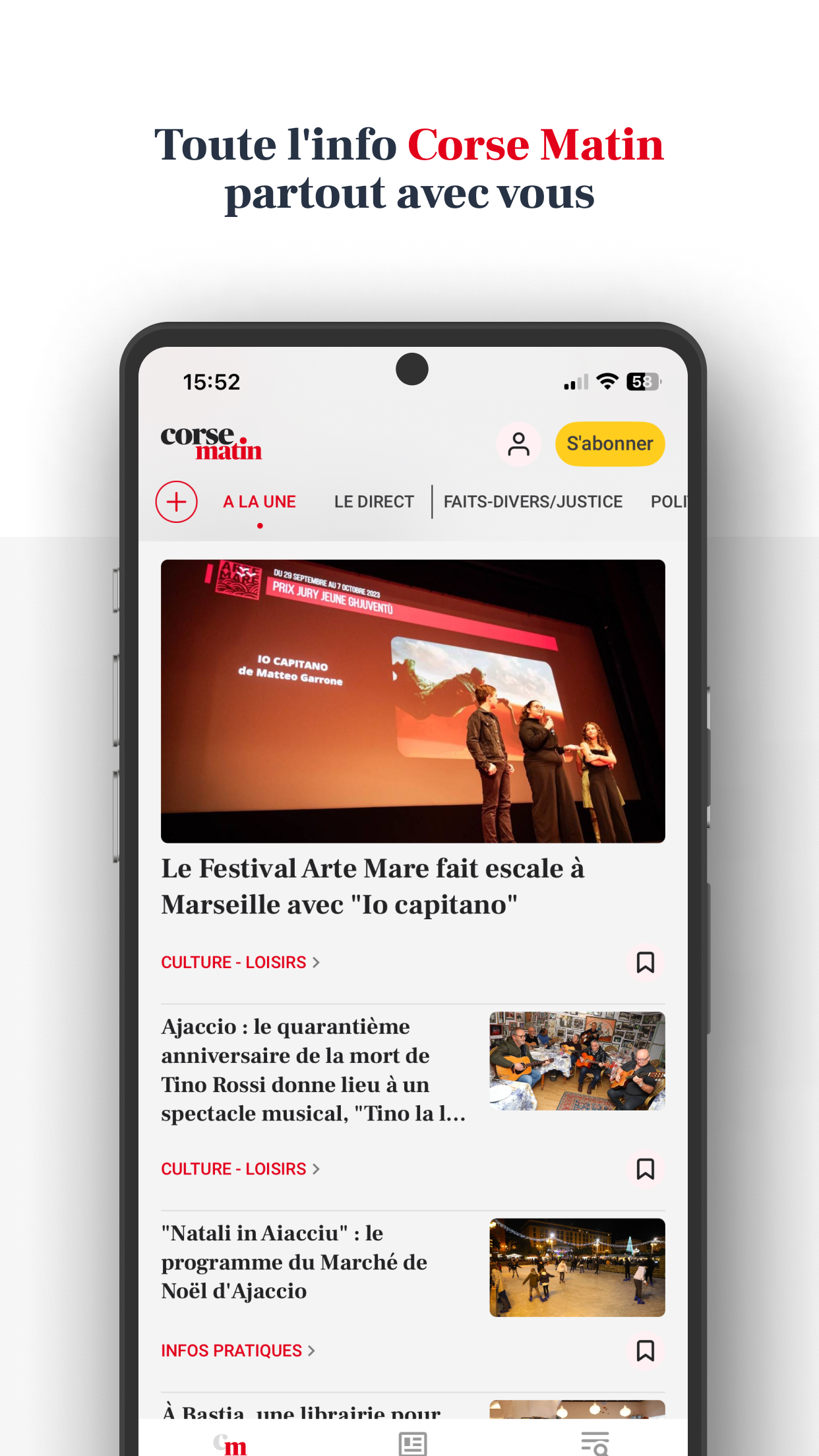 Laden Sie noch heute die neue Corse Matin-App herunter und verpassen Sie nie wieder die Informationen, die Ihnen wichtig sind. Bleiben Sie mit der Corse Matin-Anwendung über Nachrichten aus Korsika auf dem Laufenden und genießen Sie ein interaktives und einzigartiges Leseerlebnis, wo immer Sie sind. Seien Sie immer über die neuesten Nachrichten aus der Region informiert, von aktuellen Ereignissen bis hin zu Sportereignissen, einschließlich Politik, Kultur und Wirtschaft. - Profitieren Sie von einem 100 % digitalen Erlebnis mit der neuen Version unserer Corse Matin-Anwendung: - Verfolgen Sie alle Nachrichten von unserer Insel, aber auch nationale Informationen, unsere Sicht auf die Welt, Live-Sport, Live-Nachrichten von AC Ajaccio, SC Bastia und OM. - Greifen Sie auf unsere thematischen Dateien zu: Inflation, der Krieg in der Ukraine und im Nahen Osten, die Olympischen Spiele 2024 in Paris, die bemerkenswertesten Prozesse und Nachrichten, die Persönlichkeiten der Gegenwart. - Entdecken Sie unsere neuen digitalen Formate: Podcasts, Fotogalerien und Videos, um die Highlights Ihrer Region zu erleben und noch einmal zu erleben. - Personalisieren Sie Ihr Erlebnis, indem Sie Ihre Lieblingsabschnitte auswählen und Ihre Artikel speichern, um sie später zu lesen. - Corse Matin steht Ihnen zur Verfügung: Entdecken Sie unsere Kleinanzeigen, Kinonachrichten, Freizeit- und Ausflugsempfehlungen, Online-Spiele: Sudoku, Kreuzworträtsel usw. - Teilen Sie Fotos und Videos Ihrer Veranstaltung und beteiligen Sie sich durch Kommentare an bereichernden Diskussionen. Wenn Sie unsere unverbindlichen digitalen Angebote abonnieren, erhalten Sie Zugriff auf Corse Matin Premium und: - Genießen Sie Ihre Zeitung in digitaler Version ab 5 Uhr morgens, - Lesen Sie alle kostenlosen und kostenpflichtigen Artikel, - Lesekomfort ist konkurrenzlos und ohne Werbung - Profitieren Sie von vielen Vorteilen unseres Vereins und unserer Wettbewerbe. - Gewinnen Sie zahlreiche Geschenke mit Corse Matin.
