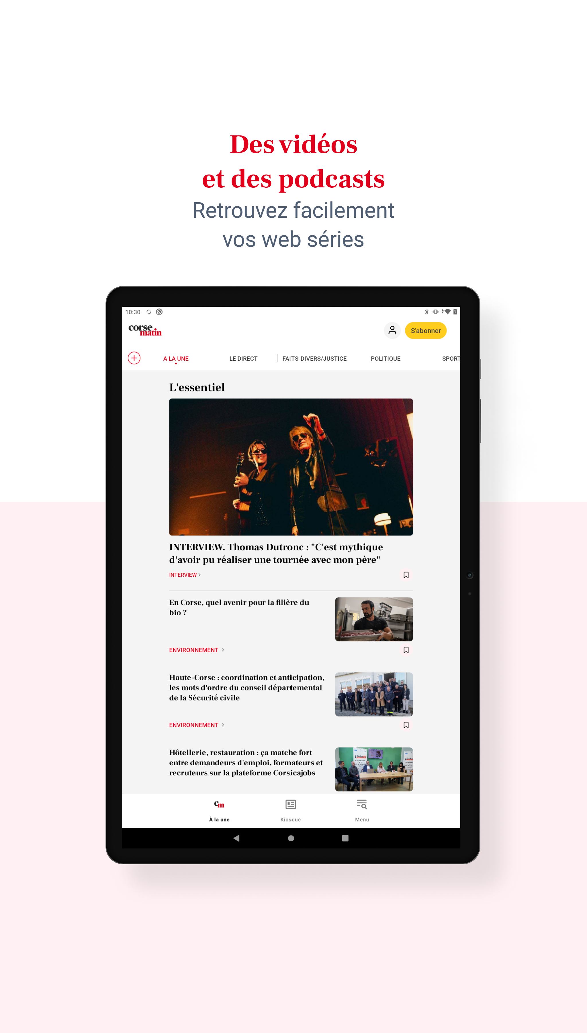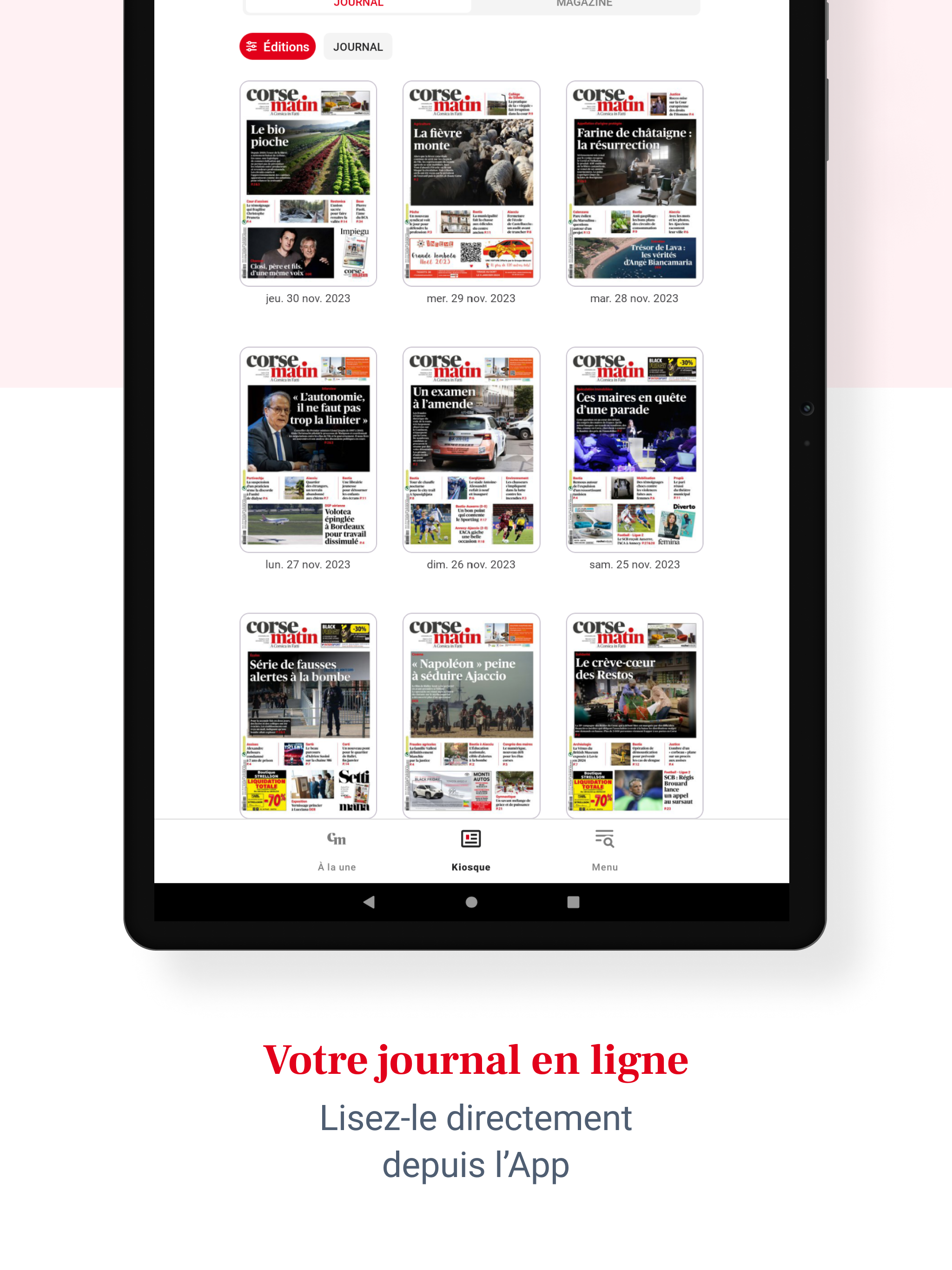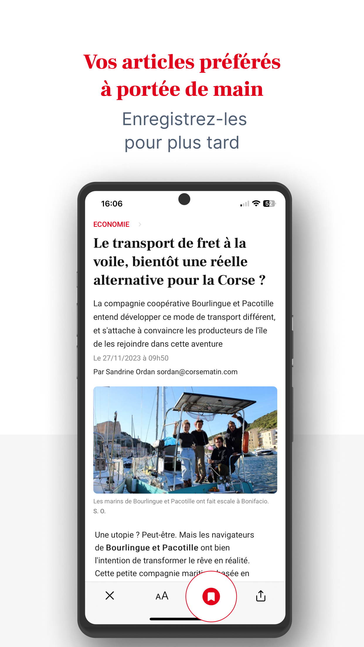 Laden Sie noch heute die neue Corse Matin-App herunter und verpassen Sie nie wieder die Informationen, die Ihnen wichtig sind. Bleiben Sie mit der Corse Matin-Anwendung über Nachrichten aus Korsika auf dem Laufenden und genießen Sie ein interaktives und einzigartiges Leseerlebnis, wo immer Sie sind. Seien Sie immer über die neuesten Nachrichten aus der Region informiert, von aktuellen Ereignissen bis hin zu Sportereignissen, einschließlich Politik, Kultur und Wirtschaft. - Profitieren Sie von einem 100 % digitalen Erlebnis mit der neuen Version unserer Corse Matin-Anwendung: - Verfolgen Sie alle Nachrichten von unserer Insel, aber auch nationale Informationen, unsere Sicht auf die Welt, Live-Sport, Live-Nachrichten von AC Ajaccio, SC Bastia und OM. - Greifen Sie auf unsere thematischen Dateien zu: Inflation, der Krieg in der Ukraine und im Nahen Osten, die Olympischen Spiele 2024 in Paris, die bemerkenswertesten Prozesse und Nachrichten, die Persönlichkeiten der Gegenwart. - Entdecken Sie unsere neuen digitalen Formate: Podcasts, Fotogalerien und Videos, um die Highlights Ihrer Region zu erleben und noch einmal zu erleben. - Personalisieren Sie Ihr Erlebnis, indem Sie Ihre Lieblingsabschnitte auswählen und Ihre Artikel speichern, um sie später zu lesen. - Corse Matin steht Ihnen zur Verfügung: Entdecken Sie unsere Kleinanzeigen, Kinonachrichten, Freizeit- und Ausflugsempfehlungen, Online-Spiele: Sudoku, Kreuzworträtsel usw. - Teilen Sie Fotos und Videos Ihrer Veranstaltung und beteiligen Sie sich durch Kommentare an bereichernden Diskussionen. Wenn Sie unsere unverbindlichen digitalen Angebote abonnieren, erhalten Sie Zugriff auf Corse Matin Premium und: - Genießen Sie Ihre Zeitung in digitaler Version ab 5 Uhr morgens, - Lesen Sie alle kostenlosen und kostenpflichtigen Artikel, - Lesekomfort ist konkurrenzlos und ohne Werbung - Profitieren Sie von vielen Vorteilen unseres Vereins und unserer Wettbewerbe. - Gewinnen Sie zahlreiche Geschenke mit Corse Matin.