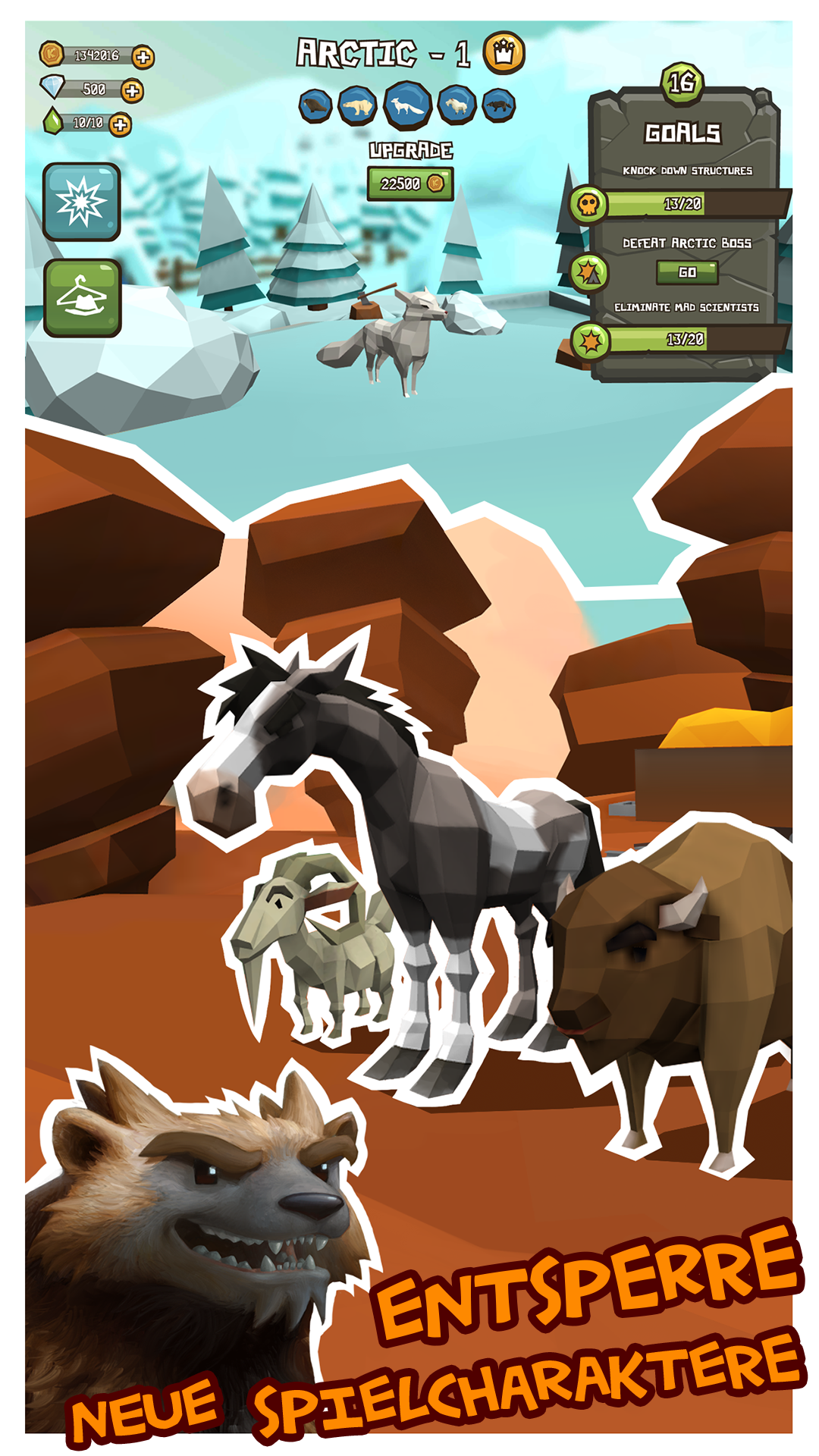Crashing Season kann kostenlos heruntergeladen und gespielt werden. Allerdings stehen optionale In-App-Einkäufe zur Verfügung. Sei in jedem Fall dazu bereit, die Tiere in ihrem Streben nach der Weltherrschaft zu unterstützen!