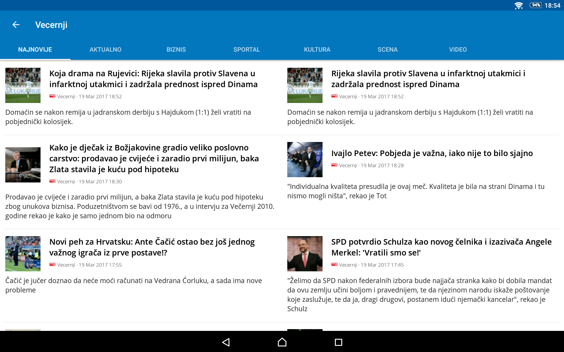 Funktionen:- Abdeckung von lokalen und weltweiten Nachrichten: Greifen Sie auf eine breite Palette von Nachrichtenkategorien zu, von kroatischer Politik und lokaler Wirtschaft bis hin zu internationalem Sport, Kultur und globalen Ereignissen.