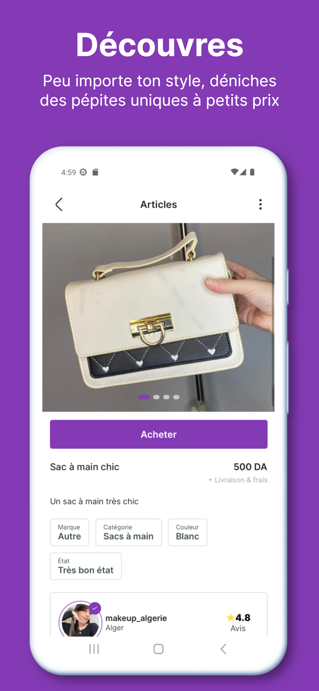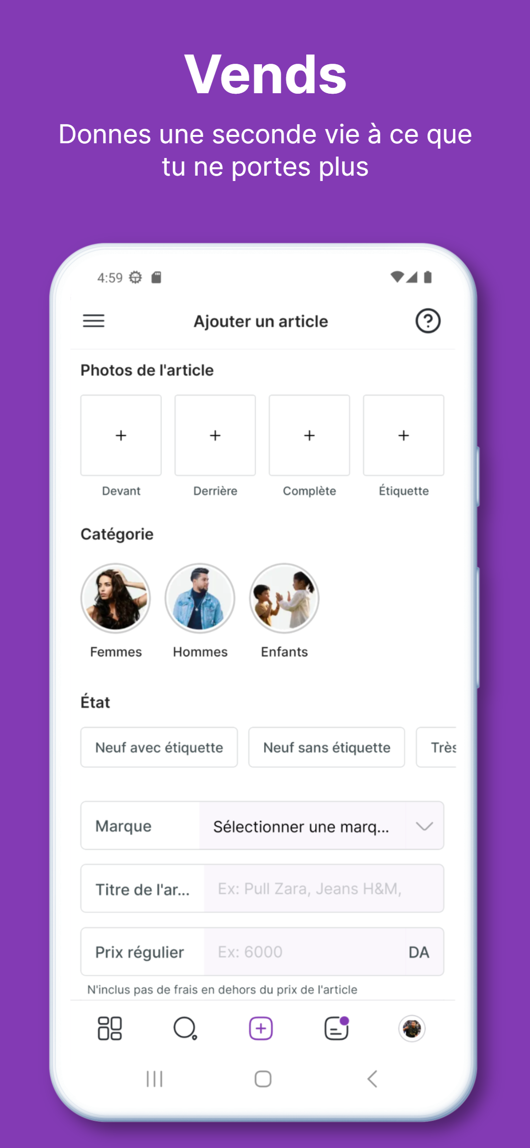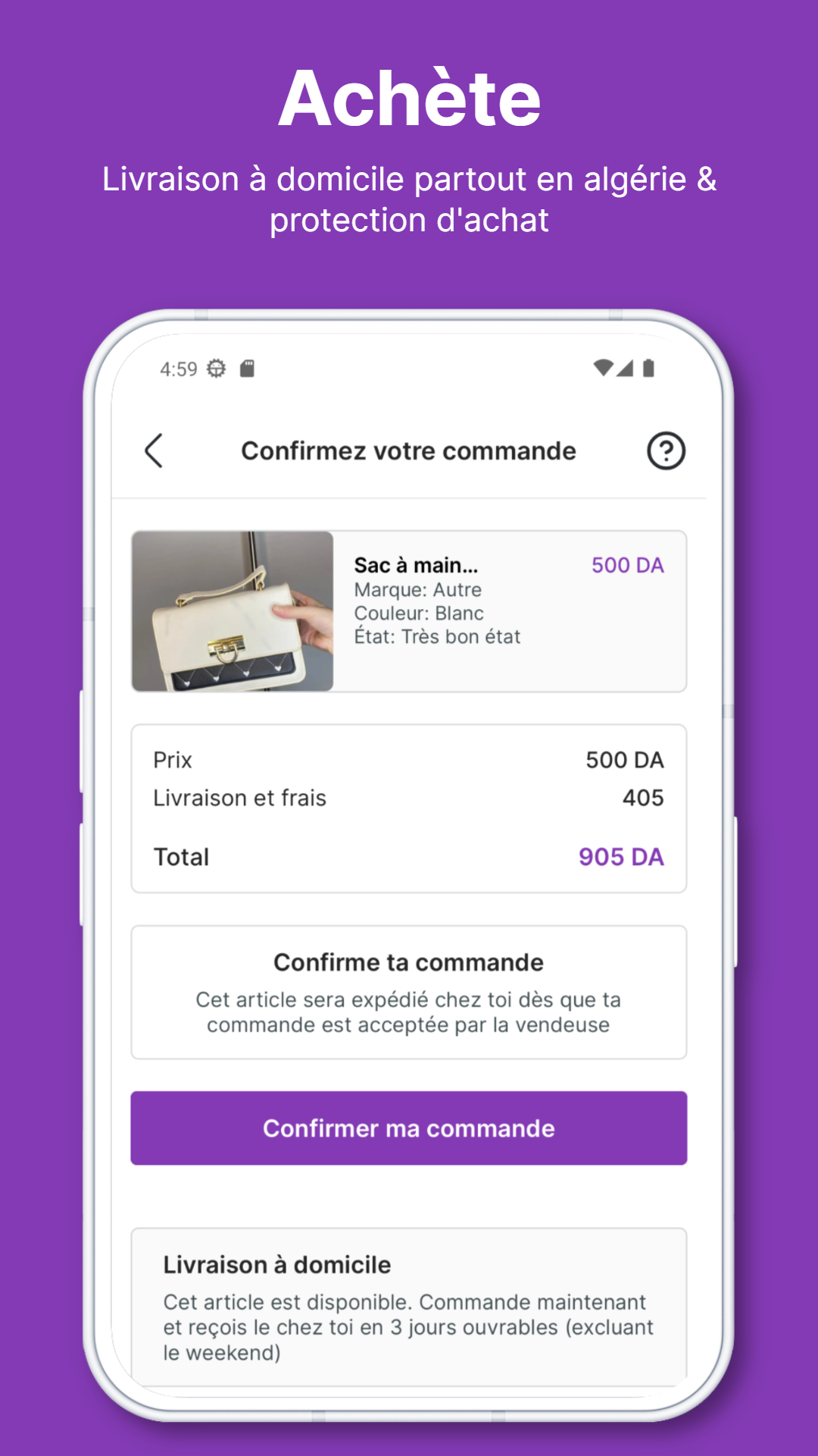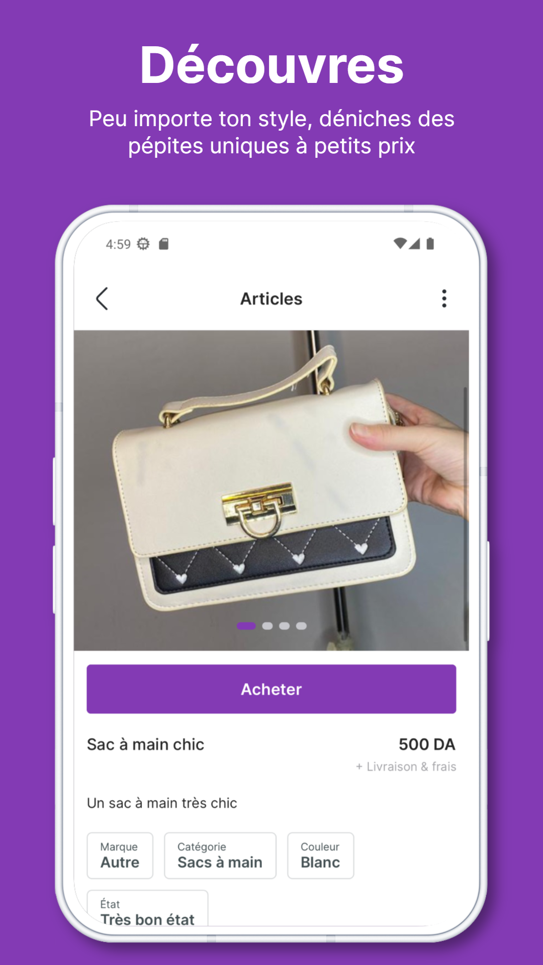 Verkaufen. Gekauft. Fang nochmal an. Wir sammeln, liefern und zahlen Ihr Geld direkt über die App auf Ihr Konto ein. Dirideal ist mehr als eine App zum Leeren von Schränken. Es ist eine Gemeinschaft von Modeliebhabern, die die Welt Stück für Stück verändern. Verkaufen Sie, was Sie nicht mehr tragen: Geben Sie dem, was Sie nicht mehr tragen, ein zweites Leben und machen Sie jemandem in der Gemeinschaft eine Freude. Sie müssen nicht einmal reisen, um zu verkaufen. Wir holen und liefern überall in Algerien und bezahlen Sie schnell direkt über die App. Kaufen Sie sicher: Finden Sie Ihr Angebot und erhalten Sie Ihr Paket zu Hause, überall in Algerien (58 Wilayas). Bezahlen Sie per Nachnahme und profitieren Sie von unserer Geld-zurück-Garantie bei Problemen mit Ihrer Bestellung. Fangen Sie noch einmal von vorne an: Wechseln Sie Ihre Kleidung, verdienen Sie Geld und aktualisieren Sie Ihre Garderobe, ohne Ihr Budget zu sprengen. Indem Sie Dirideal beitreten, werden Sie einer Gemeinschaft beitreten, die die Zukunft der Mode in Algerien Stück für Stück verändert, für eine Kreislaufwirtschaft, die gut für den Geldbeutel und den Planeten ist. Eine engagierte Gemeinschaft: Was uns zum Marktplatz Nummer 1 in Algerien macht, ist eine Gemeinschaft engagierter Öko-Modeliebhaber, die uns jeden Tag dazu drängen, unsere Grenzen zu überschreiten, für umweltfreundlichere, nachhaltigere und ethischere Mode. Wie verkauft man? Fügen Sie Ihren Artikel mit nur wenigen Klicks über die App hinzu: Laden Sie die App herunter, machen Sie schöne Fotos, fügen Sie die Details Ihres Artikels hinzu, legen Sie einen attraktiven Preis fest und fertig. Machen Sie Verkäufe, wir liefern: Machen Sie Verkäufe, bereiten Sie Ihr Paket vor, wir holen Ihren Artikel bei Ihnen zu Hause ab und liefern ihn an die Türen Ihrer Kunden, überall in Algerien. Erhalten Sie Ihr Geld schnell, direkt über die App: Sobald die Lieferung bestätigt ist, wird Ihr Geld in Ihrem Dirideal-Wallet hinterlegt. Sie können es mit wenigen Klicks auf ein Bank- oder CCP-Konto überweisen. Worauf warten Sie noch, um sich der Bewegung anzuschließen? Laden Sie die App herunter und schließen Sie sich jetzt Ihren Freunden an!