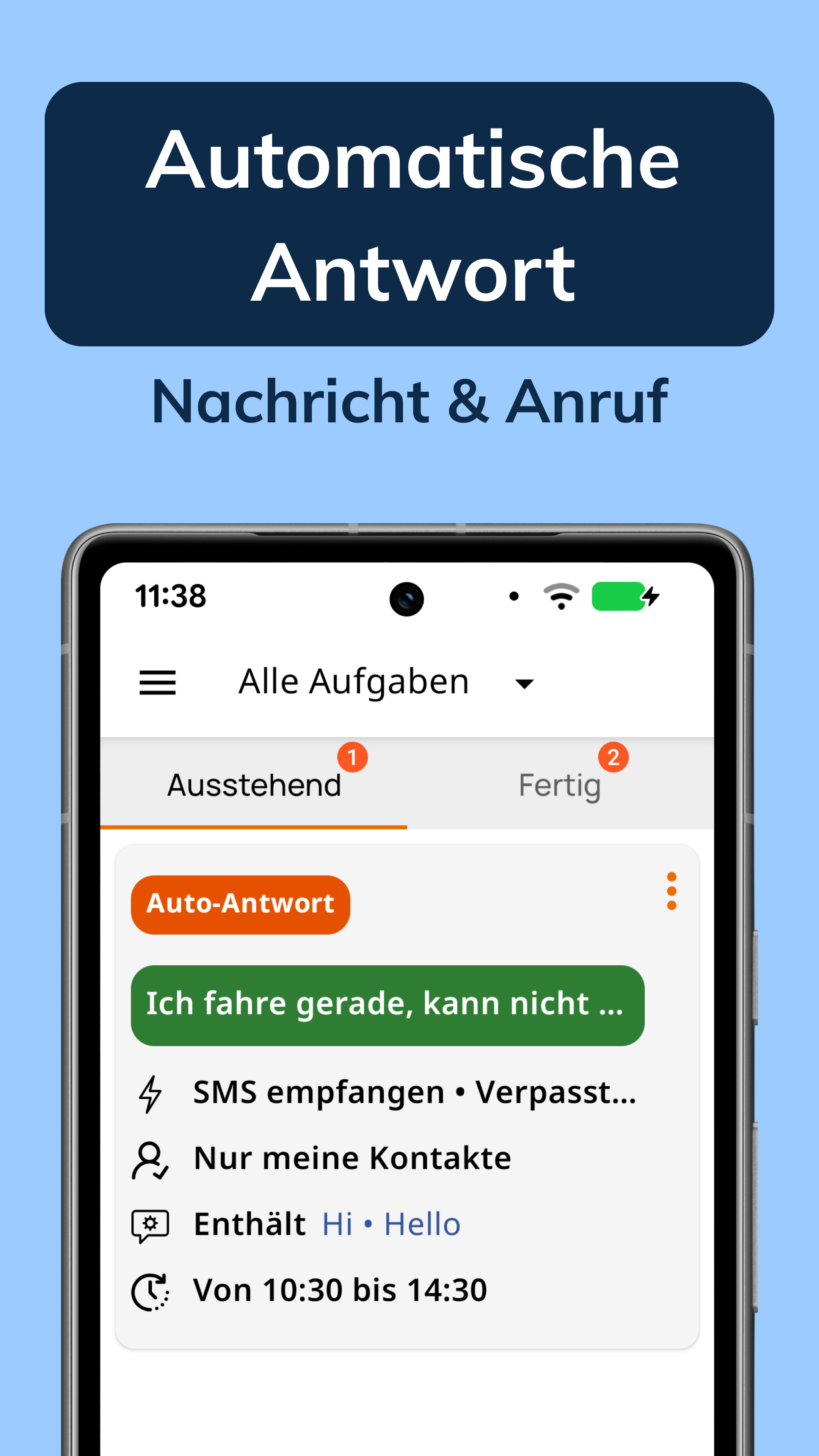Intelligente Auto-Antwort- Antworten Sie sofort auf eingehende Nachrichten auf WhatsApp, WhatsApp Business und SMS.