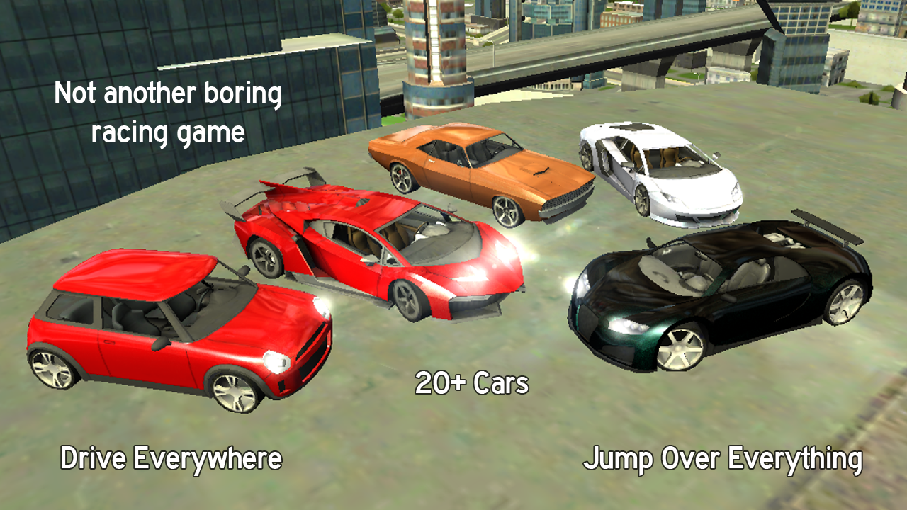 Drive everywhere. Jump over everything. Buildings, bridges, tunnels. Drive up high - very high. 50 stories up in the sky.