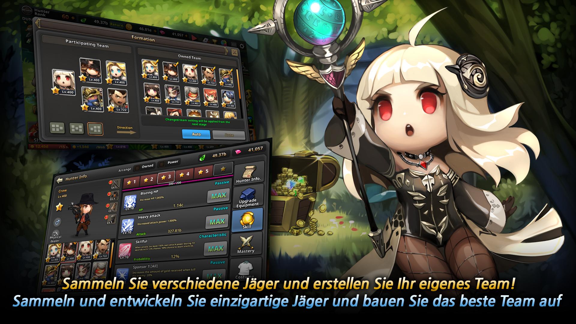 ★ Über das Spiel ★ Es ist eine Abenteuergeschichte über Jäger, die auf der Suche nach einer Königin sind, die von Monstern gefangengenommen wurde! Die Jäger entwickeln sich, handeln und brechen in zahlreiche Verliese selbstständig ein. Ihre Finger sind nur zur Unterstützung da! ★ Wichtige Funktionen ★ Es sind ein Paar Knopfdrücke notwendig, um am Spiel teilzunehmen! Sogar, wenn das Spiel nicht läuft, können Sie ein Verlies passieren! Wie gehen Sie vor? Globales Ranglistensystem! Nehmen Sie sich Zeit um Ihren Teammitglieder Positionen zuzuordnen! Dies wirkt sich auf den Ausgang der Schlacht aus. Jagen Sie große Häuptlinge in speziellen täglichen Verliesen, sammeln Sie Ausrüstung und Ausrüstungsmaterialien, um Ihren Jäger zu stärken! Treten Sie gegen andere Spieler in der Arena an, um der weltweit beste Jäger zu werden! [Gemeinschaft] https://www.facebook.com//LinkTown/ ★ Unterstützte Sprachen ★ English, 简体中文, 繁體中文, 한국어, Français, Deutsch, Italiano, Español, Português, ไทย, Bahasa Indonesia- melayu, tiếng Việt, 日本語, русский, العربية Verkauf der Werbung und App-Produkten im Spiel. Wenn Sie Fragen zum Spiel haben, dann senden Sie diese an uns direkt am Spielbrett oder per E-Mail und wir werden Ihnen so schnell wie möglich antworten. Beachten Sie, dass die Daten nach dem Entfernen des Spiels gelöscht werden. Gelöschte Daten können nicht wiederhergestellt werden. The installation requires the following permissions: Save (READ_EXTERNAL_STORAGE, WRITE_EXTERNAL_STORAGE) - Used to preserve and verify the player's unique information.
