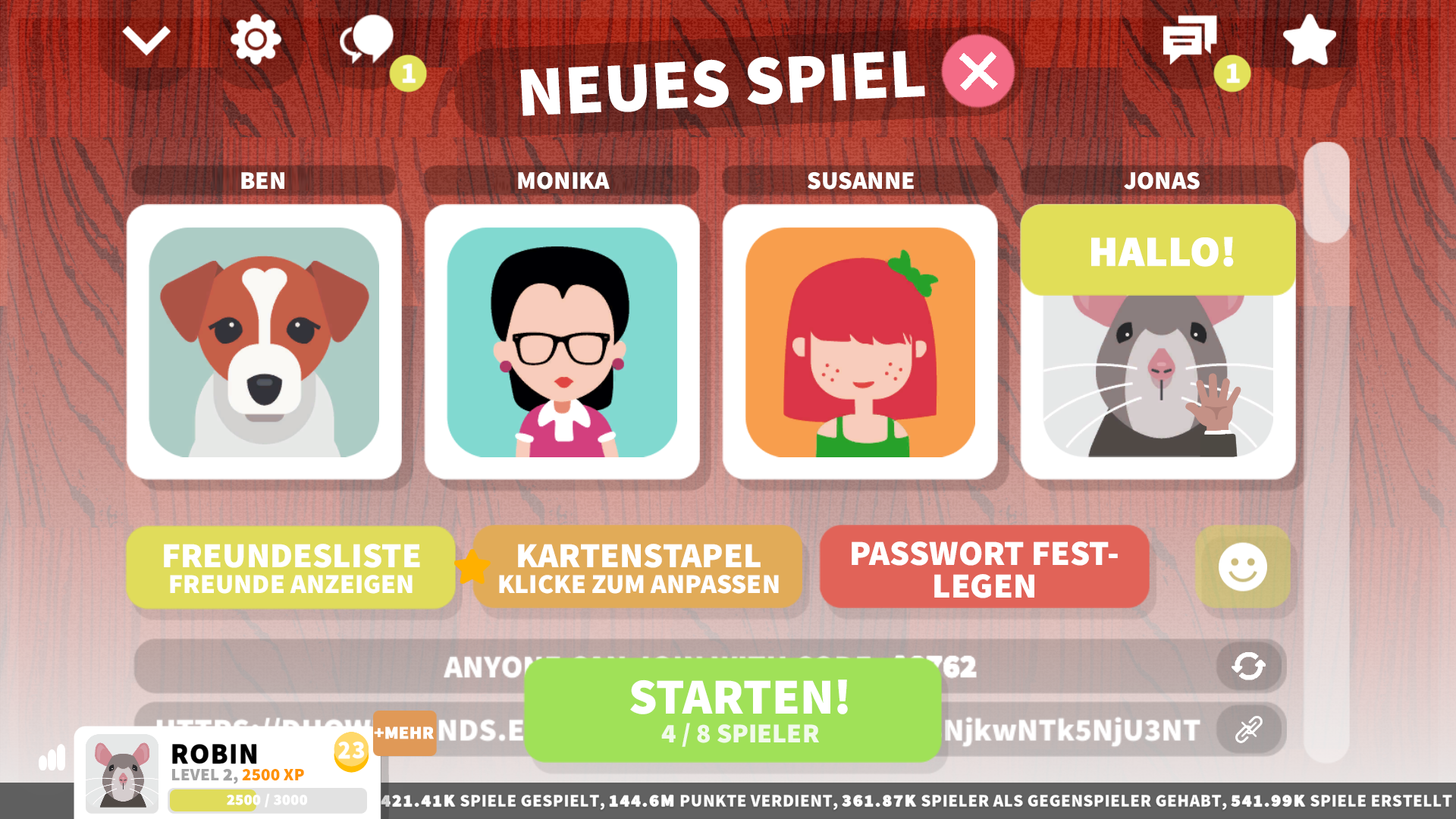 Duo With Friends (Paketname: eu.Robinko.uno) wird von Wobin entwickelt und die neueste Version von DUO Freunden - UNO Kartenspiel 2.5 wurde am 13. April 2022 aktualisiert. DUO Freunden - UNO Kartenspiel liegt in der Kategorie von Kartenspiele. Sie können alle Apps von dem Entwickler der DUO Freunden - UNO Kartenspiel durchsuchen. Derzeit ist diese APP kostenlos. Diese App kann auf Android 5.1+ auf APKFab oder Google Play heruntergeladen werden. Alle APK/XAPK Dateien auf APKFab.com sind original und 100% sicher, schnell herunterzuladen.
