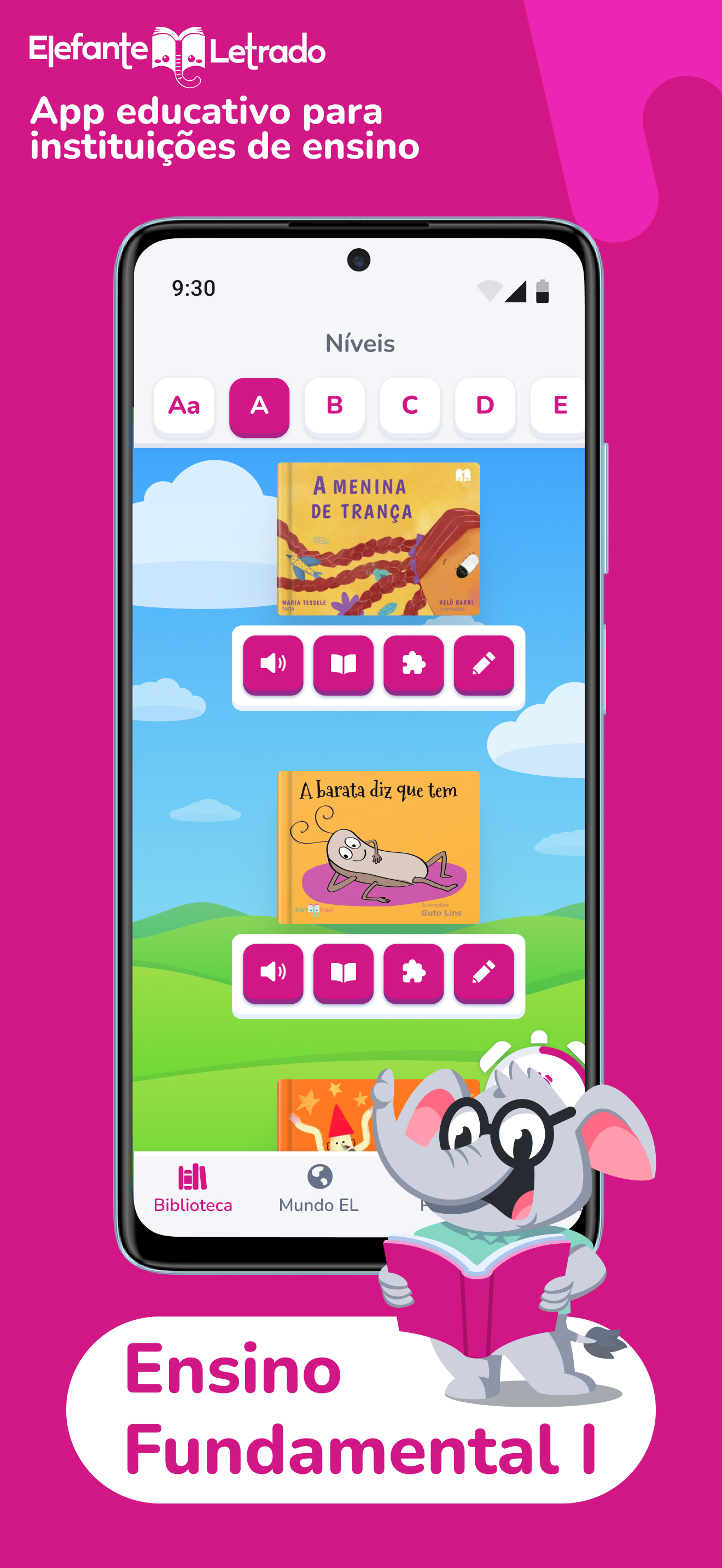 Elefante Letrado – App für Schülerinnen und Schüler an teilnehmenden Schulen Diese App ermöglicht Schülerinnen und Schülern an Partnerschulen den Zugriff auf die Elefante Letrado-Plattform über Mobiltelefon oder Tablet. Sie bietet dieselben Funktionen wie die Webversion. Elefante Letrado ist eine digitale Plattform, die seit 2013 von Schulen genutzt wird, um das Lesen zu fördern und das Leseverständnis von Schülerinnen und Schülern vom Kindergarten bis zur Oberstufe zu verbessern. Mit einer vielfältigen und sorgfältig ausgewählten Sammlung, darunter Hunderte von Büchern verschiedener Genres, sortiert nach Leistungsstufen, bietet die Plattform ein personalisiertes Erlebnis. Wichtig: Der Zugriff auf die App ist ausschließlich Schülern von Schulen vorbehalten, die die Elefante Letrado-Plattform abonnieren und über einen von der Schule oder dem Netzwerk bereitgestellten Login verfügen.