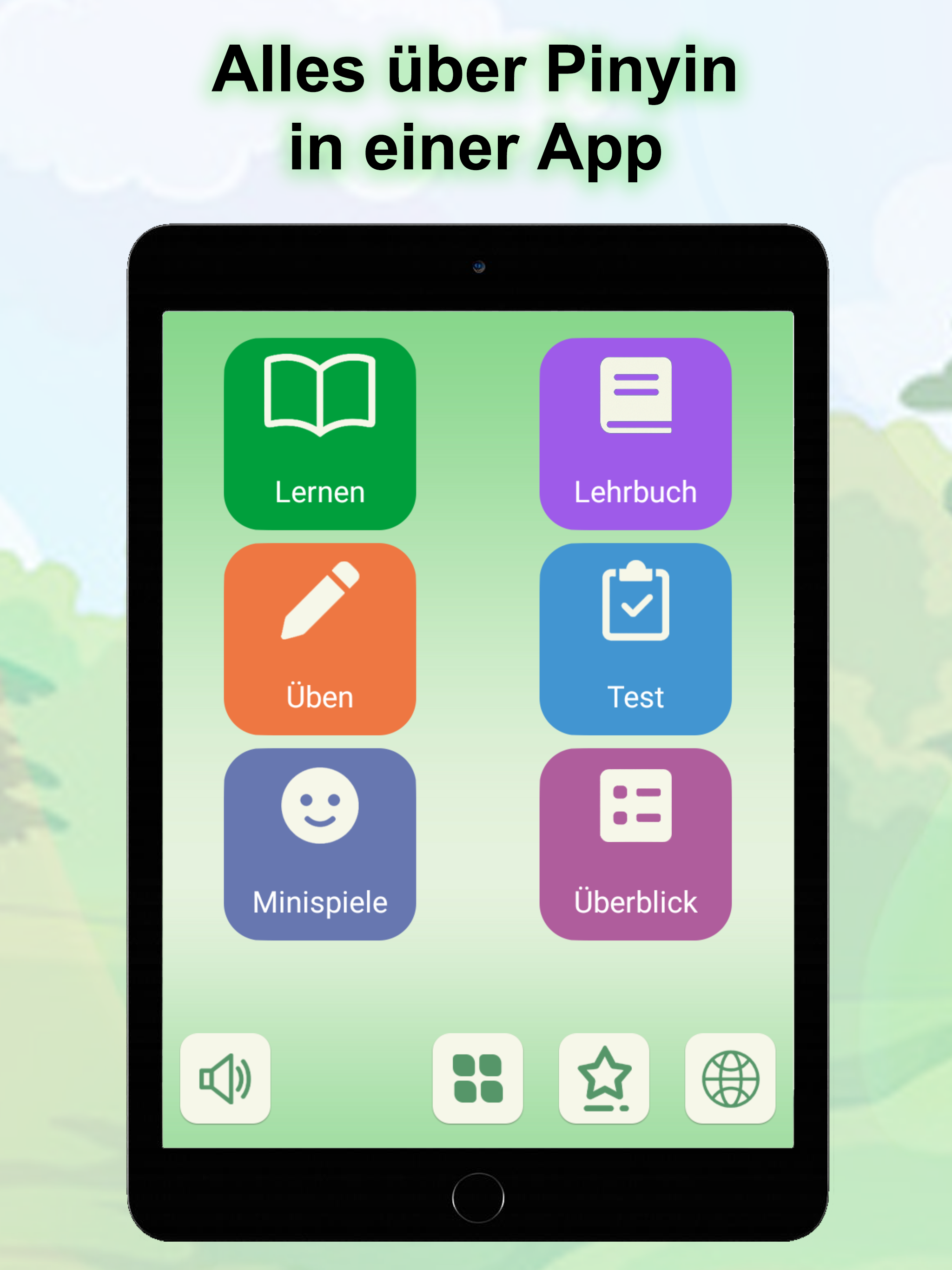 Pinyin lernen und Chinesisch leicht beherrschen Dieses Lernwerkzeug wurde entwickelt, um Menschen jeden Alters beim systematischen Erlernen von Pinyin und grundlegenden chinesischen Schriftzeichen zu unterstützen. Durch Ausspracheübungen, Schreibtraining, Leseförderung und interaktive Spiele wird Lernen spielerisch, effektiv und nachhaltig gestaltet. Es fördert die fünf Kernkompetenzen – Hören, Sprechen, Lesen, Schreiben und Zeichenverständnis – und begleitet Lernende vom ersten Laut bis hin zum flüssigen Lesen chinesischer Wörter. Ideal für Vorschulkinder, Grundschüler, Selbstlernende sowie Deutschsprachige, die Chinesisch als Fremdsprache erlernen möchten. Hauptfunktionen 🔤 Pinyin-Buchstaben lernen Beinhaltet alle Anlaute und Endungen mit klarer Aussprache und Beispielen. Animationen und Audios erleichtern das Verständnis der Lautstruktur. ✍️ Pinyin-Schreibtraining Zeigt die richtige Strichreihenfolge mit Nachzeichnungs- und Freihandoptionen. Fördert Schriftverständnis und Feinmotorik. 🔊 Ausspracheübungen Standardaussprache mit Aufnahme- und Vergleichsfunktion. Ideal zur Selbstkorrektur und zur Verbesserung der Sprachklarheit. 🧠 Pinyin-Kartenpaare Spielerisches Zuordnen von Lauten, Buchstaben und Bildern. Unterstützt visuelles und auditives Lernen, besonders für Kinder. 📚 Wortlesetraining Übungen zum Lesen ein- und mehrsilbiger Wörter. Steigert Leseflüssigkeit und erweitert den Wortschatz. 🀄 Schriftzeichen erkennen und zuordnen Pinyin und chinesische Schriftzeichen werden verbunden, um Klang, Bedeutung und Form gemeinsam zu verinnerlichen. 📖 Pinyin-Tafeln und Poster Grafische Übersicht zu Lautklassen, Tonregeln und Kombinationen – ideal zum Wiederholen und Festigen. 📘 Training zu mehrdeutigen Zeichen Spezielle Übungen zu Zeichen mit mehreren Lesungen in unterschiedlichen Kontexten. Fördert sprachliche Präzision. 🔍 Pinyin-Wörterbuch Suche nach Pinyin oder Schriftzeichen mit Bedeutung, Strichfolge, Beispielen und Audio. Unterstützt das autonome Lernen. 🎮 Lernspiele Tonrennen, Puzzle, Quiz – motivierende Mini-Games, die Lernfreude steigern. Für wen geeignet Kinder, die erste Erfahrungen mit chinesischer Phonetik machen Schüler der Grundschule beim Lesen- und Zeichenlernen Anfänger beim Lernen von Mandarin Eltern, die das Lernen zu Hause begleiten möchten Lehrer, Nachhilfelehrer, Förderkräfte Zweisprachige Kinder oder Schüler im Ausland Lernende zur Vorbereitung auf HSK und Lautübungen Warum dieses Lernmittel? 📌 Umfassende Abdeckung aller Pinyin-Themen Von einfachen Lauten bis zu mehrdeutigen Zeichen – strukturiert und vollständig. 📌 Vollständiger Lernprozess Hören, Sprechen, Lesen, Schreiben, Üben und Evaluieren in einer Lösung vereint. 📌 Interaktiv & motivierend Spielerische Methoden und Aufgaben sorgen für nachhaltige Lernerfolge. 📌 Flexibel einsetzbar Zu Hause, im Unterricht, in Nachhilfe oder im Selbststudium verwendbar. Besondere Merkmale Module für Lauterkennung, Schrift, Aussprache und Spiele Alle Inhalte von muttersprachlichen Sprechern vertont Visuell ansprechend, farbenfroh und kindgerecht gestaltet Fortschrittsanzeige & Lernziele integriert Unterstützt vereinfachte und traditionelle Schriftzeichen Intuitives Interface – geeignet für jedes Alter Lernergebnisse Mit dieser App können Nutzer: Alle Laute korrekt sprechen und schreiben Schriftzeichen sicher mit Lauten verknüpfen Wörter und Sätze flüssig lesen Strichreihenfolgen sicher anwenden Mehrdeutige Zeichen kontextabhängig unterscheiden Eigenmotivation im Lernen entwickeln Eine stabile Basis für weiterführendes Chinesisch schaffen Empfohlen für Eltern und Lehrkräfte Eltern können den Lernfortschritt begleiten, Übungen wiederholen und das Lernen zu Hause stärken. Lehrkräfte profitieren von interaktiven Inhalten für Unterrichtsergänzung, Hausaufgaben oder gezielte Förderung.