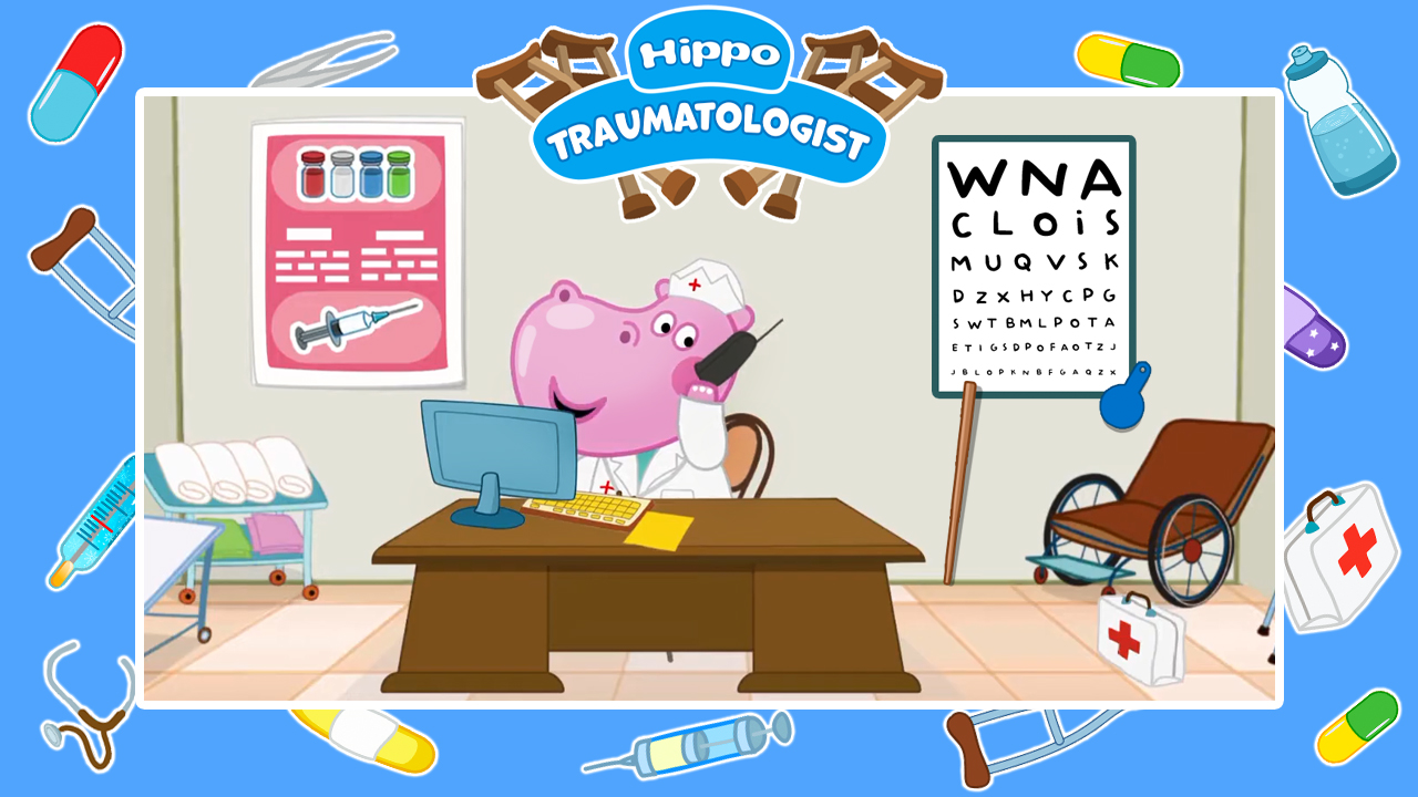 In unserem neuen Lernspiel über Hippo-Abenteuer wird ein Kleinkind zu einem echten Arzt. Es ist eine sehr wichtige Aufgabe, Kinder zu heilen. Dieses interaktive Spiel für Jungen und Mädchen im Alter von 3 bis 7 Jahren enthält eine ganze Reihe von Aufgaben im Zusammenhang mit Kinderspielen über Ärzte. Lade dieses Spiel herunter und genieße aufregende Abenteuer!
