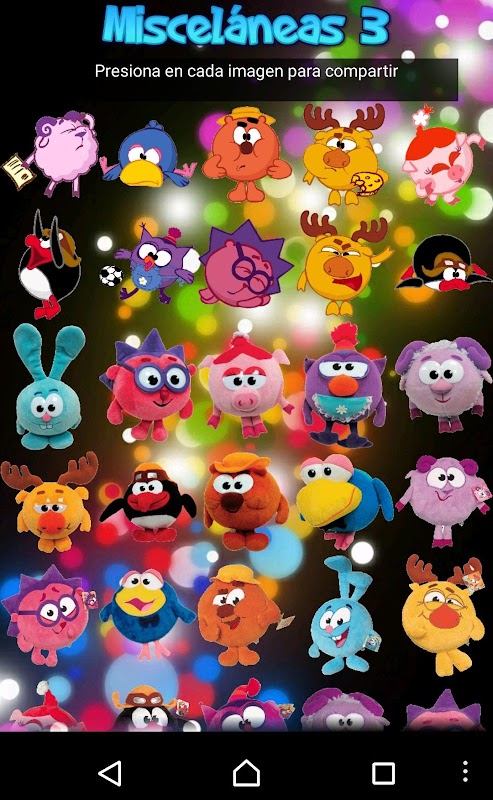 Los emoticones, stickers, pegatinas o simplemente imágenes de dibujos, hoy en día son muy populares sobretodo en los medios de comunicación virtuales como Whatsapp, Gtalk, Facebook, etc. Y en esta aplicación encontrarás muchas imágenes pequeñas o emoticones para poder expresar lo que sientes mientras chateas con los demás. Caritas tristes, enojadas, sorprendidas, dormilones, animalitos, soñolientas, tiernas, bonitas, y muchas otras expresiones más es lo que encontrarás en esta aplicación. Hemos clasiicado todos los stickers en por lo menos 7 diferentes categorías para una fácil navegación. Y compartir los emoticones en Whatsapp u otro medio que te permita tu móvil o celuar es muy sencilla, basta con presionar sobre la imagen para que se abra un menú y puedas compartirla a donde gustes. Esperamos que te sea de utilidad para hacer de tus conversaciones virtuales algo mucho más ameno y divertido.