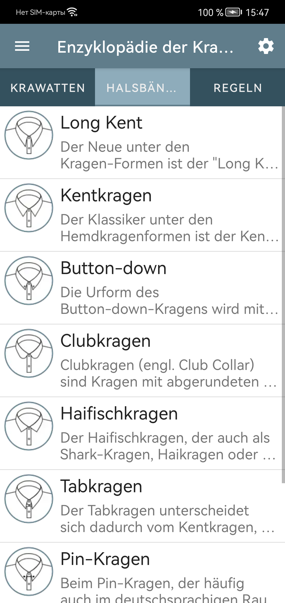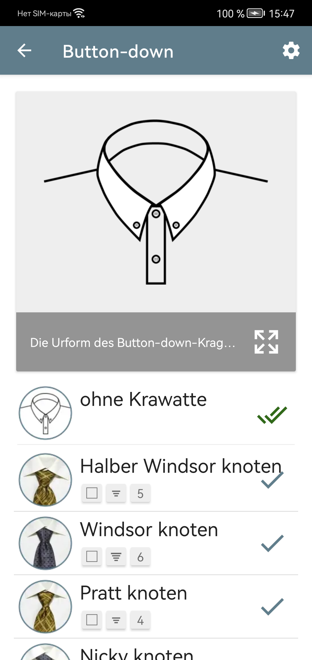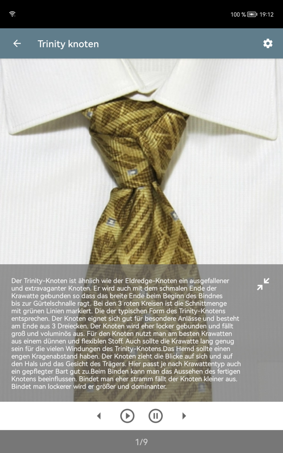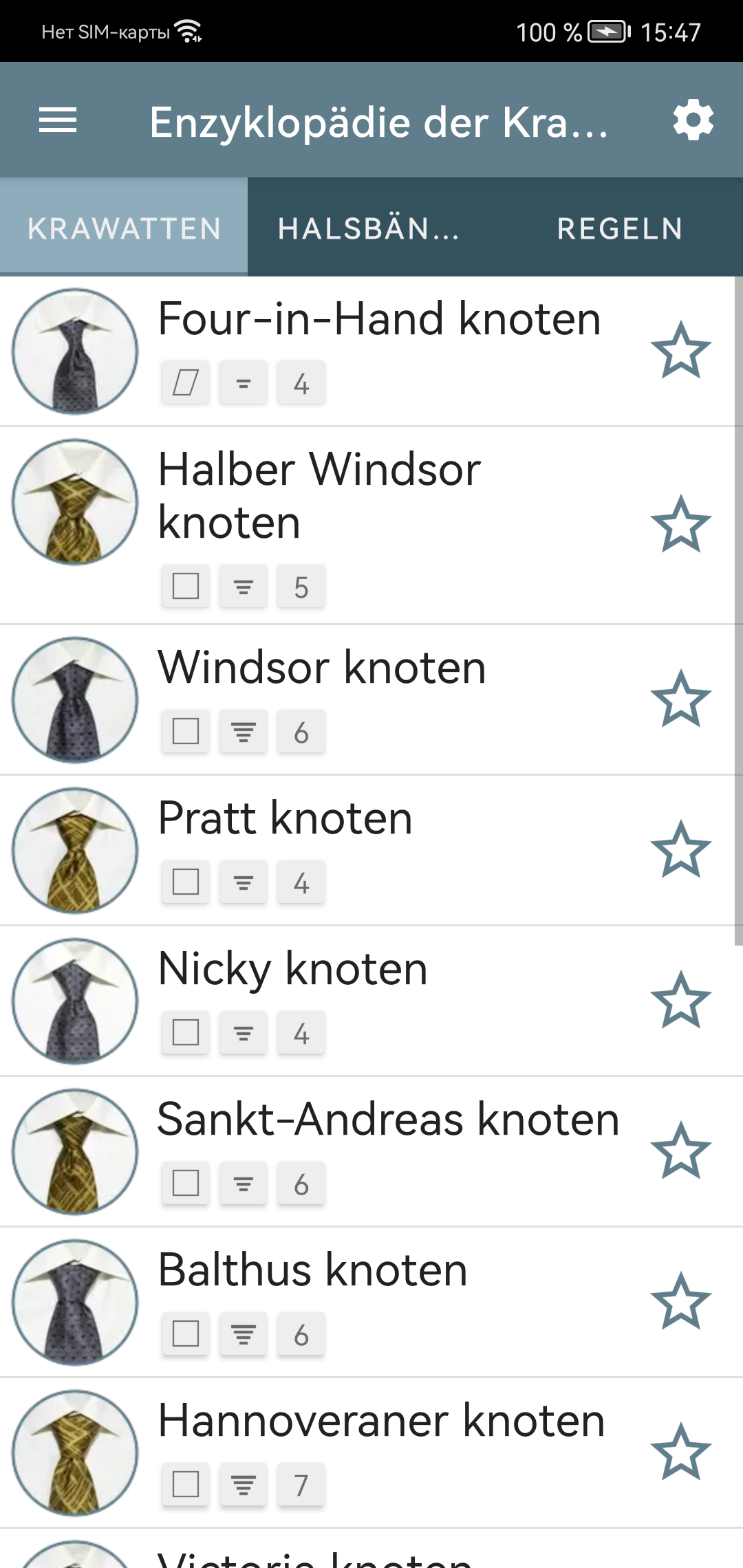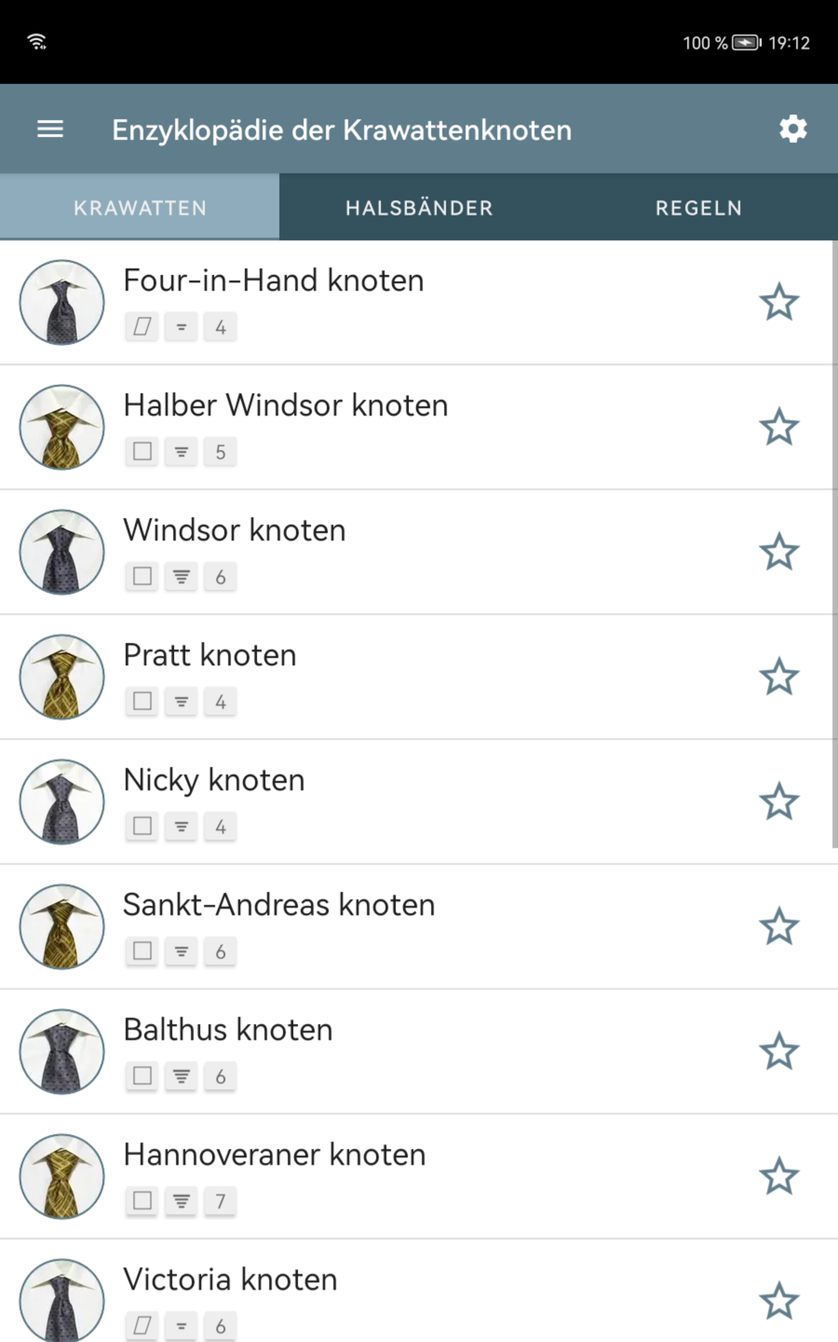 Sind Sie es leid, mit der Verbindung mit Ihrer Krawatte zu kämpfen? Egal, ob Sie eine einstjährige Urlaubsbalken sind oder jemand, der täglich eine Krawatte anzieht, oder sogar eine Frau, die die Eleganz eines gut gebundenen Knotens für ihren Mann schätzt, unsere Bewerbung ist hier, um zu helfen. Mit einfach zu befolgenden Schritt-für-Schritt-Anweisungen, begleitet von Fotos und Beschreibungen, stellt unsere App sicher, dass jeder die Kunst des Bindens einer Krawatte beherrschen kann. Anfänger können mit einfachen Knoten beginnen, während diejenigen, die Abwechslung suchen, erweiterte Optionen erkunden können. Aber das ist nicht alles. Unsere App geht über das Binden von Knoten hinaus. Es hilft Ihnen, den perfekten Krawattenknoten an Ihrem Hemdkragen zu entsprechen und zu raten, welche Kragenstile Ihre Gesichtsform ergänzen. Keine Vermutung mehr, wenn es darum geht, die richtige Krawatte für Ihren Anzug auszuwählen. Unsere App enthält wichtige Richtlinien für die perfekte Wahl. Hauptmerkmale: Illustrierte Richtlinien für die Auswahl und Tragen von Krawatten und Kragen. Detaillierte Beschreibungen von 9 Hemdkragentypen. Empfohlene Krawattenknoten für jeden Kragenart. Schritt-für-Schritt-Anweisungen für 16 verschiedene Knoten, die für jeden Anlass geeignet sind. Visuelle Hilfe durch Fotos von Krawattenknoten für eine einfachere Auswahl. Automatische Stufe Fortschritte für das nahtlose Knotenbinden. Benutzerfreundliche Symbole, die Symmetrie, Komplexität und Knotengröße für eine einfache Auswahl anzeigen. Personalisierte Liste der bevorzugten Krawattenknoten für den schnellen Zugriff. Nehmen Sie den Ärger, wenn Sie Ihre Unentschieden mit unserer umfassenden und benutzerfreundlichen App zusammenschließen.