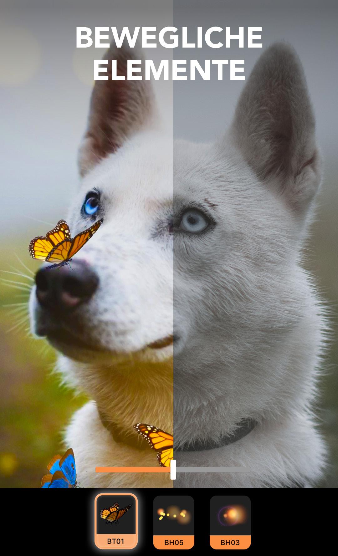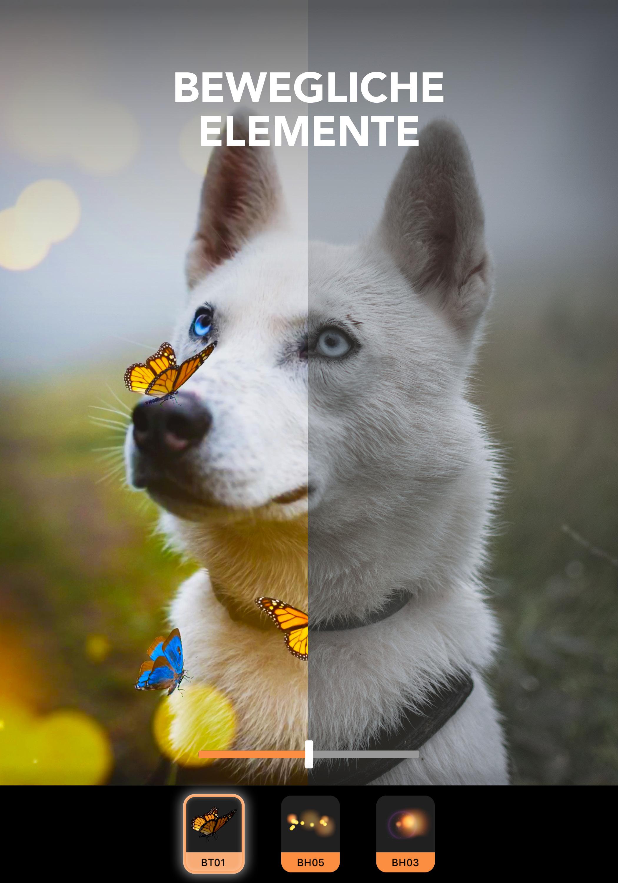 Erstelle mit Vorlagen bewegte Fotos und entdecke eine besondere Art der Fotoanimation! Animiere bewegende Wandbilder und erwecke sie mit Motionleap von Lightricks, der kostenlosen Foto-Animations-App, zum Leben. Wir haben den Vorläufer, Pixaloop, verbessert, damit dir das Animieren jetzt noch mehr Spaß macht. Hast du dich je gefragt, wie man 3d Fotos bewegen oder animieren kann? Möchtest du auch all das können, was Instagram im Sturm erobert hat? Jetzt kannst du auf Android mit dieser fotobearbeitungs App deine Fotos animieren und aufhellen! Fotoanimation und ein schnelles Aufhellen wird dir leicht gemacht. Mit Motionleap erweckst du Bilder mit der fotobearbeitungs App zum Leben und erzeugst, dank Effekten und Filtern, bewegte 3d Bilder, die jeden deiner Freunde und Followern vom Hocker reißen werden. Und das Beste von Allem: die App ist kostenlos. Coole Fotos animieren kostet dicht nichts. Mit Motionleap bearbeitest du deine bewegende 3d Fotos ganz einfach und präzise mit den eingebauten Vorlagen, Filtern und Effekten. In nur wenigen Schritten fügst du animierte Effekte zu deinem Himmel hinzu. Fotos animieren wurde dir noch nie einfacher gemacht. Du suchst Inspiration? Suche nach #Motionleap, tagge deine eigenen 3d Kreationen, die du mit der fotobearbeitungs App erstellt hast und wir stellen die besten vor! Mach den nächsten Schritt für deinen Feed und animiere unbewegte Bilder mit Filtern! ANIMIERE UNBEWEGTE BILDER - Animiere Fotos und Wandbilder mit Filtern und Vorlagen in nur wenigen Schritten - Pfeile deuten die Bewegungsrichtung der Fotoanimation an - Füge Zwecken hinzu, um den zu animierenden Bereich einzugrenzen - Friere Abschnitte von bewegenden Fotos mit dem Sperren-Pinsel ein - Du kannst Gegenstände aus dem Bild entfernen oder sie verformen ANIMIERE FOTOS MIT HIMMEL - Ersetze mit der fotobearbeitungs App blasse Himmel deiner Wandbilder durch farbenfrohe Sonnenuntergänge oder animierte Wolken. Natürlich kannst du den Himmel auch in deinen Fotos animieren und aufhellen - Du kannst automatisierte Himmel mit Timelapse-Effekt und Vorlagen kostenlos animieren FÜGE BEWEGUNG ZU FOTOS HINZU - Füge Overlays hinzu, um Bewegung, Stimmung und Emotionen durch Fotoanimation in unbewegte Fotos zu bringen - Erzeuge mit der fotobearbeitungs App neue Looks für deine Stories und deinen Feed - Erzeuge, dank der fortschrittlichen Filter und Fotoanimation der App, kinoartige 3d Effekte VIDEOEFFEKTE IN EINEM FOTOEDITOR - Steuere Bewegung und Animation deiner Wandbilder durch Geschwindigkeit, Richtung und Stil - Verzerre mit dieser fotobearbeitungs App die Perspektive und ändere den Stil mit zahlreichen Effekten und Parametern - Diese kostenlose fotobearbeitungs App für Android beinhaltet alle Effekte, die du zum Animieren und Aufhellen brauchst PASSE DEINE BEWEGTEN FOTOS AN - Nimm alle erforderlichen Anpassungen am Foto vor um es zu animieren - Bearbeite und animiere deine Fotos zu bewegenden Bildern. Du kannst sie auch aufhellen - Du kannst deine 3d Fotos kostenlos mit dieser fotobearbeitungs App zum Leben erwecken lassen! LERNE, WIE MAN BILDER AUF ANDROID ANIMIERT - Animiere beliebige Fotoelemente deiner bewegenden Wandbilder kostenlos: Haare, Wellen, Himmel, Wolken oder Kleidung - Erweitere die Grenzen deiner Vorstellungskraft mit den zahlreichen Filtern und Vorlagen dieser fotobearbeitungs App und entdecke deine Fähigkeiten der Fotoanimation - Erziele spielend einfach professionelle 3d Ergebnisse mit dieser Foto-Animations-App für Android! - Genau wie andere Apps von Lightricks, wie z. B. Boosted und Videoleap, den Video-Makern, oder Lightleap, der Fotobearbeitungs-App, bieten wir dir jetzt eine weitere coole Bearbeitungs-App zum Fotos animieren. - Jetzt kannst du mit Vorlagen in wenigen Minuten ein Foto animieren Nutzungsbedingungen: https://static.lightricks.com/legal/terms-of-use.html Datenschutzrichtlinie: https://static.lightricks.com/legal/privacy-policy.html