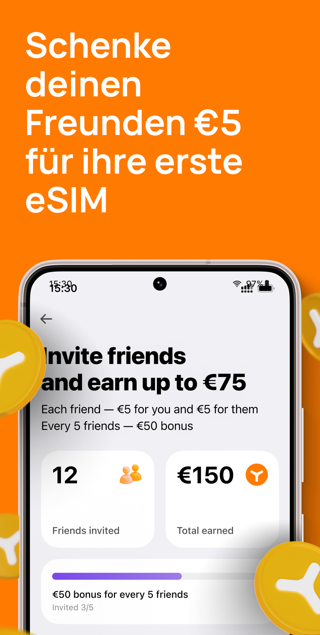 Yesim (Paketname: com.yesimmobile) wird von Genesis Group AG entwickelt und die neueste Version von eSIM Mobile Data by YESIM 5.38.0 wurde am 10. April 2026 aktualisiert. eSIM Mobile Data by YESIM liegt in der Kategorie von Reisen & Lokales. Sie können alle Apps von dem Entwickler der eSIM Mobile Data by YESIM durchsuchen. Derzeit ist diese APP kostenlos. Diese App kann auf Android 9.0+ auf APKFab oder Google Play heruntergeladen werden. Alle APK/XAPK Dateien auf APKFab.com sind original und 100% sicher, schnell herunterzuladen.